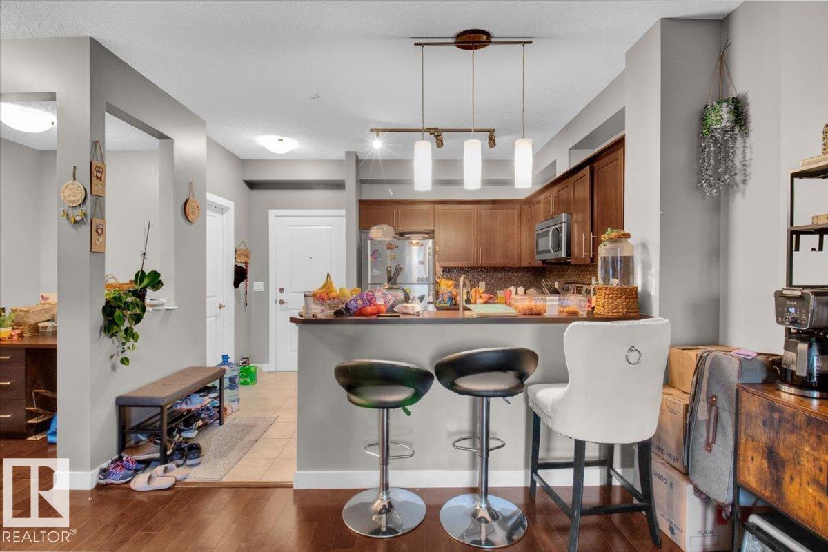 Welcome to The Ion in Ambleside! Perfectly located beside a park and pond, this vibrant community offers top amenities: a fitness room, guest suite, party room, underground parking with storage, covered BBQ area, visitor parking, and landscaped grounds that create a true community feel. Inside the sought-after “Blue Building,” the bright, sun-filled lobby sets the tone. This 2-bedroom unit features sleek hardwood floors, quality cabinetry, and south-facing windows for abundant natural light. A flexible open office, full storage room, and spa-inspired bath with deep tub + glass shower add comfort and convenience. The spacious primary includes a walk-in closet, while the second bedroom offers versatility for family, guests, or an office. Relax on the sunny balcony with gas hookup. With transit, shopping, dining, and entertainment just steps away, this home is an excellent choice for both homeowners and investors—situated in one of Edmonton’s best-planned neighborhoods. (id:63190)
