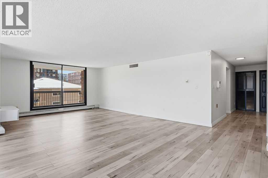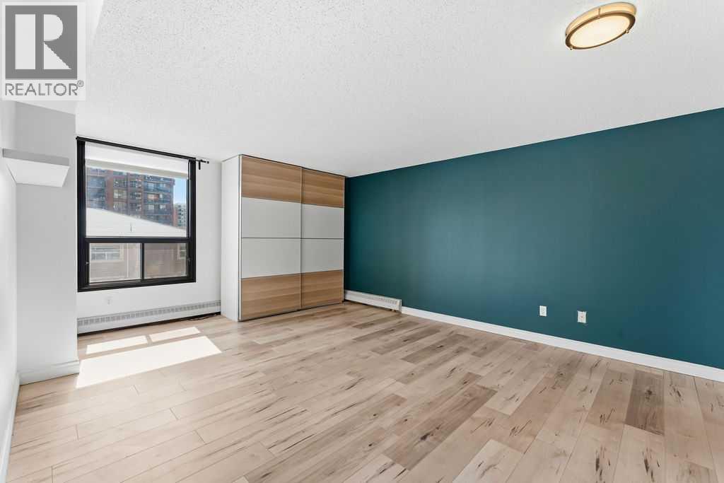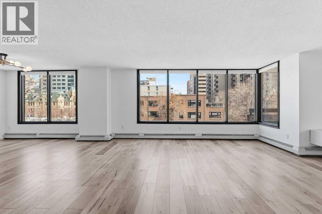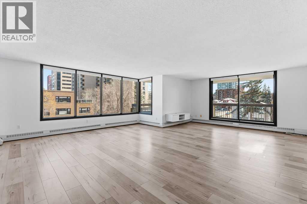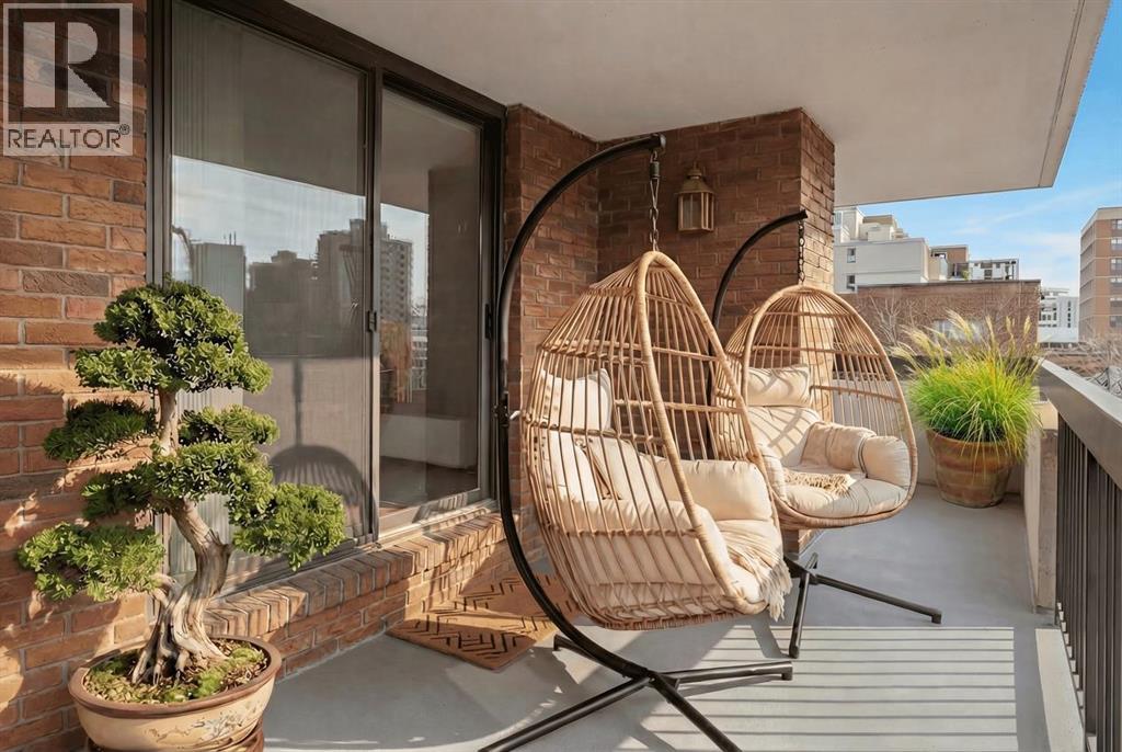 Looking for space and Location? This is the one.With 1,567 sq ft, the first thing you’ll notice is how big everything feels — real rooms, real space, and windows everywhere bringing in natural light all day long. This corner unit at The Royal Oak is anything but typical Beltline condo living. The living room isn’t squeezed in — it’s a full, comfortable space that actually fits your furniture. Same goes for the dining area, with plenty of room to host without feeling tight. The kitchen has been updated and opens right into the main living space, making it easy whether you’re entertaining or just going about your day.Step outside to the wrap-around south-facing balcony, and this is where the unit really separates itself. It’s large, private, and gets sun all day — not just a small outdoor spot, but a space you’ll actually use.The primary bedroom is massive — over 300 sq ft — with more than enough room for a king bed, additional furniture, and still space to move. It includes a walk-in closet and a clean, updated ensuite with a walk-in shower.The second bedroom is also a great size — perfect for guests, a home office, or both — without having to compromise.You’ll also appreciate the central air conditioning (not common in many condos) and a large in-suite laundry room with real storage space, something you don’t often see.The Royal Oak is a well-run, mostly owner-occupied building with a strong reputation. Amenities include a fitness room, social room, guest suite, and bike storage.And the location works. You’re just off 17th Avenue — close to everything — but far enough removed that it’s actually quiet, with a park across the street and tree-lined surroundings.If you’ve been frustrated by small condo layouts, this one will feel completely different. (id:63190)