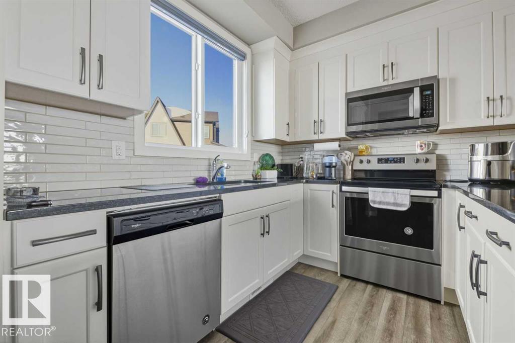 Fantastic lake view at the front!!!! Welcome to this townhouse, sitting in SCHONSEE , one of the sought-after communities in North Edmonton. There is a private balcony on the 2nd floor, facing the beautiful lake view. Great condition of more than 1400 sq.ft. living space with lots of upgrades. This townhouse provides 9-ft ceiling on 2nd level, electrical fireplace and wide-open living room. There are 3 spacious bedrooms on the 3rd floor, including a 3 piece ENSUITE primary room. It also features with a 4-piece bathroom on the top level. Laundry room is independent for convenience. This home provides a double attached garage with quiet , peaceful environment. It is also close to all amenities, transits, schools and shoppings. Don't miss a chance to see and own it! (id:63190)