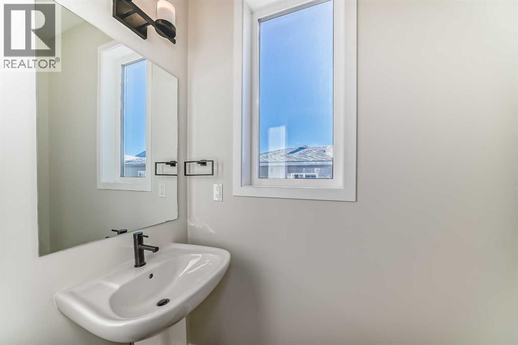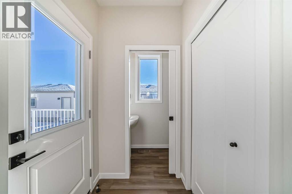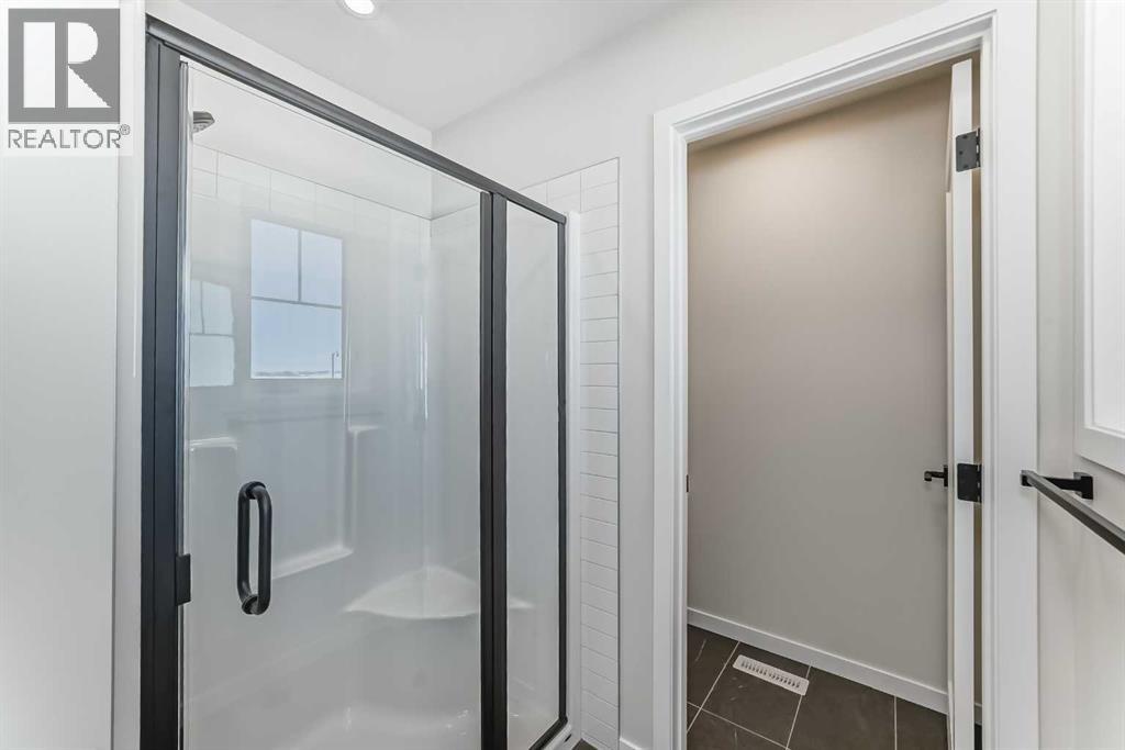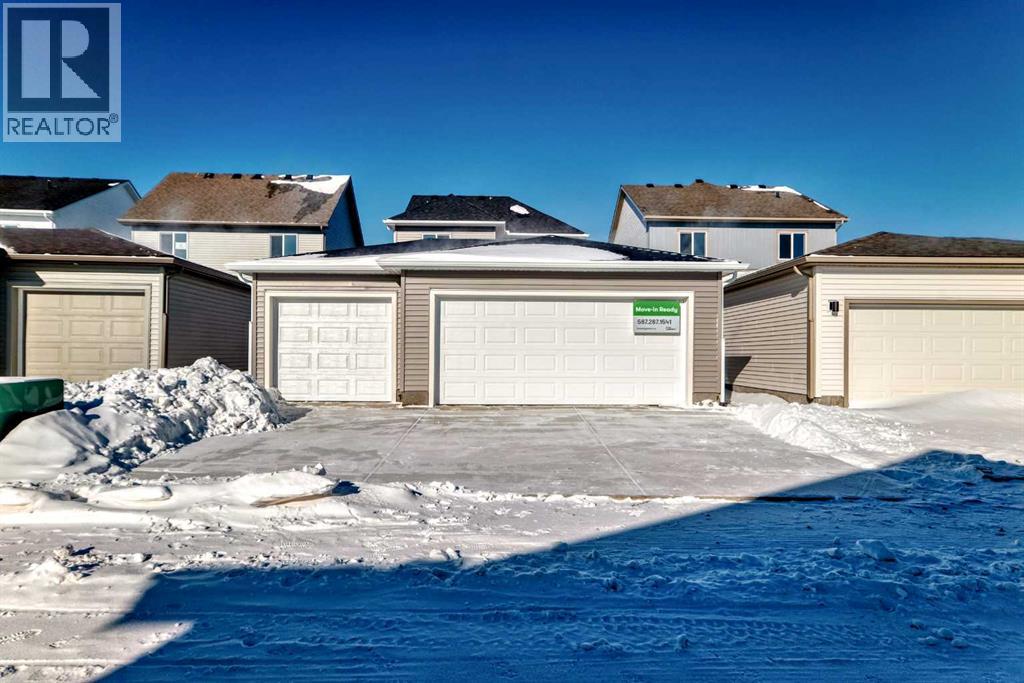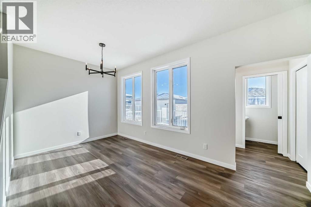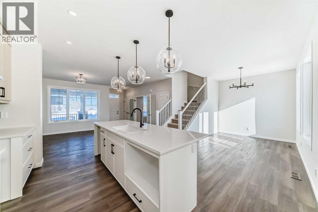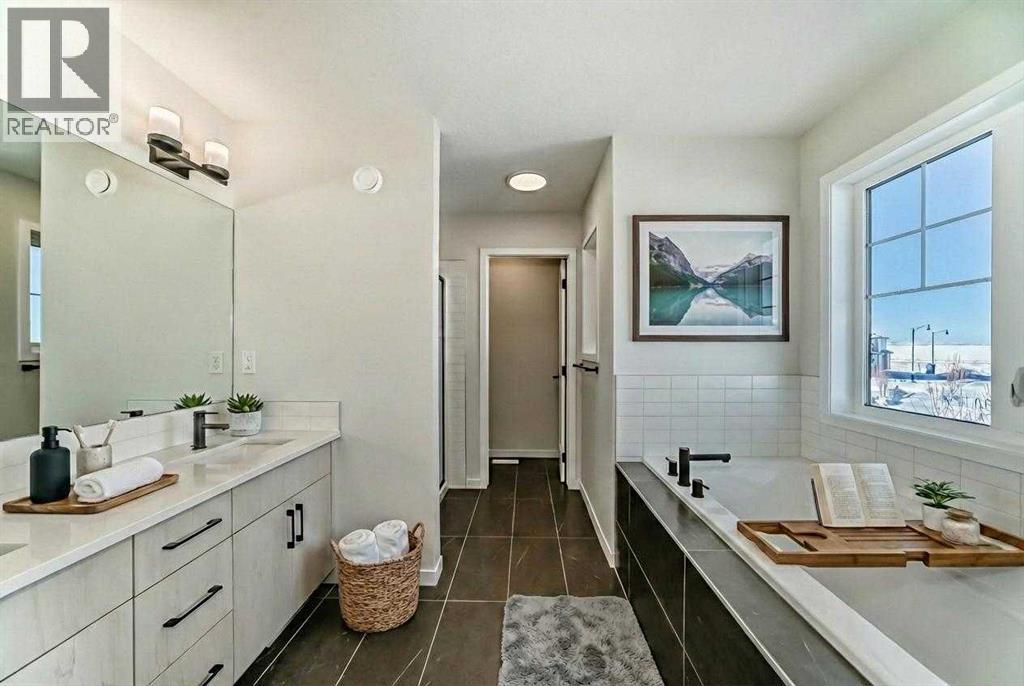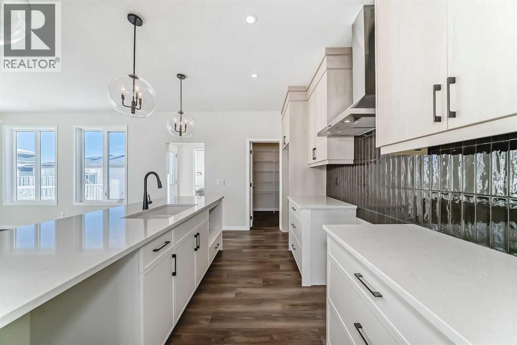 Welcome to the Forrester—a rare, family-friendly porchfront home fronting directly onto the park, paired with a triple detached garage and a driveway/parking setup that can accommodate up to six vehicles. This is the kind of combination that’s almost impossible to find, and it delivers a lifestyle that feels special from the moment you arrive. Start your mornings on the spacious 225 sq ft front porch, coffee in hand, watching the park come to life—perfect for playdates, dog walks, or simply enjoying an open view right outside your front door. Inside, the home is bright and welcoming thanks to large windows at both the front and back, carrying natural light deep throughout the day and every season. The main floor is designed for real life: a generous front living room and a flexible main-floor flex room (office, playroom, craft room—your call) lead into an open-concept layout anchored by a modern galley-style kitchen. You’ll love the elevated finish package here, including two-tone cabinetry, full-height upper cabinets, soft-close doors, quartz countertops, striking black hardware, and an upgraded chimney hood fan with built-in microwave. A large central island makes everyday meals and entertaining easy, while the oversized walk-in “Costco-ready” pantry keeps everything organized. Luxury vinyl plank flooring flows throughout the main level, tying it all together with a clean, contemporary feel. Off the rear entry, the mudroom adds practical function—complete with a private powder room that’s ideal for busy family routines. Cozy evenings are effortless in the open living space with a contemporary gas fireplace (cantilever-style feature), and the home is already set up for outdoor hosting with a gas line for the BBQ. For home chefs, you’ll also appreciate the gas line to the kitchen range—ready for your preferred cooking setup. Upstairs, you’ll find three bedrooms arranged for comfort and privacy, including winged secondary bedrooms that help keep everyone’s space thei r own, plus a convenient upper laundry room. The owner’s suite is a true retreat with no directly shared walls, a dramatic vaulted ceiling, large bright windows overlooking the park-facing front yard, a spacious walk-in closet, and a spa-inspired 5-piece ensuite with a soaker tub and dual vanities. Finishing touches like metal stair railings add to the home’s modern, upscale feel. Outside, the standout continues: a large triple detached garage, plus an exceptional amount of additional parking—whether it’s guests, toys, or a growing household, this is a game-changer. A park-front location, a triple garage, parking for up to six, and a well-curated interior finish package—this Forrester checks boxes that rarely come together in one home. Living in Vista Crossing means enjoying the best of both worlds: the convenience of city living just a short drive from Calgary, paired with the charm and slower pace of small-town life in Crossfield. This thoughtfully planned community fosters a strong sense of belonging. (id:63190)