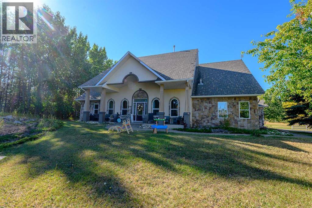 Spectacular setting for this stunning custom-built two-story home, just minutes from Grande Prairie! Nestled on 3.09 acres and zoned CR-5, this expansive 4,500 sq. ft. residence offers space, comfort, and endless possibilities.The main floor features a beautifully upgraded kitchen that flows seamlessly into the impressive great room with hardwood floors and a cozy fireplace. Also on the main level are four spacious bedrooms, three bathrooms, a private office, and convenient laundry.Upstairs, you’ll find three additional bedrooms, a full bathroom, and a dedicated theater room perfect for family movie nights.Step outside into your private outdoor oasis—hot tub, gazebo, and professionally landscaped yard featuring curbed tree islands.For parking and projects, the home includes an attached triple-car garage plus a heated 1,200 sq. ft. detached shop with double garage doors and fully finished living quarters above.This remarkable property offers room for trucks, the option to run a home-based business, and the lifestyle you’ve been searching for—all in a prime location just outside the city. (id:63190)