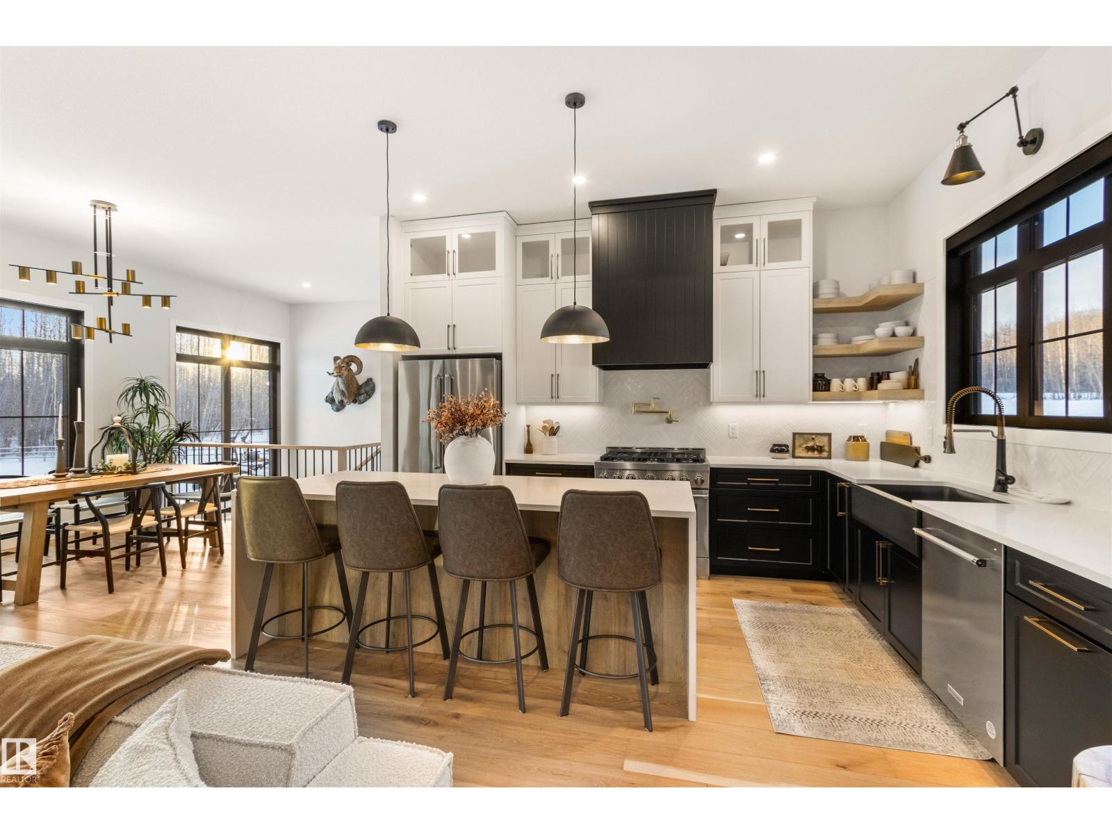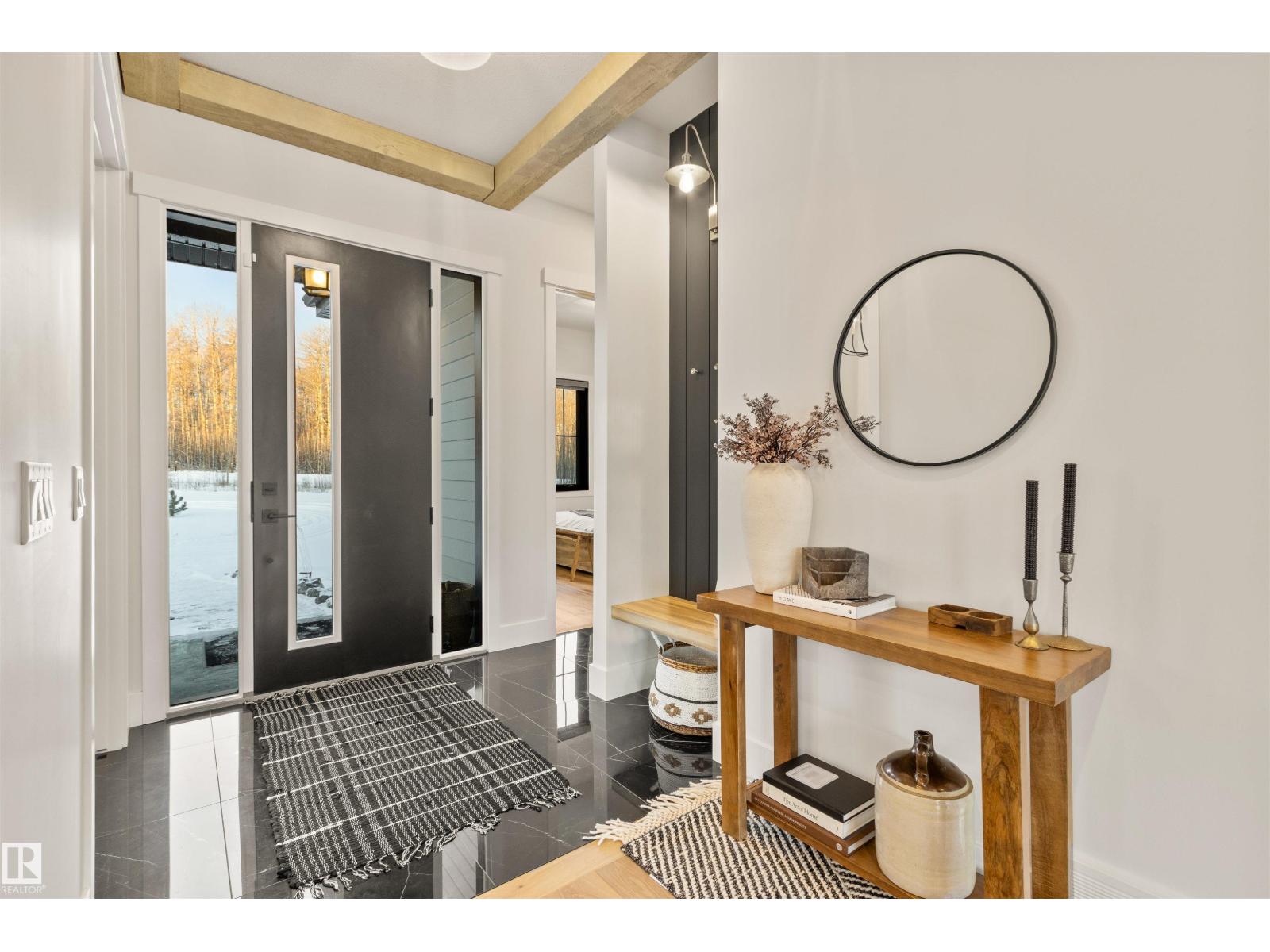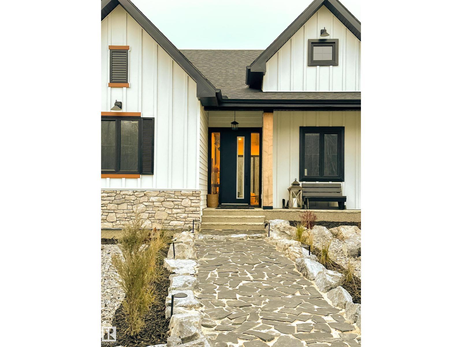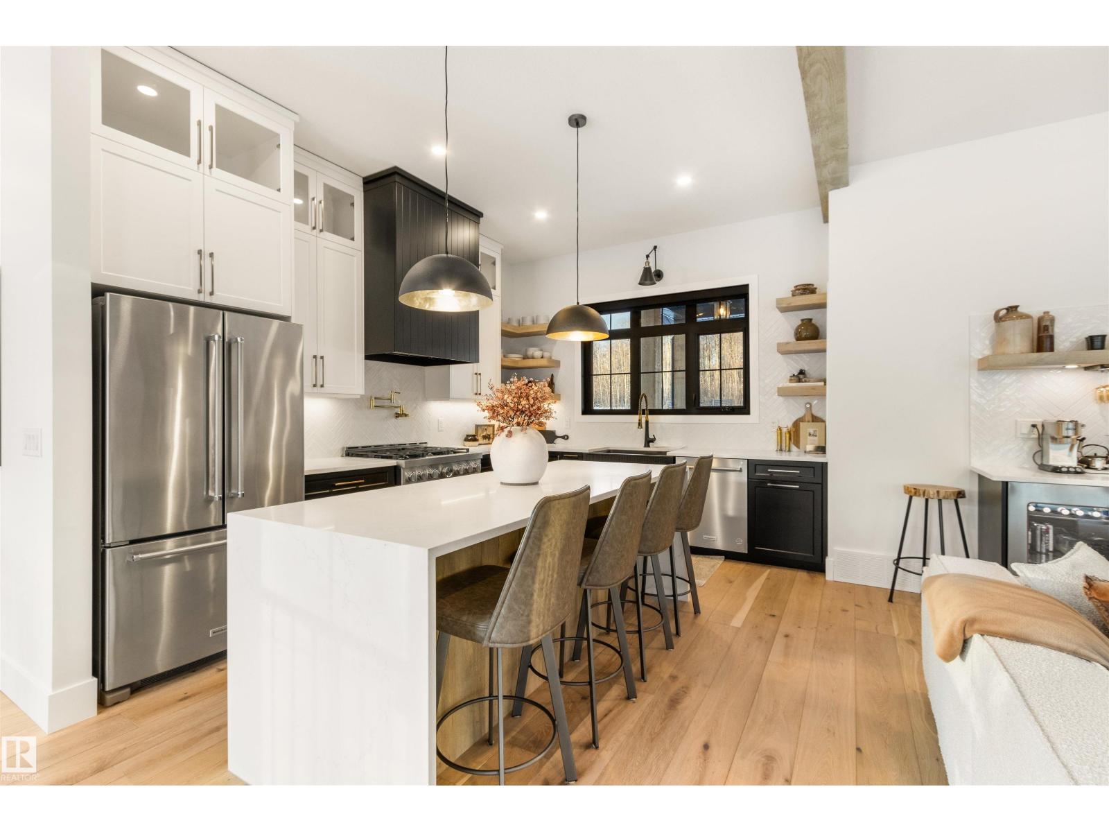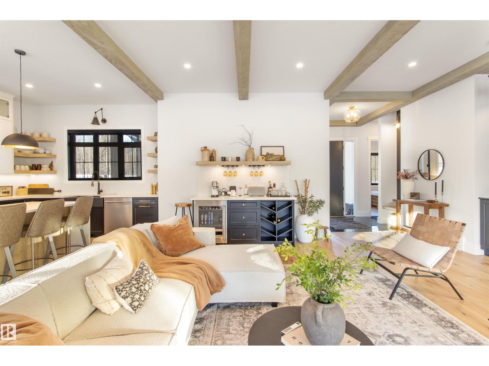 EXCEPTIONAL QUALITY, DESIGN AND LOCATION! This 2022 CUSTOM BUNGALOW is built on 3.82 private acres just 5 minutes West of Drayton Valley, AB, on a quiet dead-end road! A gated driveway leads to beautifully landscaped grounds with rock beds and stamped concrete on both front and rear covered decks. The 30x34 oversized triple garage features 13ft ceilings, 10ft doors, and epoxy floors. Inside this beautiful home you will notice 10ft ceilings, 8ft doors, fir beams, and Apex black vinyl windows that create a refined, light filled interior with an elevated sense of space and sophistication. The elegant and modern kitchen offers quartz countertops, a waterfall island, and KitchenAid appliances including a 36-inch gas range with pot filler. The primary suite features a fireplace, spa-inspired 5-piece ensuite, walkthrough closet with vanity. This may be what you have been waiting for! *Drone outlines are approximate. (id:63190)