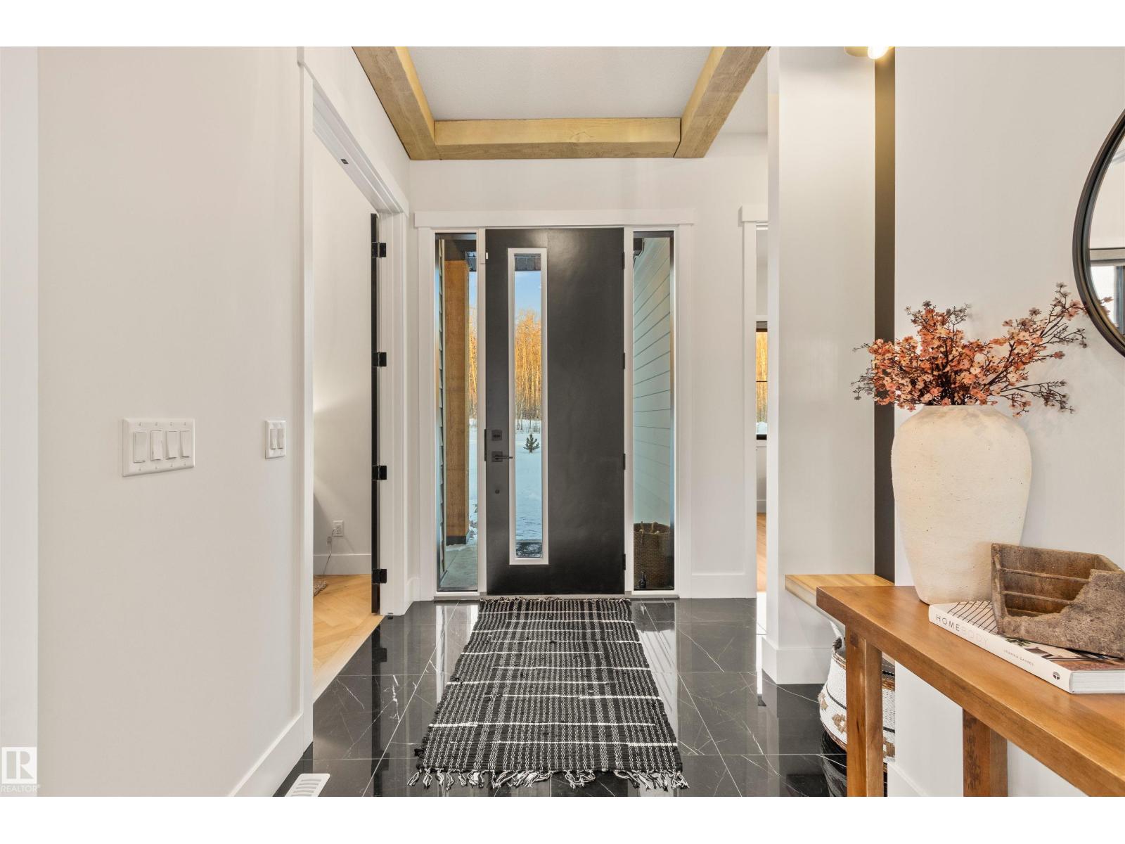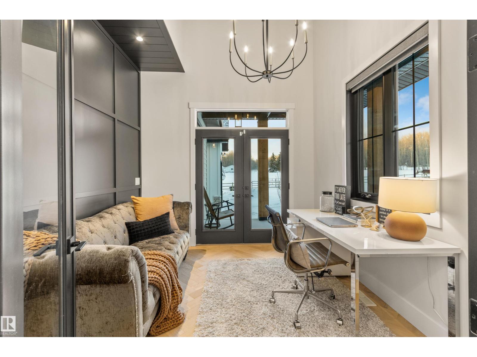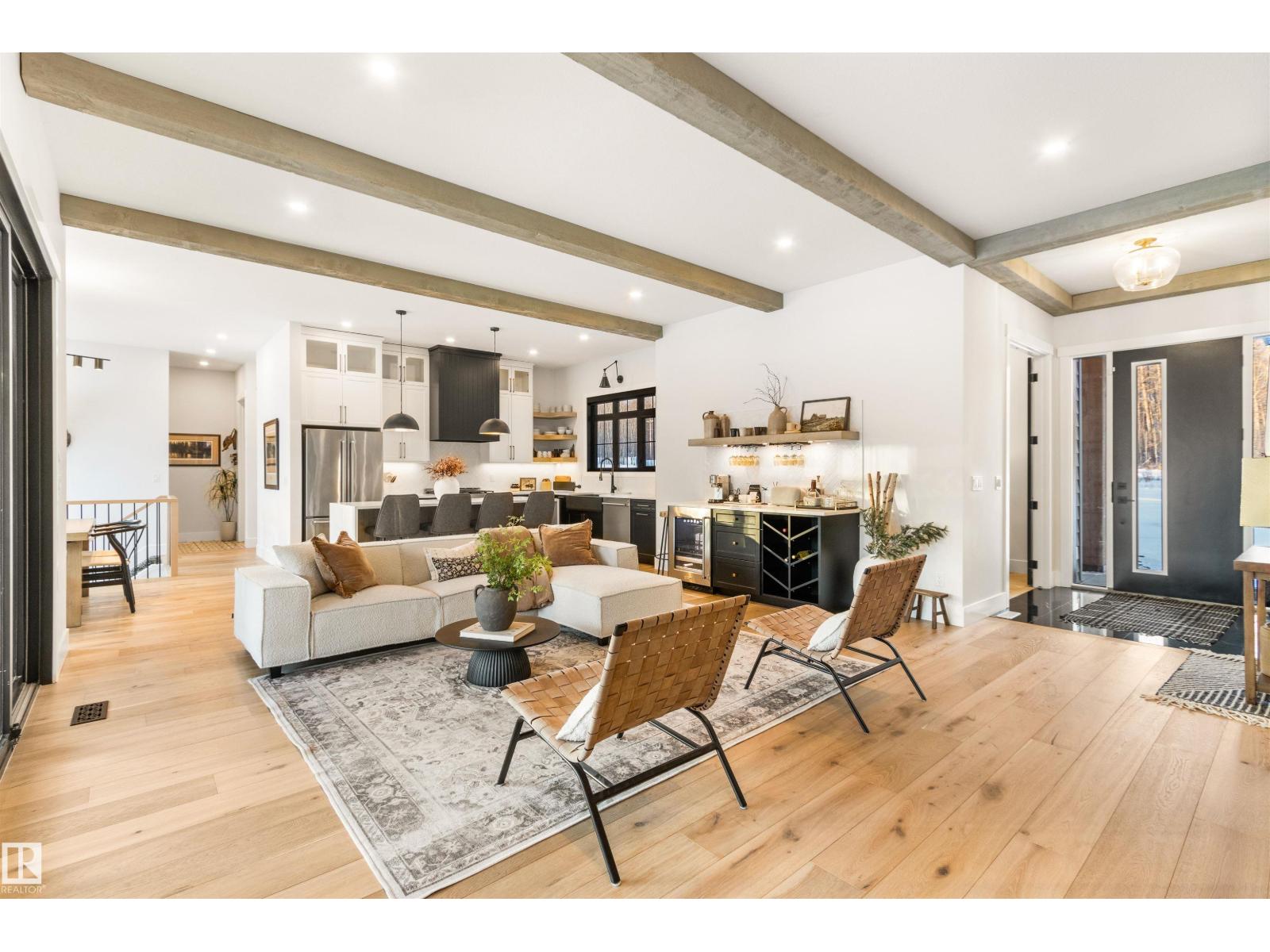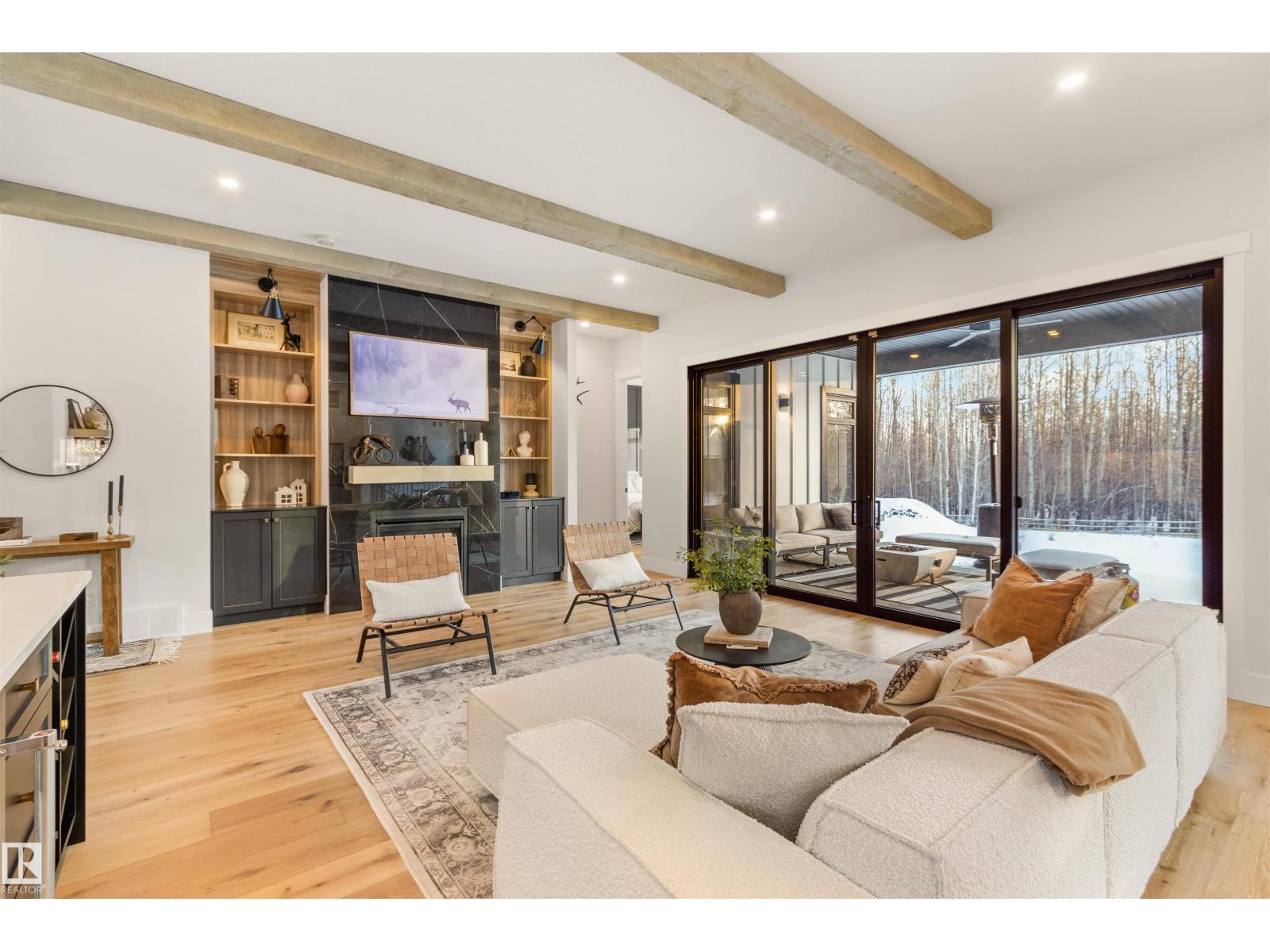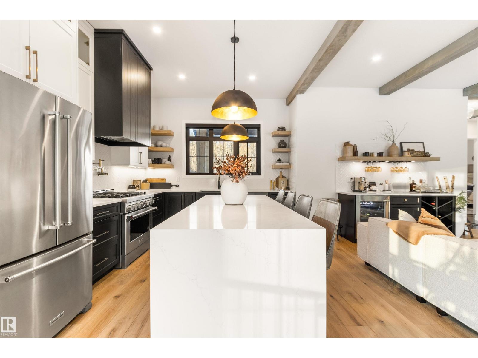 EXCEPTIONAL QUALITY, DESIGN AND LOCATION! This 2022 CUSTOM BUNGALOW is built on 3.82 private acres just 5 minutes West of Drayton Valley, AB, on a quiet dead-end road! A gated driveway leads to beautifully landscaped grounds with rock beds and stamped concrete on both front and rear covered decks. The 30x34 oversized triple garage features 13ft ceilings, 10ft doors, and epoxy floors. Inside this beautiful home you will notice 10ft ceilings, 8ft doors, fir beams, and Apex black vinyl windows that create a refined, light filled interior with an elevated sense of space and sophistication. The elegant and modern kitchen offers quartz countertops, a waterfall island, and KitchenAid appliances including a 36-inch gas range with pot filler. The primary suite features a fireplace, spa-inspired 5-piece ensuite, walkthrough closet with vanity. This may be what you have been waiting for! *Drone outlines are approximate. (id:63190)