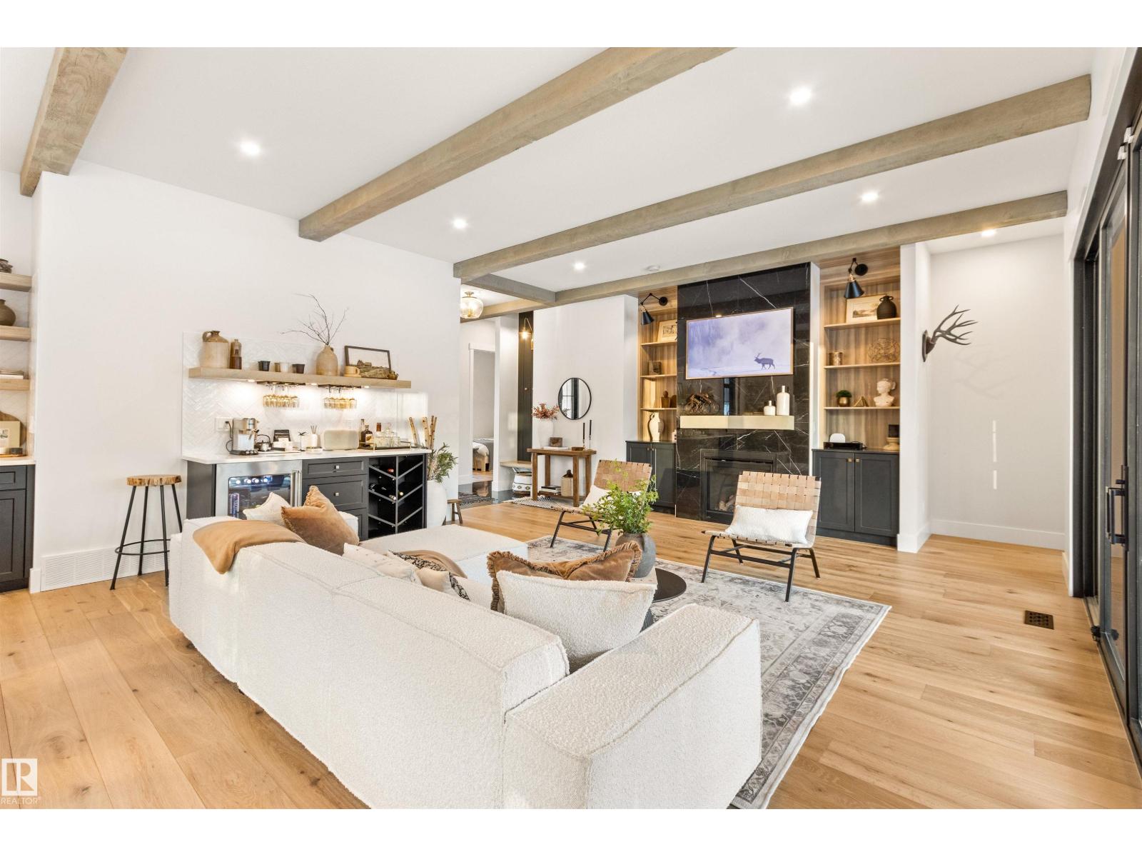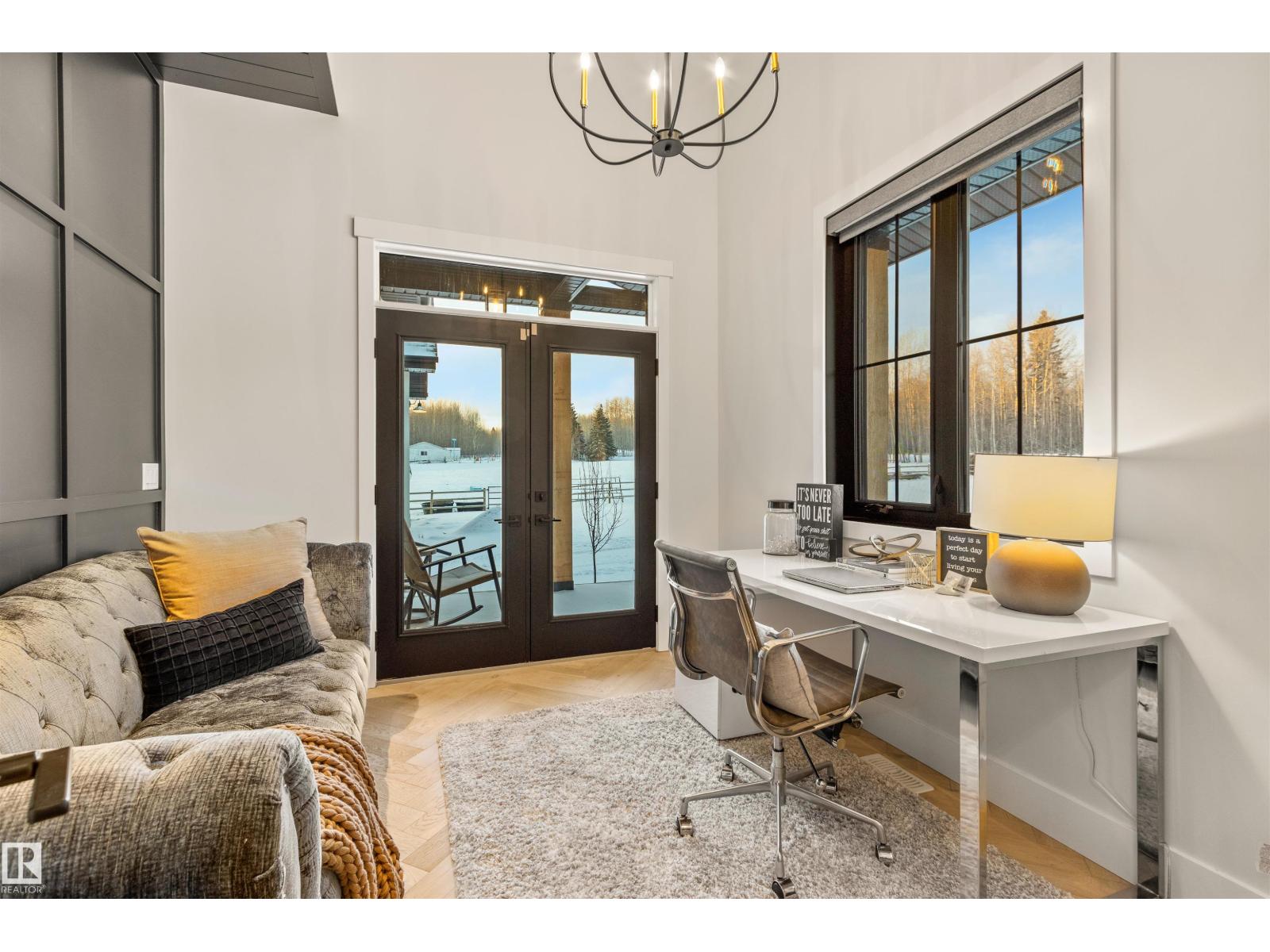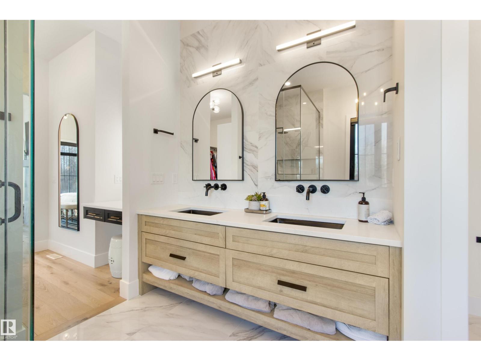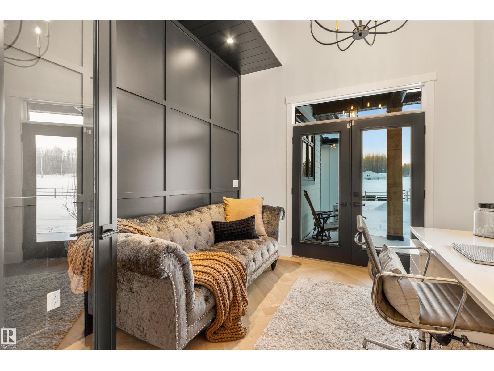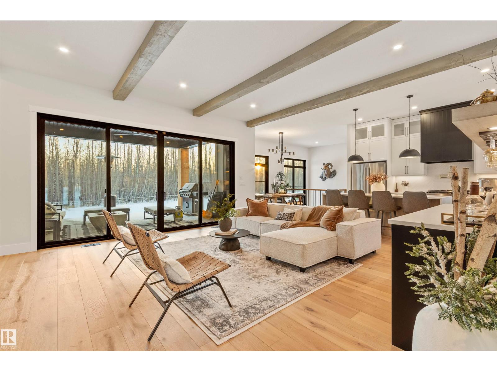 EXCEPTIONAL QUALITY, DESIGN AND LOCATION! This 2022 CUSTOM BUNGALOW is built on 3.82 private acres just 5 minutes West of Drayton Valley, AB, on a quiet dead-end road! A gated driveway leads to beautifully landscaped grounds with rock beds and stamped concrete on both front and rear covered decks. The 30x34 oversized triple garage features 13ft ceilings, 10ft doors, and epoxy floors. Inside this beautiful home you will notice 10ft ceilings, 8ft doors, fir beams, and Apex black vinyl windows that create a refined, light filled interior with an elevated sense of space and sophistication. The elegant and modern kitchen offers quartz countertops, a waterfall island, and KitchenAid appliances including a 36-inch gas range with pot filler. The primary suite features a fireplace, spa-inspired 5-piece ensuite, walkthrough closet with vanity. This may be what you have been waiting for! *Drone outlines are approximate. (id:63190)