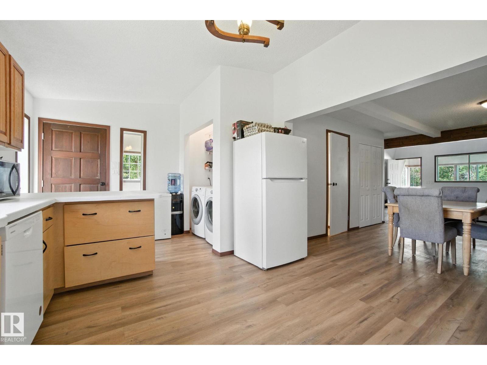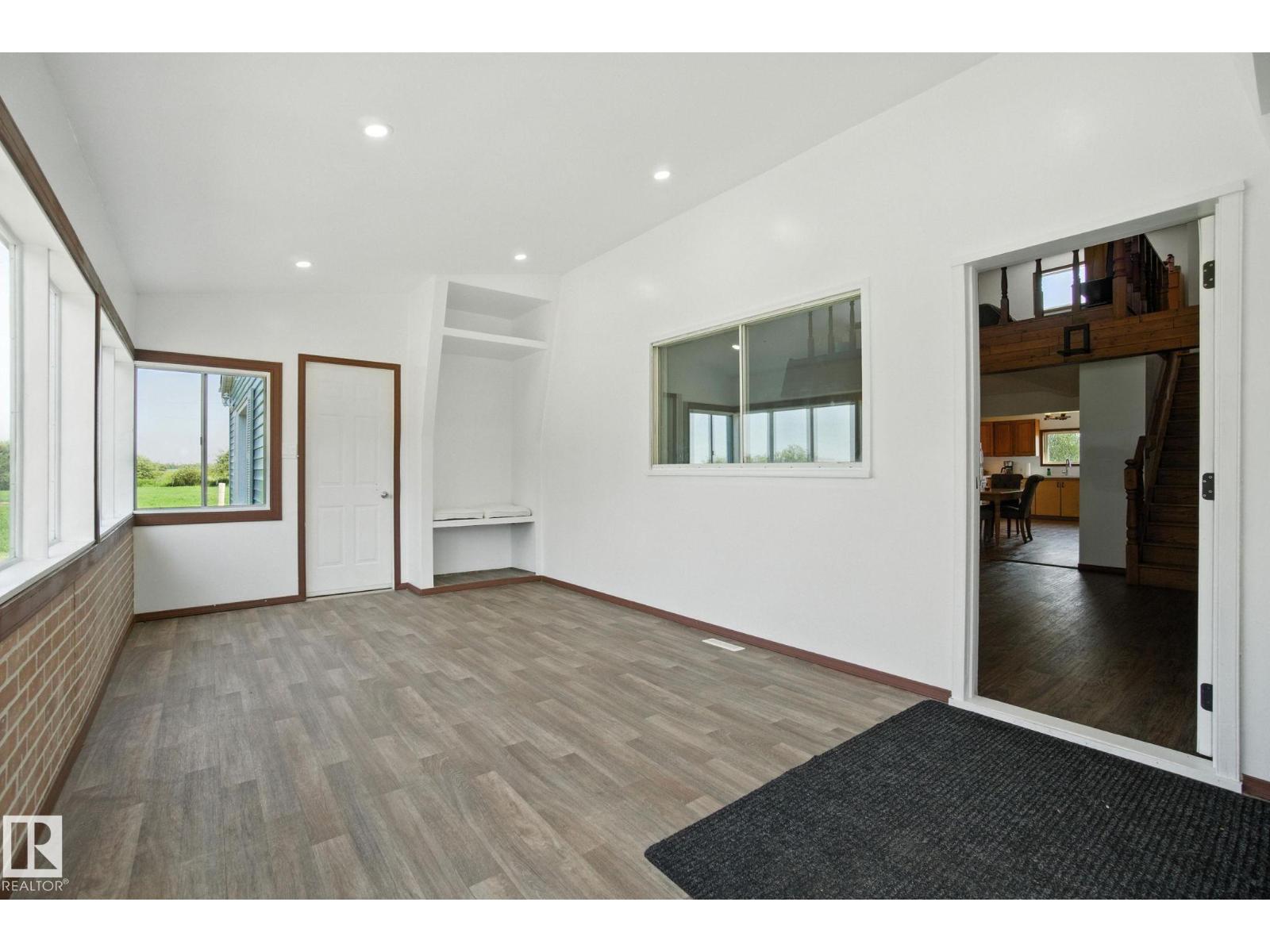 Amazing parcel with an updated home just 12 minutes south of Spruce Grove. Just over 31 acres of beautiful rolling land. It's fenced and cross fenced. Bordering a creek to the north, there is water for animals and plenty of building sites if you want to build your dream home in the future. Or a spot for a shop or barn or whatever else you dream up! The current home has been nicely renovated over the past few months. New furnace, new flooring, new paint and other upgrades. Large, heated front porch, perfect for summer evenings without the bugs! Living room features a wood fireplace & loft. Big dining area can expand to host family and friends. Very functional kitchen with lots of natural light. 3 bedrooms all on the main level along with 2 full bathrooms. There's even a loft area for a kids play place, home office or a quiet get away. Pavement all the way from Spruce Grove!!! (id:63190)