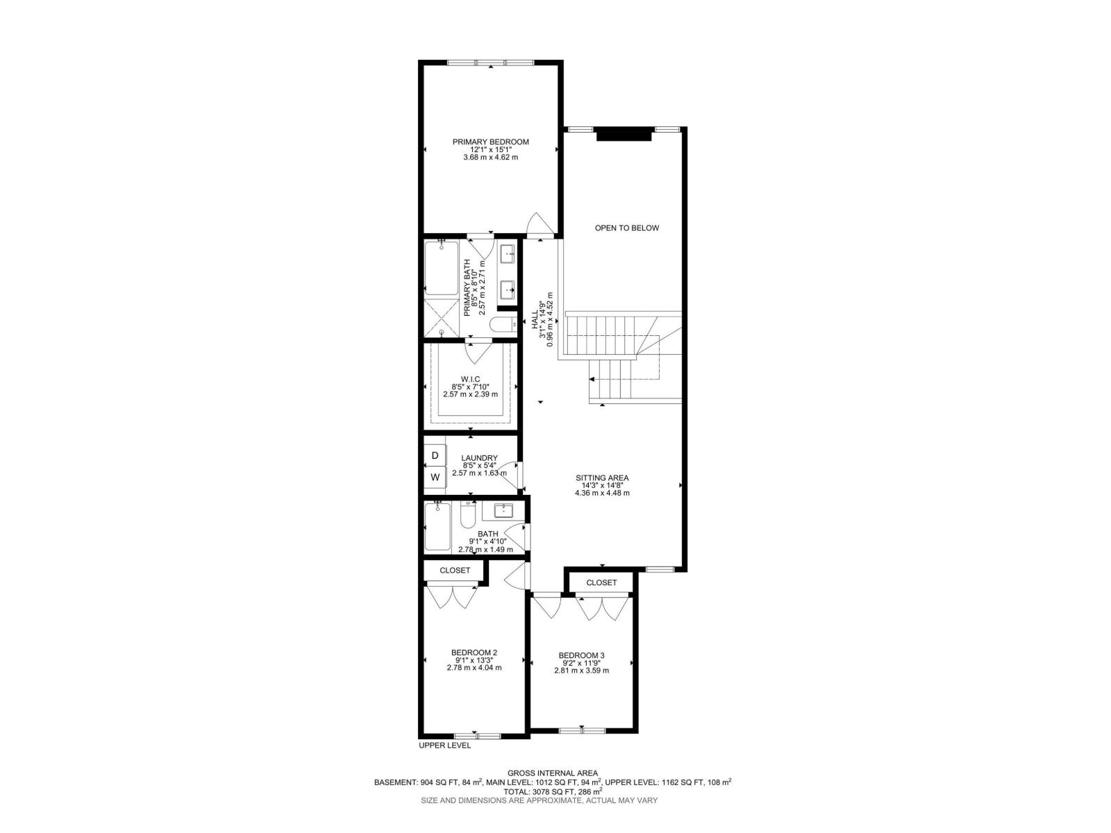 | Primary Bedroom | Upper Level | 3.68 x 4.62 | — |