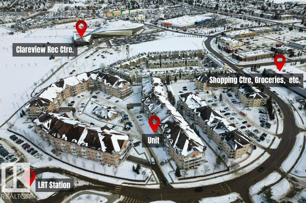 Welcome to the Estates of Clareview — where comfort and convenience come together. This spacious 1 bedroom + den main-floor condo offers over 900 sq. ft. of bright, open living with 9-foot ceilings and brand-new flooring throughout (no carpet!). The kitchen features abundant cabinetry and an eat-up bar, perfect for casual meals or hosting friends. The versatile den makes a great home office, reading nook, or guest space. You’ll also appreciate the large in-suite laundry room, extra storage, gas BBQ outlet, and heated underground parking stall for year-round comfort. Residents enjoy fantastic amenities including a fitness centre and billiards room. Just steps to the LRT, Clareview Rec Centre, shopping, dining, and schools, this move-in-ready condo offers low-maintenance living in a vibrant, connected community. Perfect for first time home buyers and investors. - (Virtually Staged) (id:63190)