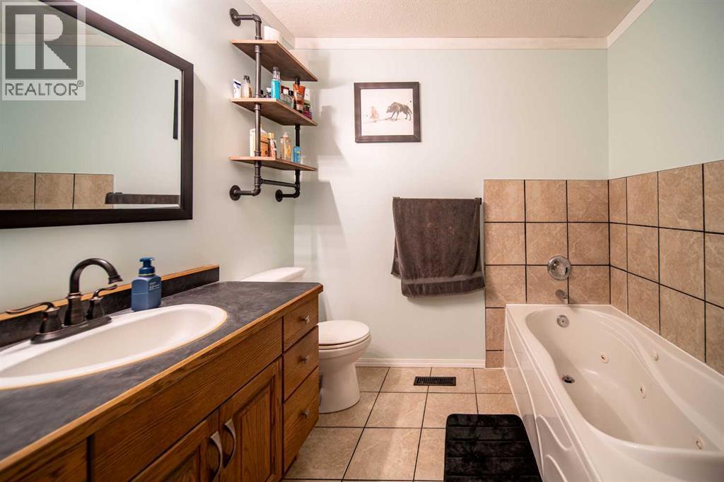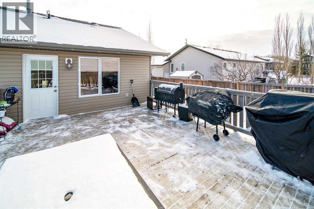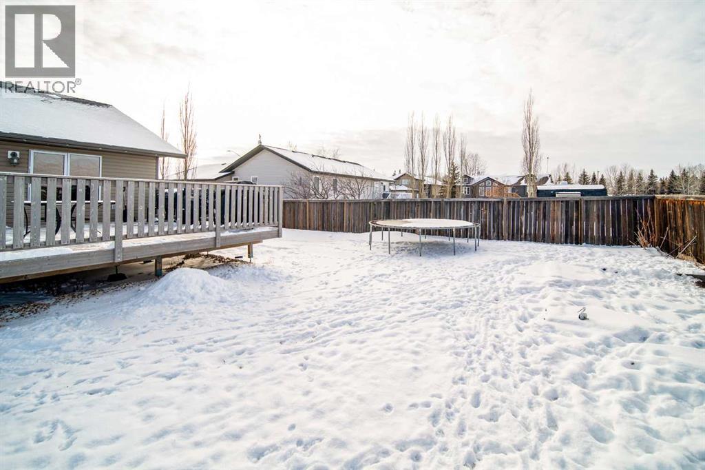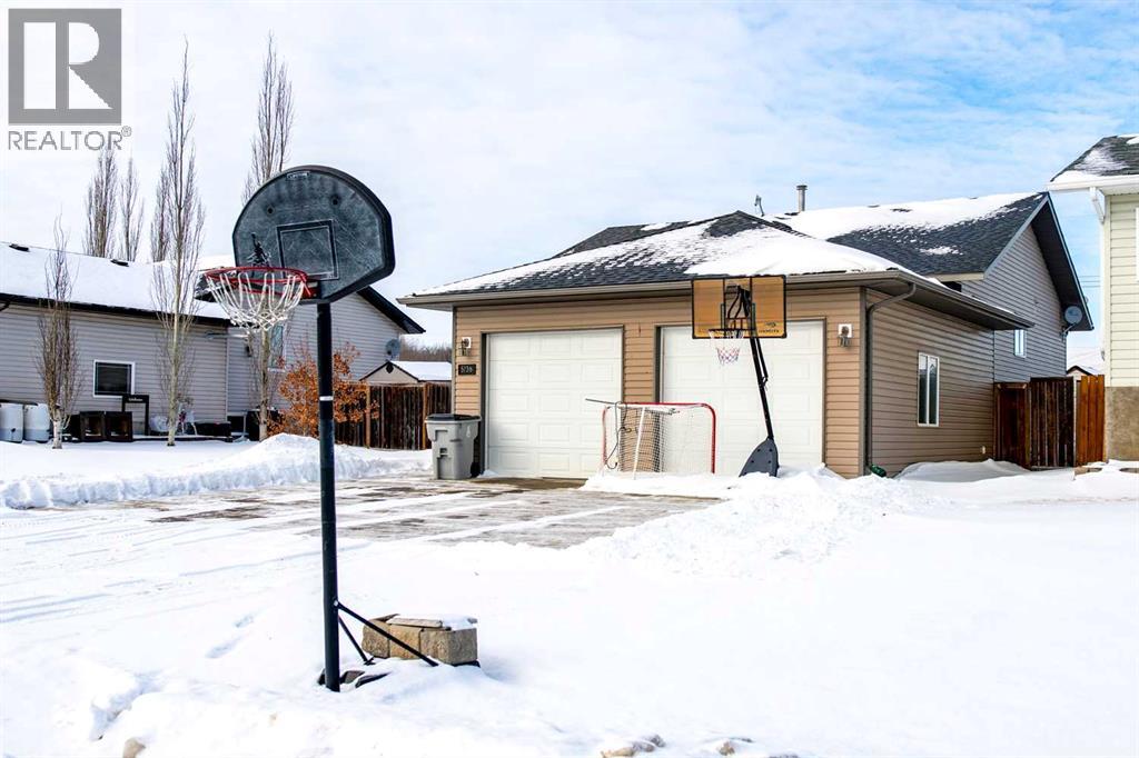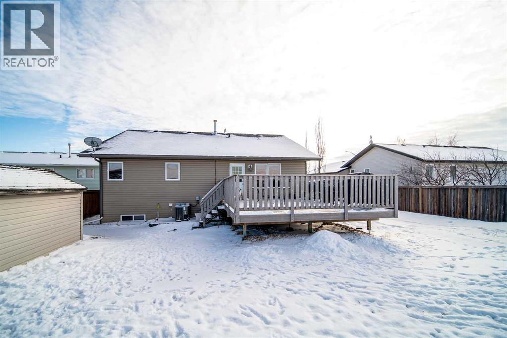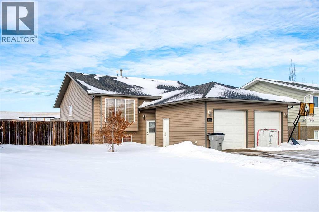 This well-appointed 1,393 sq. ft. bi-level home is situated in a newer subdivision in Edgerton, conveniently located just 20 minutes east of Wainwright, Alberta. Thoughtfully designed for family living, the home offers a practical layout with generous, well-utilized living spaces throughout. The main floor features hardwood flooring in the living room and hallway, complemented by ceramic tile in the entryway, kitchen, and bathrooms. The bright, spacious kitchen is a true highlight, featuring attractive oak cabinetry, a large island, and a comfortable dining area—perfect for both daily living and entertaining. The primary bedroom includes a walk-in closet and a 3-piece ensuite with a jetted tub. Two additional bedrooms and a well-sized 4-piece main bathroom complete the upper level. The fully developed basement provides excellent additional living space with a large games room, family room, office, two more bedrooms, a laundry and storage area, and a plumbed-in bathroom ready for future completion. Outside, the property offers a fenced and landscaped yard, an inviting deck, a double attached garage, and a concrete driveway. Added features include central air conditioning and a garden shed, enhancing both comfort and functionality. (id:63190)