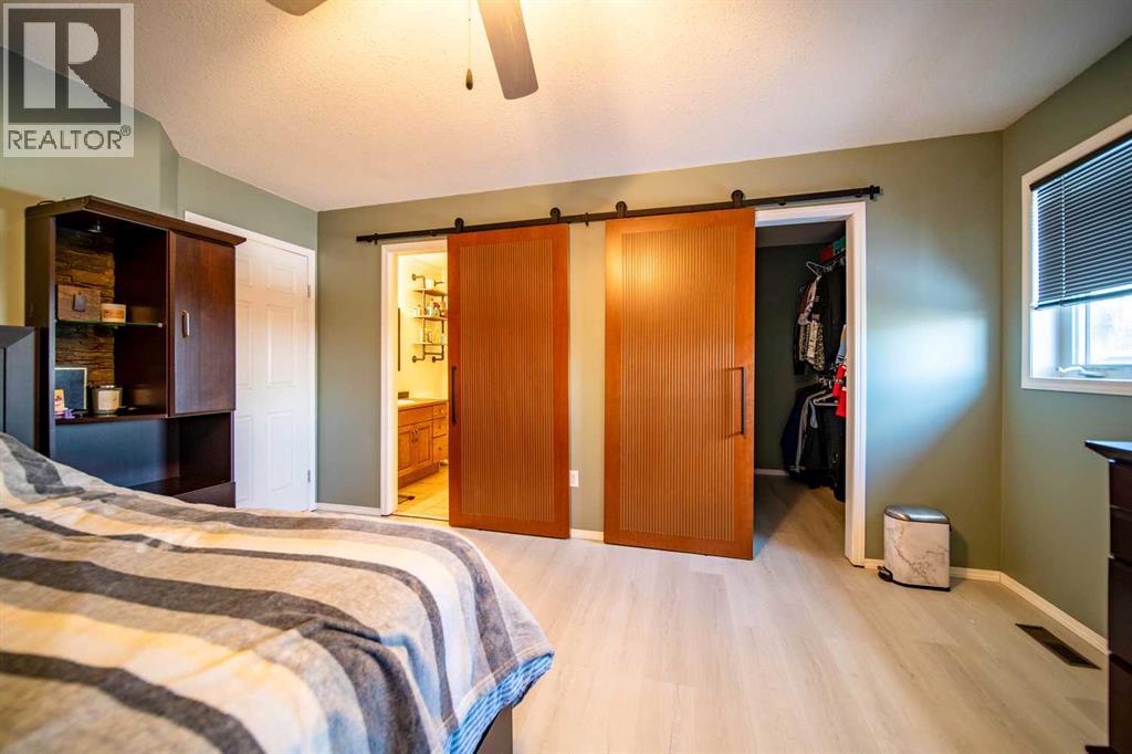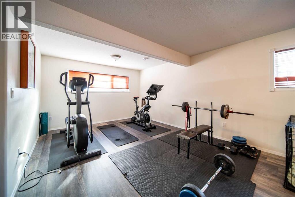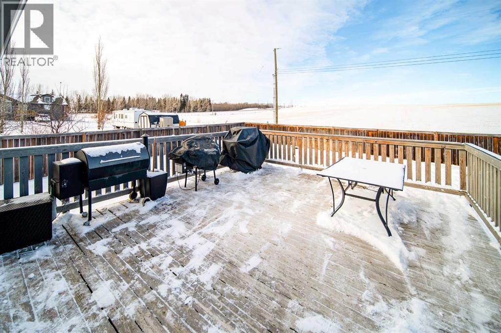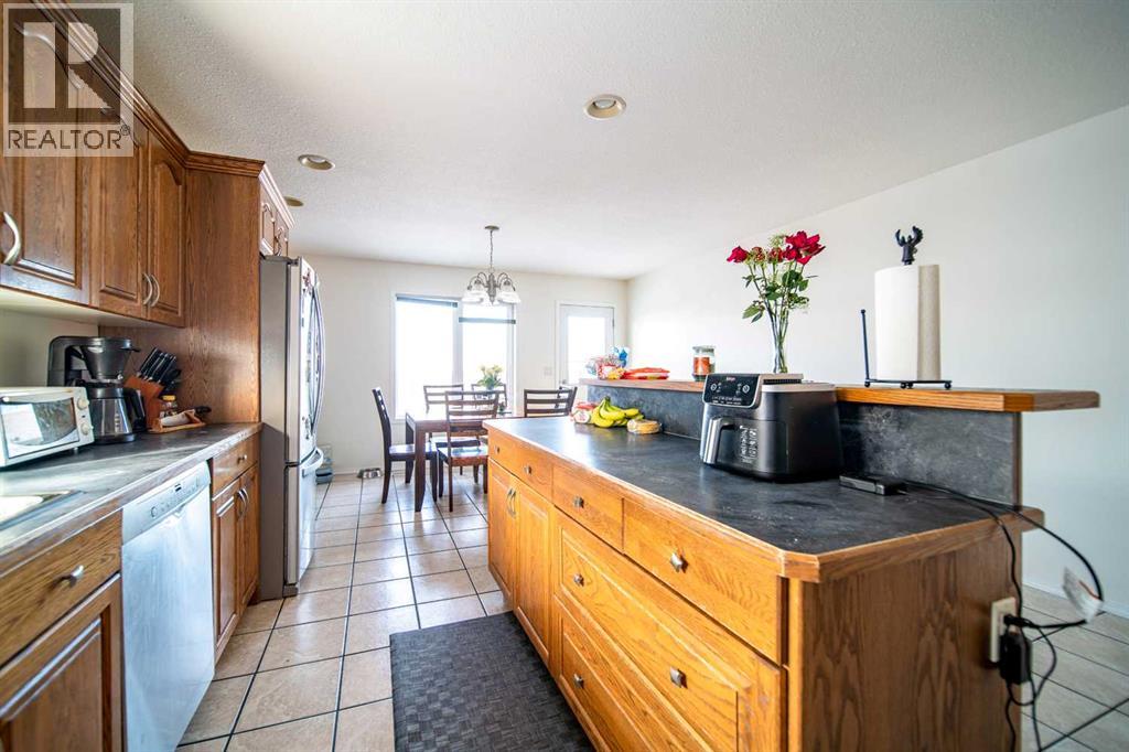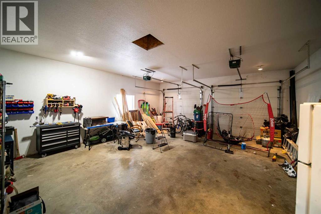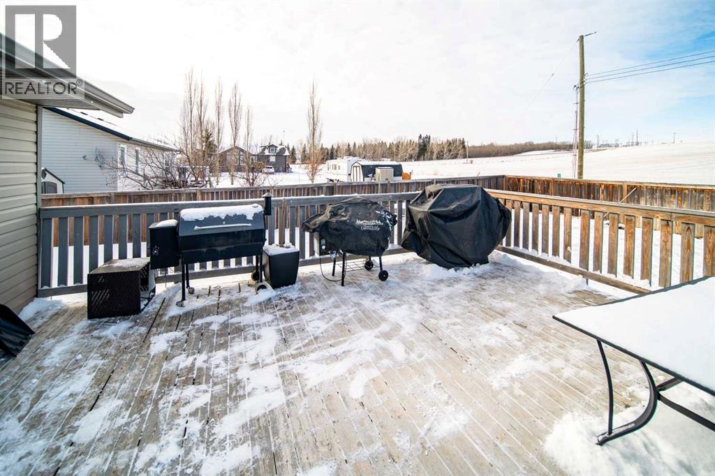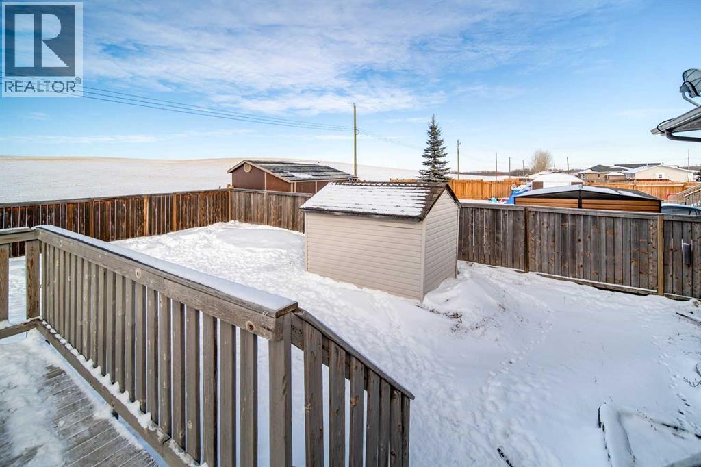 This well-appointed 1,393 sq. ft. bi-level home is situated in a newer subdivision in Edgerton, conveniently located just 20 minutes east of Wainwright, Alberta. Thoughtfully designed for family living, the home offers a practical layout with generous, well-utilized living spaces throughout. The main floor features hardwood flooring in the living room and hallway, complemented by ceramic tile in the entryway, kitchen, and bathrooms. The bright, spacious kitchen is a true highlight, featuring attractive oak cabinetry, a large island, and a comfortable dining area—perfect for both daily living and entertaining. The primary bedroom includes a walk-in closet and a 3-piece ensuite with a jetted tub. Two additional bedrooms and a well-sized 4-piece main bathroom complete the upper level. The fully developed basement provides excellent additional living space with a large games room, family room, office, two more bedrooms, a laundry and storage area, and a plumbed-in bathroom ready for future completion. Outside, the property offers a fenced and landscaped yard, an inviting deck, a double attached garage, and a concrete driveway. Added features include central air conditioning and a garden shed, enhancing both comfort and functionality. (id:63190)