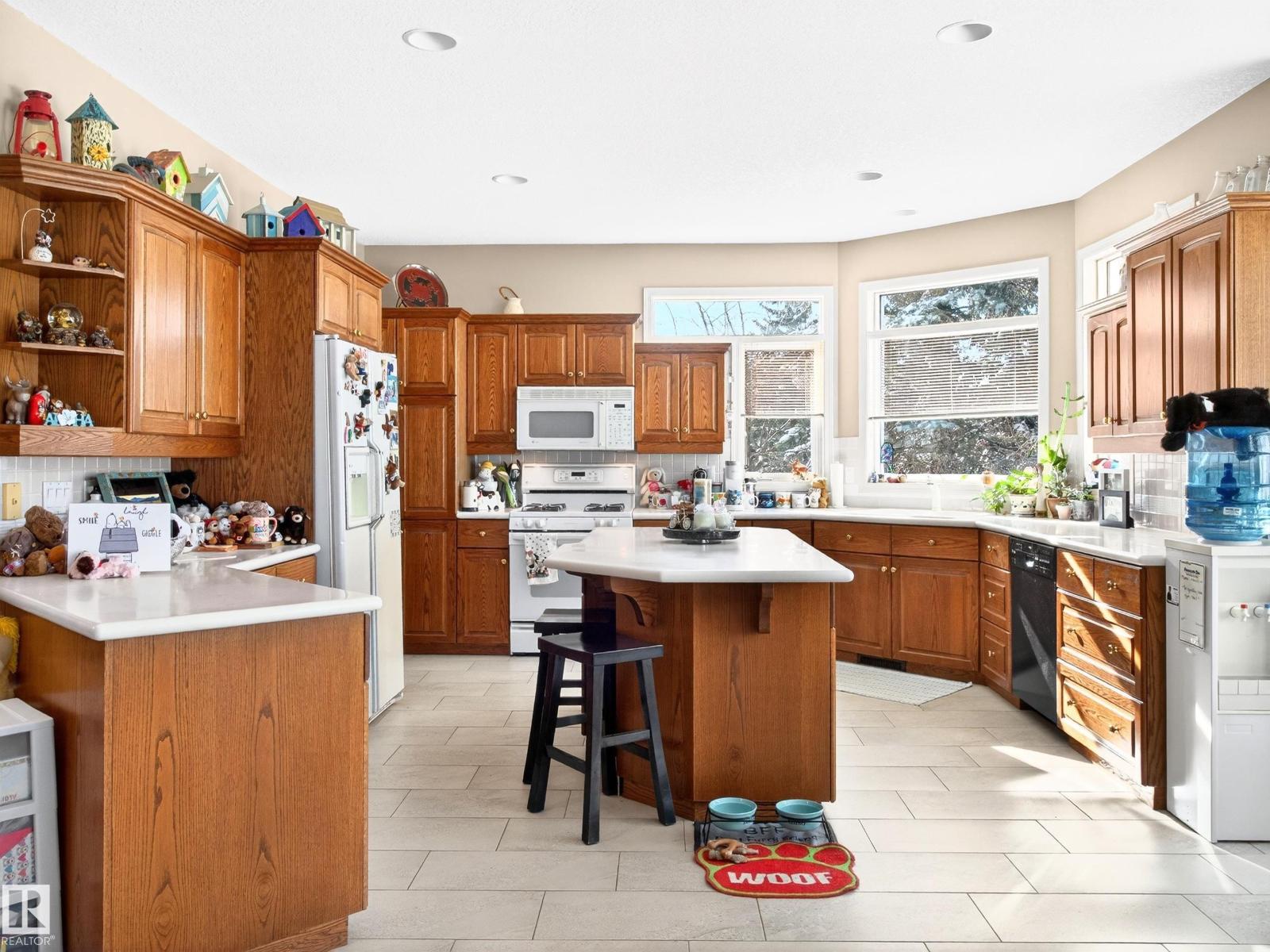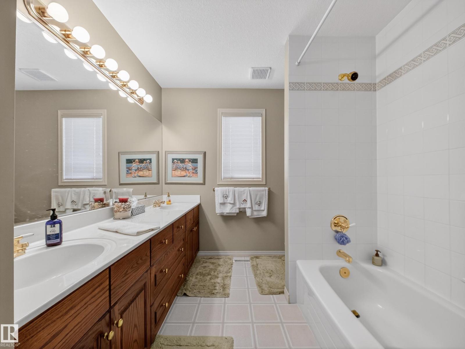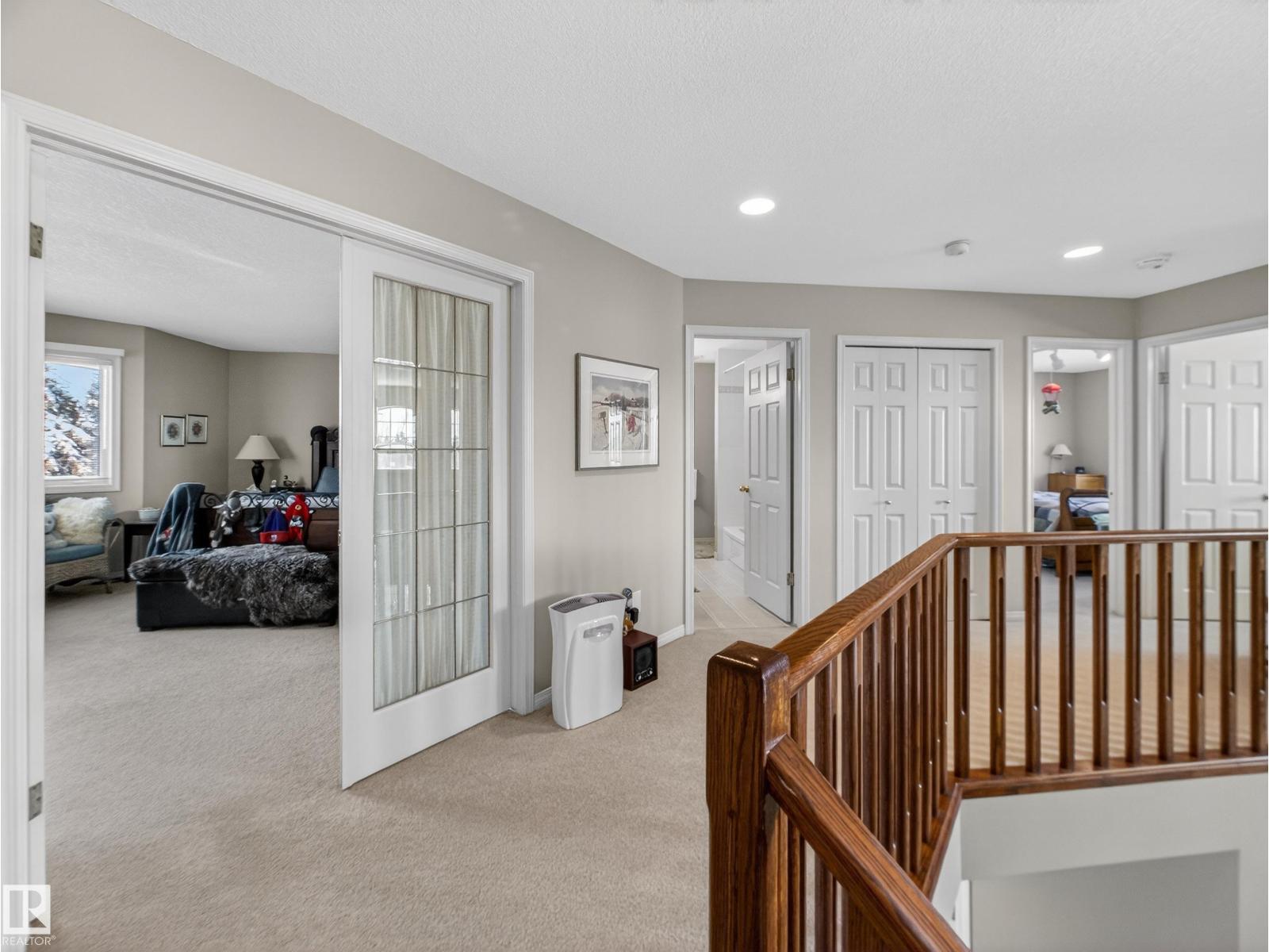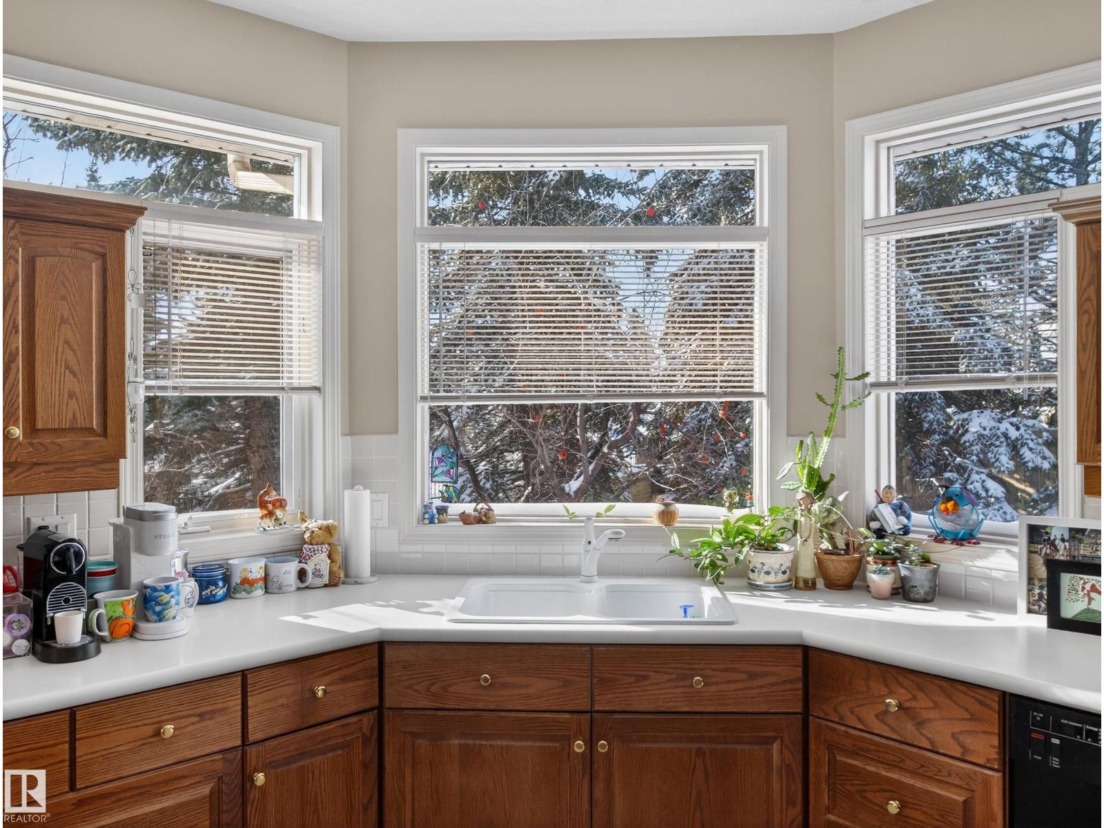 SOUGHT AFTER TWIN BROOKS!....OVER 2800 SQ FT...GREAT LAYOUT HOME!...GORGEOUS, PRIVATE BACKYARD/MATURE TREES...SPA ENSUITE...FULLY FINISHED BASEMENT...~!WELCOME HOME!~ Walk into a grand foyer w/spiral staircase. Front living area w/vaulted ceilings adjacent to dining room - perfect for entertaining! Lots of wood cabinetry, large island, stone countertops, tall pantry & breakfast nook. OPEN CONCEPT to family room has a cozy wood burning FP. Completing the main floor is a den, 2pc bath, & MASSIVE MUDROOM/LAUNDRY RM w/cabinetry, counters & sink! The second level offers 3 bdrms, 4 pce bath and a huge primary retreat, w/spa ensute that w/double sinks, makeup desk, jacuzzi tub/separate shower, & walk-in closet - WOW! FULLY FINISHED BSMT boasts a rec room w/wood burning FP, 2 more bdrms & 3pc bath. Enjoy the AMAZING BACKYARD and trees, & a huge partly covered deck and shed. NEW HWT 2025, TWO NEW FURNACES 2024, NEW SHINGLES 8 YRS AGO. Steps to the ravine, parks, schools, Anthony Henday & LRT. (id:63190)