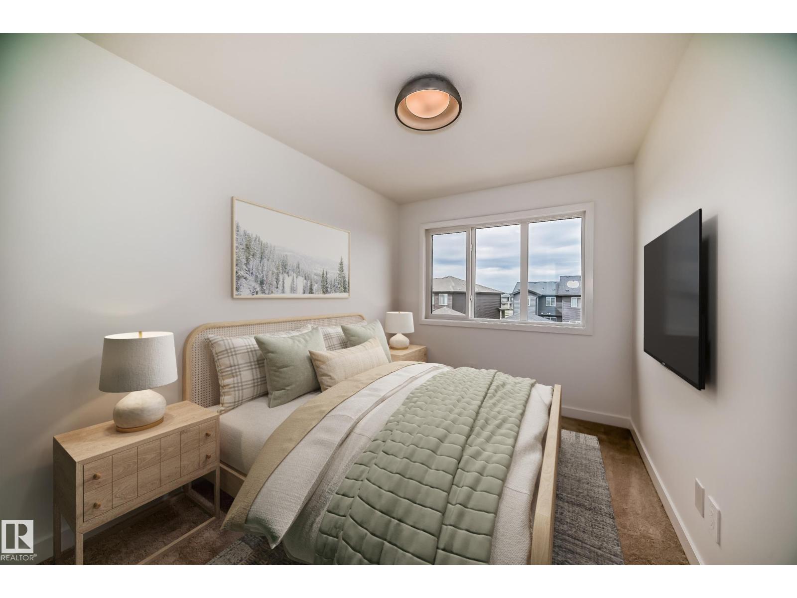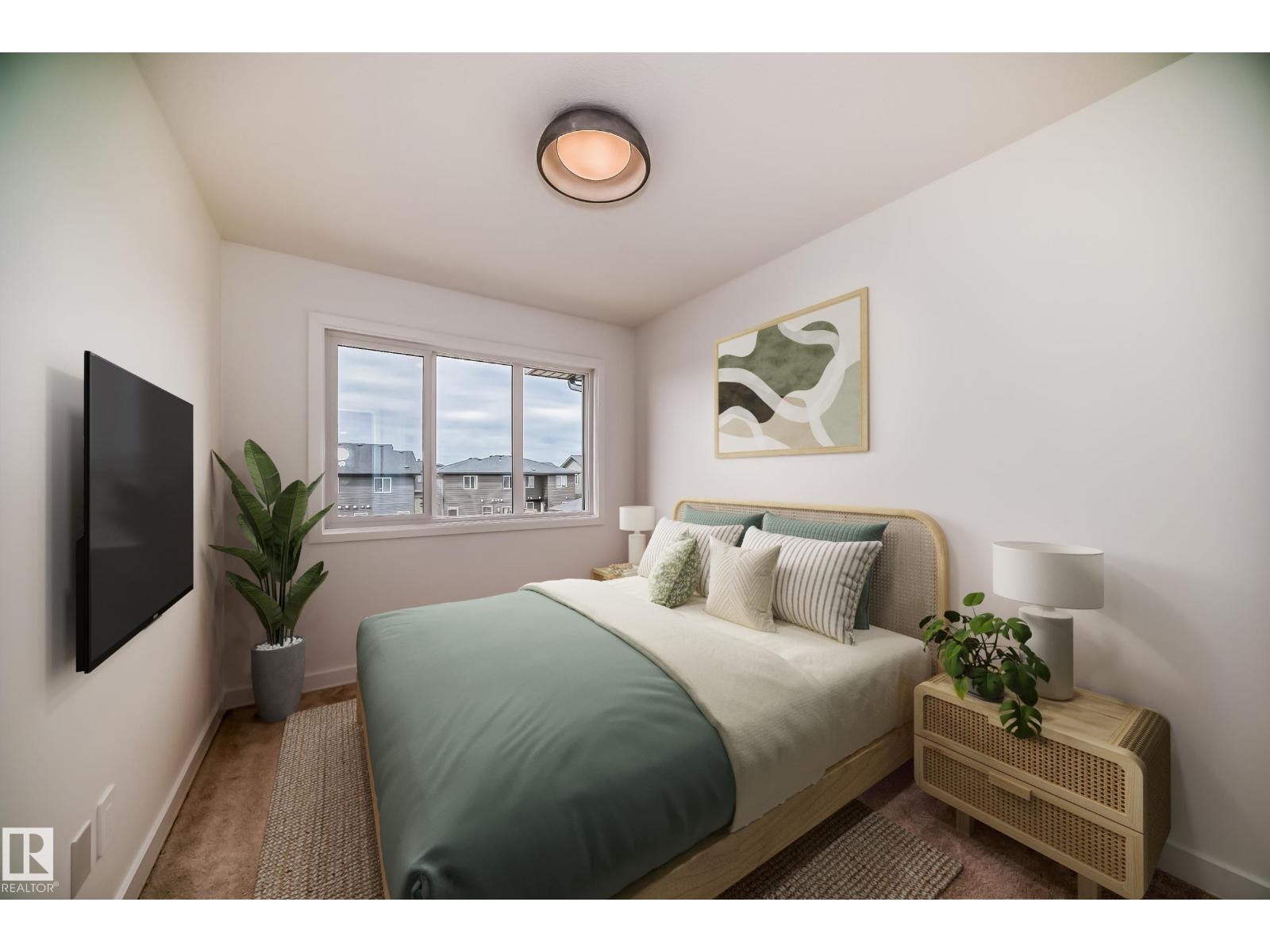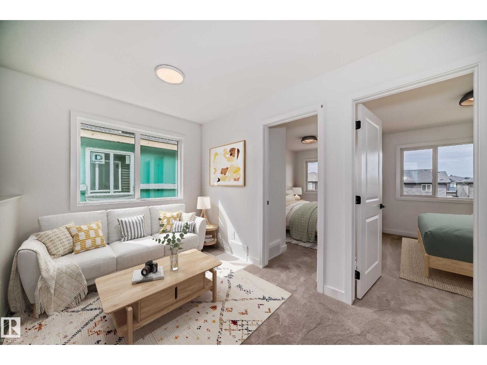NO CONDO FEES townhome middle unit 4plex in desirable Keswick —just steps from parks, trails, and amenities. Enjoy an open-concept main floor with quartz countertops, water line to fridge, and 42” modern white cabinetry and complimentary warm wood toned island cabinety. Upstairs offers a flex space, laundry, two bedrooms, plus a primary suite with walk-in closet and 4-piece ensuite. Front and back landscaping and $3,000 appliance allowance included. Photos from a previous build & may differ; interior colors are not represented, last image is a kitchen rendering to show colors, upgrades may vary, no appliances included. Under construction, tentative completion end of June/July. (id:63190)