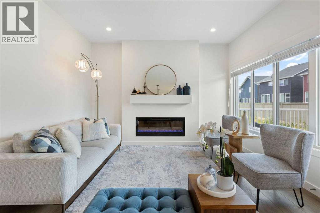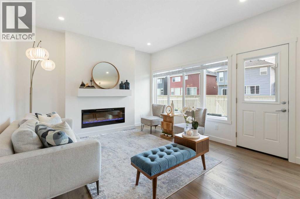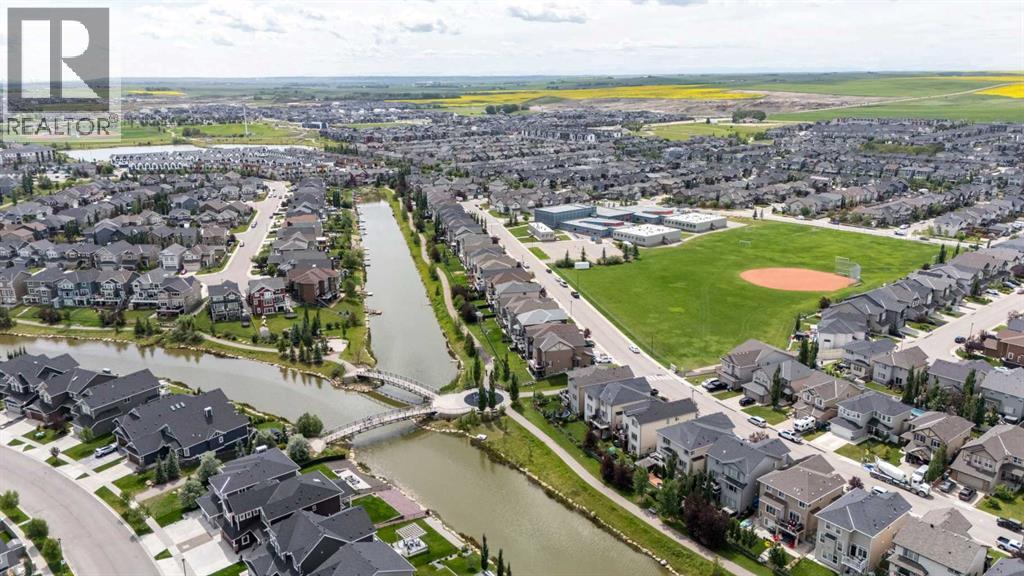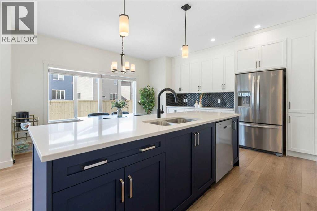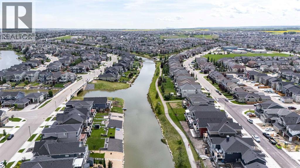 NEW PRICE! Experience modern elegance in this 2,250+ sq. ft. Bayside masterpiece. This 4-bedroom + office home features a stunning open-concept kitchen with quartz countertops, a walk-through pantry, and a cozy fireplace. The upper level boasts a versatile loft and a serene primary retreat with a spa-inspired ensuite. Enjoy premium finishes like wide vinyl plank flooring, central A/C, and a double attached garage. The west-facing backyard floods the home with natural light, while the prime location puts you steps from Bayside’s scenic canals, Nose Creek Elementary, and Chinook Winds Park. Move into Airdrie’s premier family community today! (id:63190)