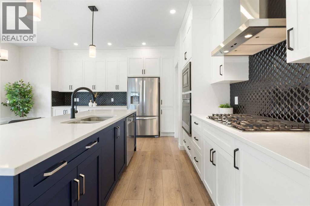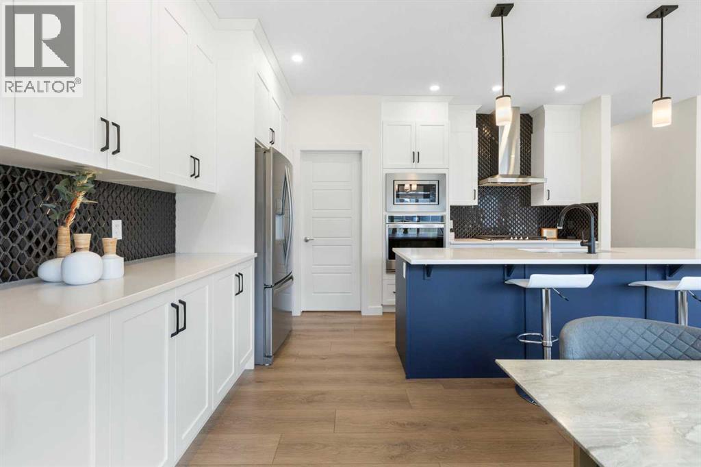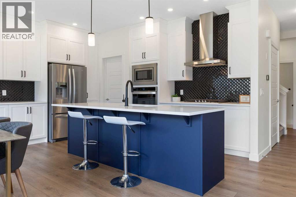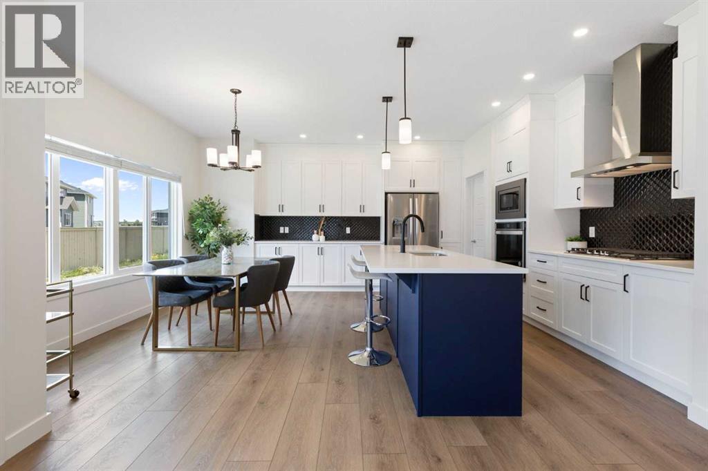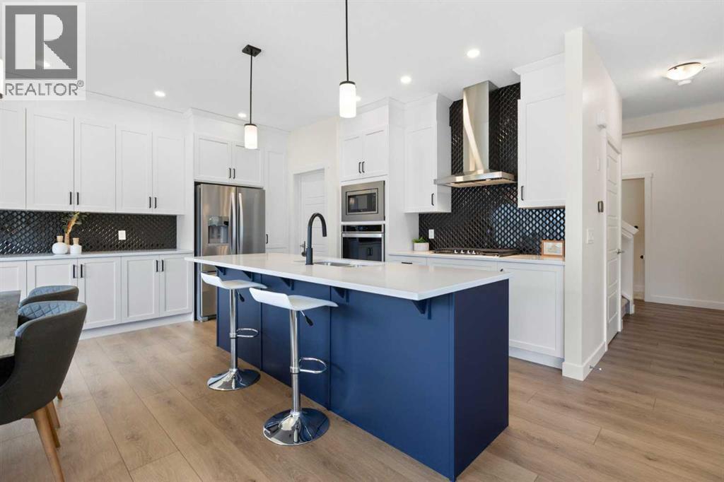 NEW PRICE! Experience modern elegance in this 2,250+ sq. ft. Bayside masterpiece. This 4-bedroom + office home features a stunning open-concept kitchen with quartz countertops, a walk-through pantry, and a cozy fireplace. The upper level boasts a versatile loft and a serene primary retreat with a spa-inspired ensuite. Enjoy premium finishes like wide vinyl plank flooring, central A/C, and a double attached garage. The west-facing backyard floods the home with natural light, while the prime location puts you steps from Bayside’s scenic canals, Nose Creek Elementary, and Chinook Winds Park. Move into Airdrie’s premier family community today! (id:63190)