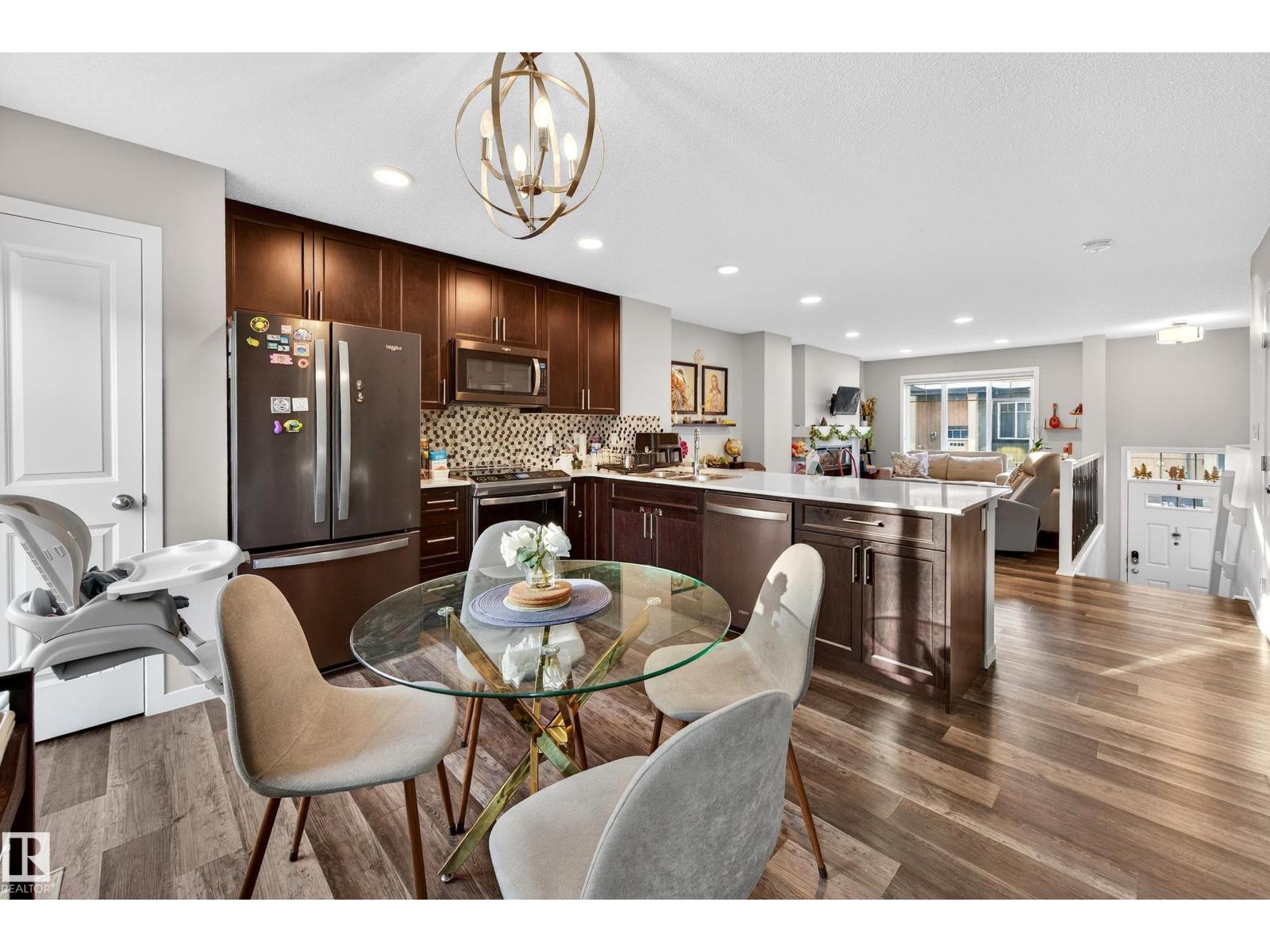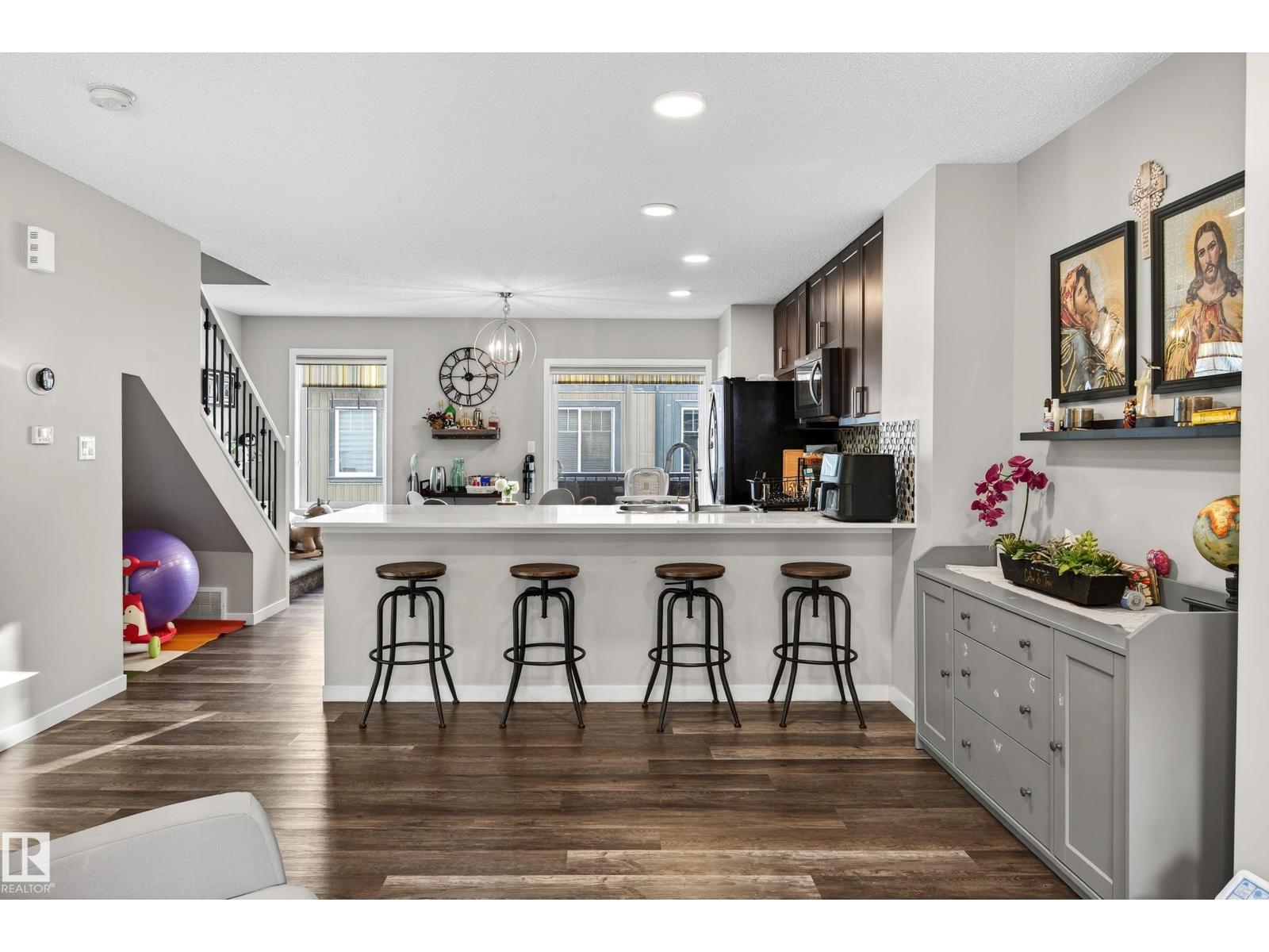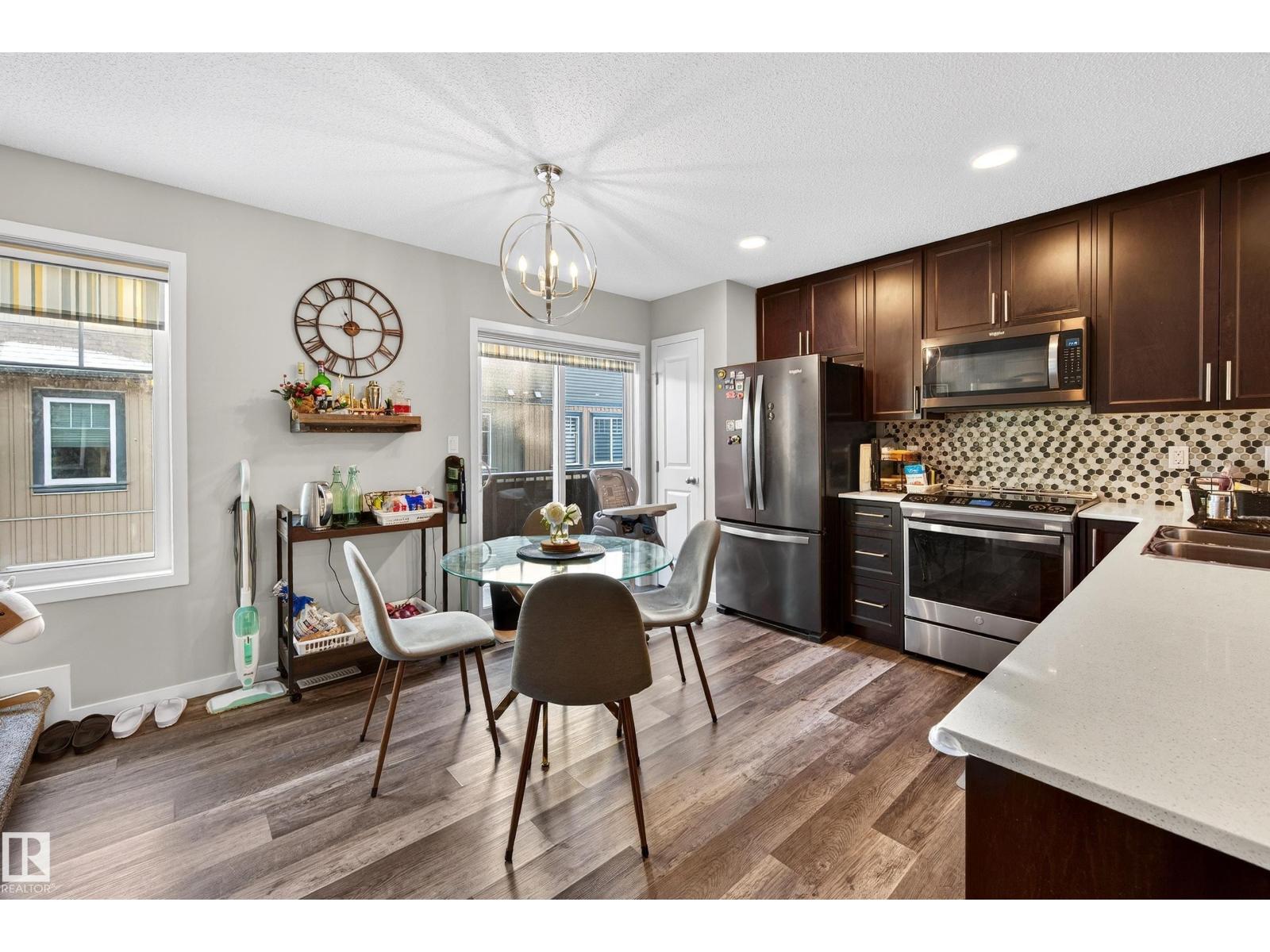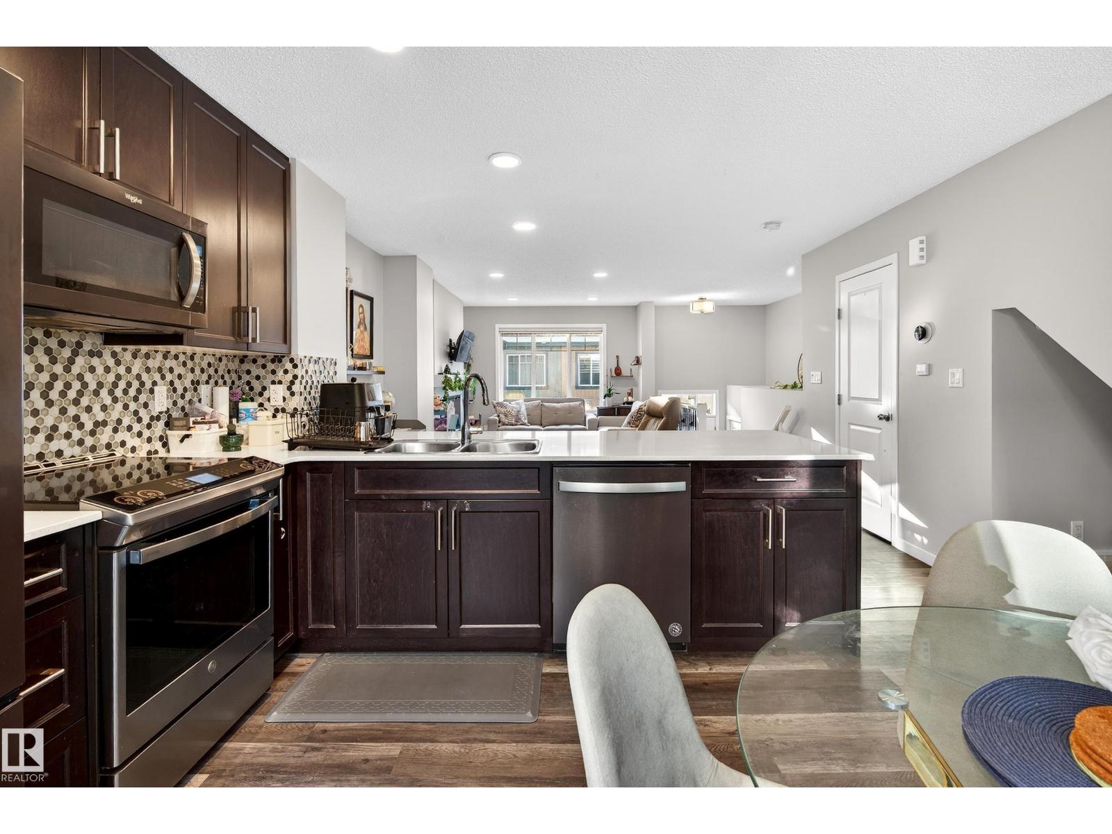 Welcome to this thoughtfully designed 3 bedroom, 2.5 bathroom townhome in the sought after community of The Orchards. Featuring a double attached garage and large windows that fill the home with natural light, this residence offers a bright and modern living space. The open concept main floor is ideal for everyday living and entertaining, complete with a contemporary kitchen with stainless steel appliances and upgraded stair railings that enhance the sense of openness. A private balcony just off the kitchen provides a perfect spot to enjoy your morning coffee. This smart home includes a Nest Hub, Nest Protect smoke and carbon monoxide detector with built in night light, 4th generation smart thermostat, Nest Door Yale Lock with camera and doorbell, Honeywell flood and freeze sensor, and LiftMaster garage opener. Low condo fees, pet free unit, pet friendly complex, walking trails behind, and close to schools, shopping, and transit. (id:63190)