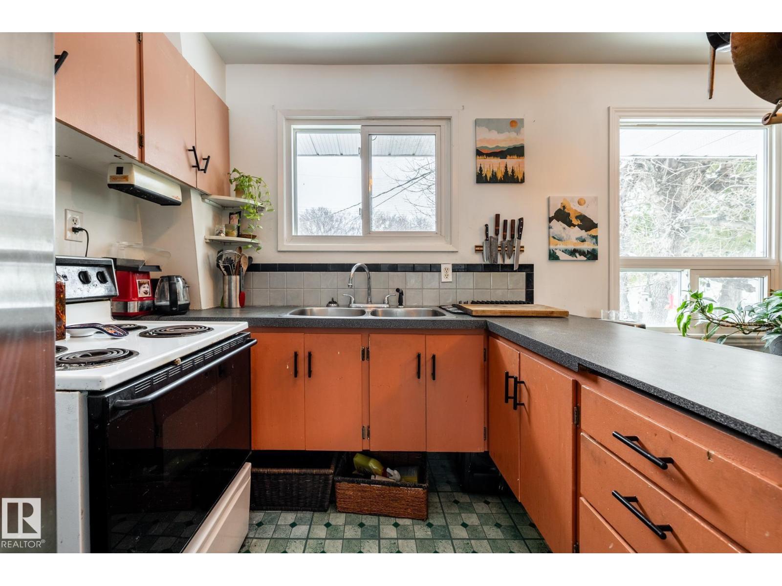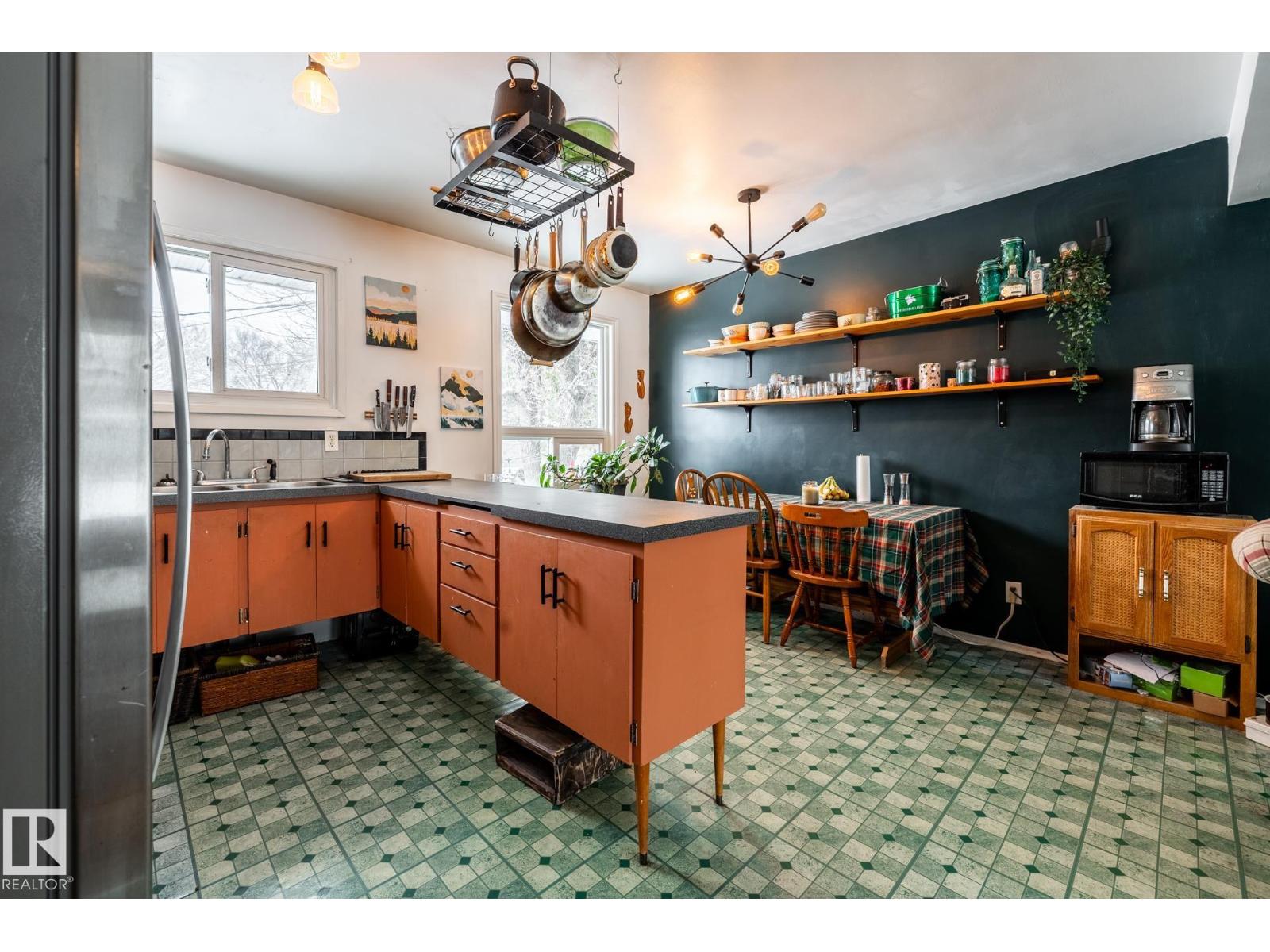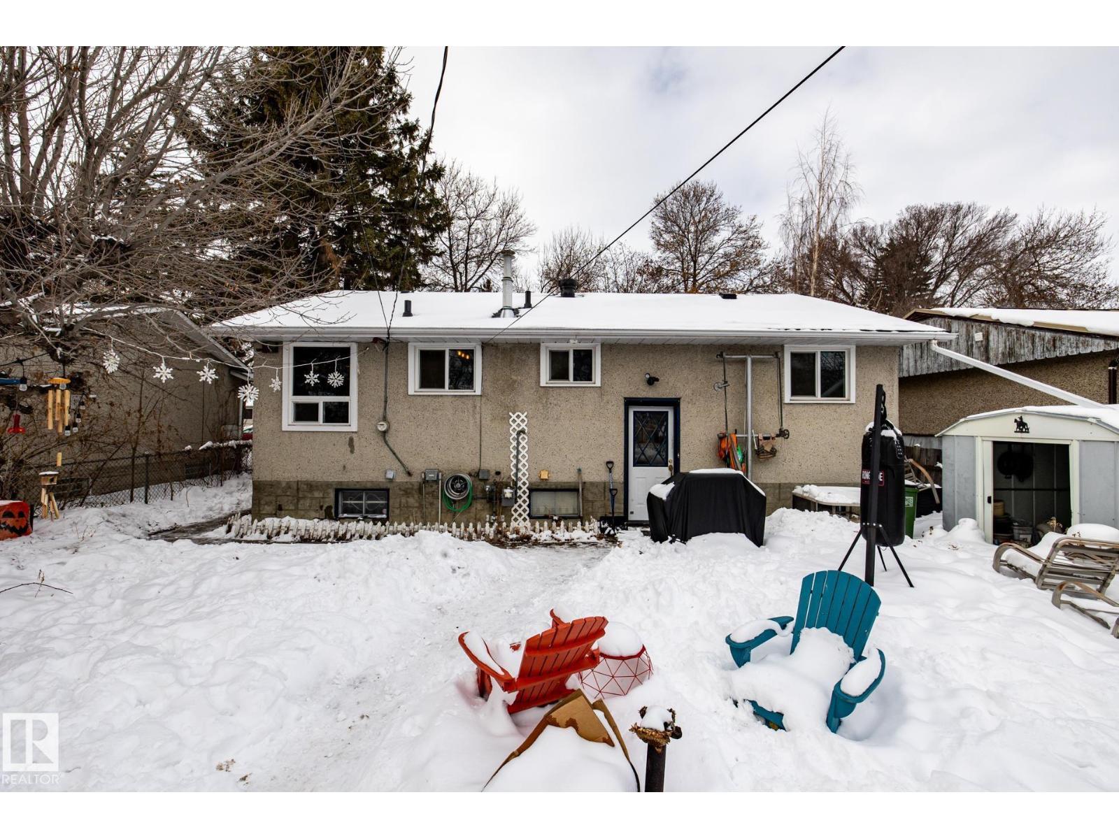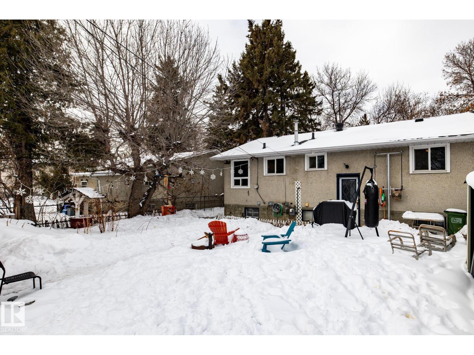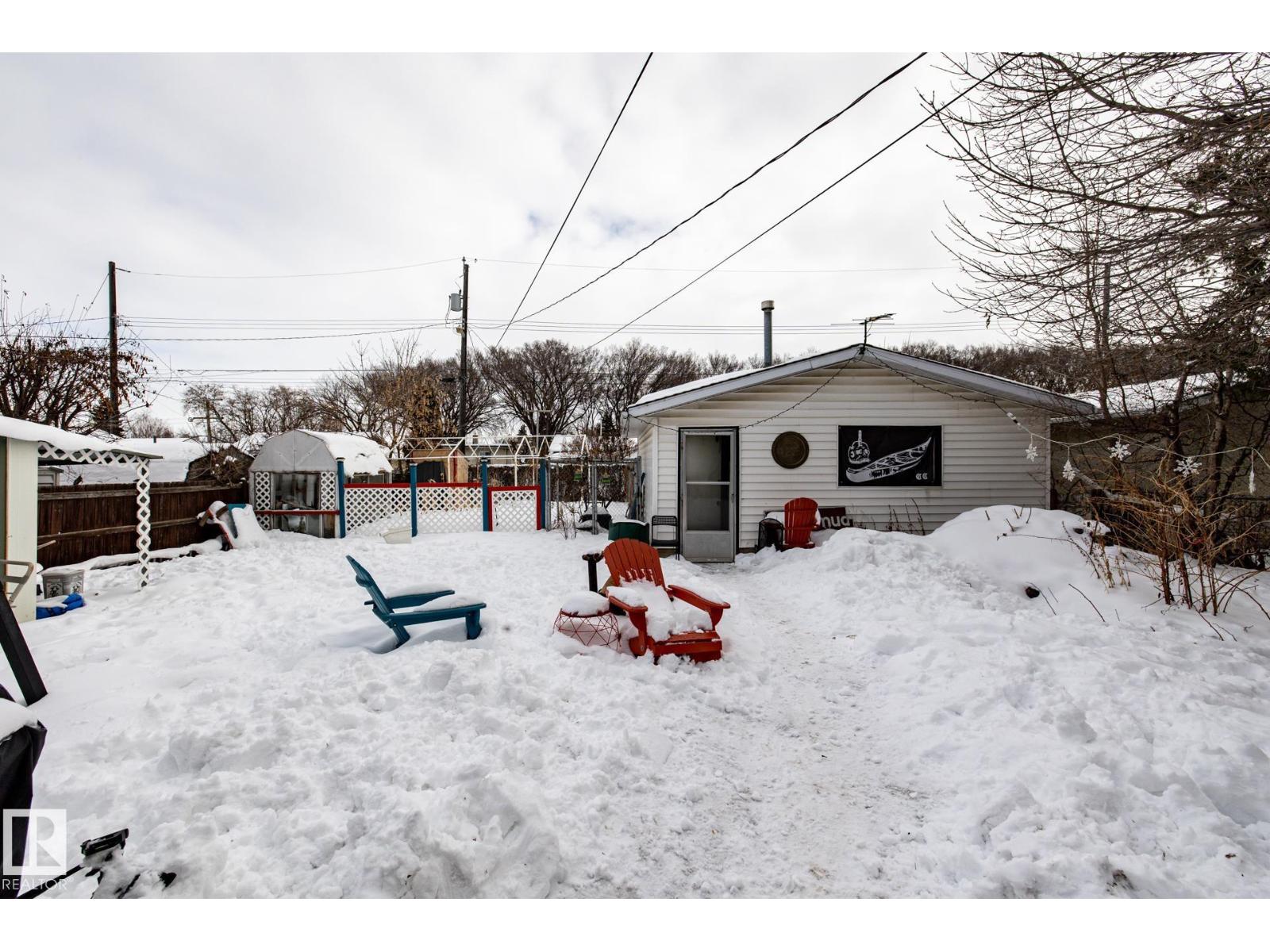 A diamond in the rough! This west-facing bungalow in Bergman sits on a 50' lot, with a great landscaped backyard and a double detached garage. Two bedrooms and a refreshed 4-pc bathroom complete the main floor, and the partly-finished full basement has the laundry, a second bathroom and two additional bedrooms. This 1950's bungalow has been opened up and the kitchen is now open to a bright and sunny great room; new shingles were added to the house (2022). Some upgrading was started in the basement and needs to be completed, perfect for a starter home or an investment where you want to build equity. Bergman is a wonderful neighbourhood and this home is on a tree-lined street within a few blocks of 50th Street and the Yellowhead Trail, and major shopping and dining/entertainment areas are nearby. (id:63190)