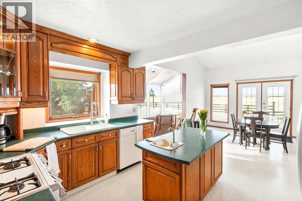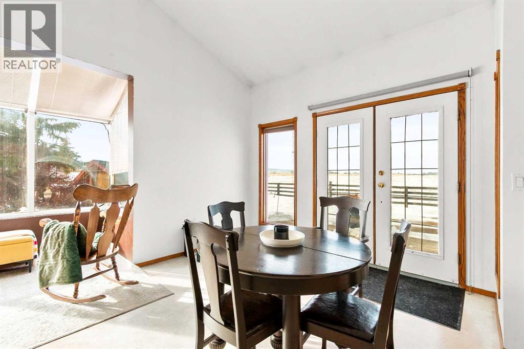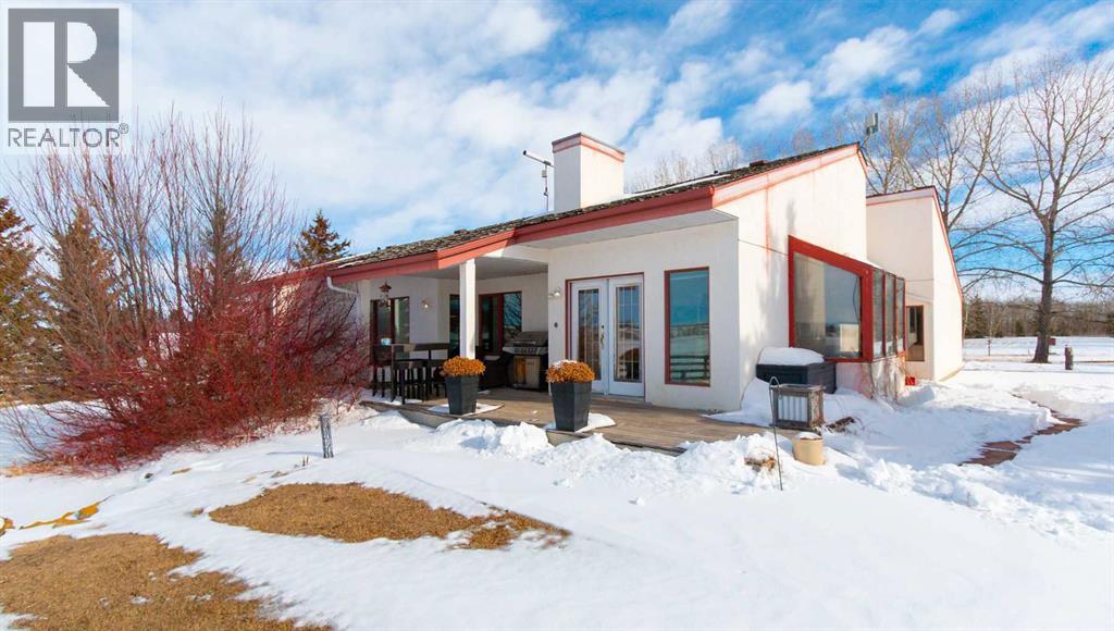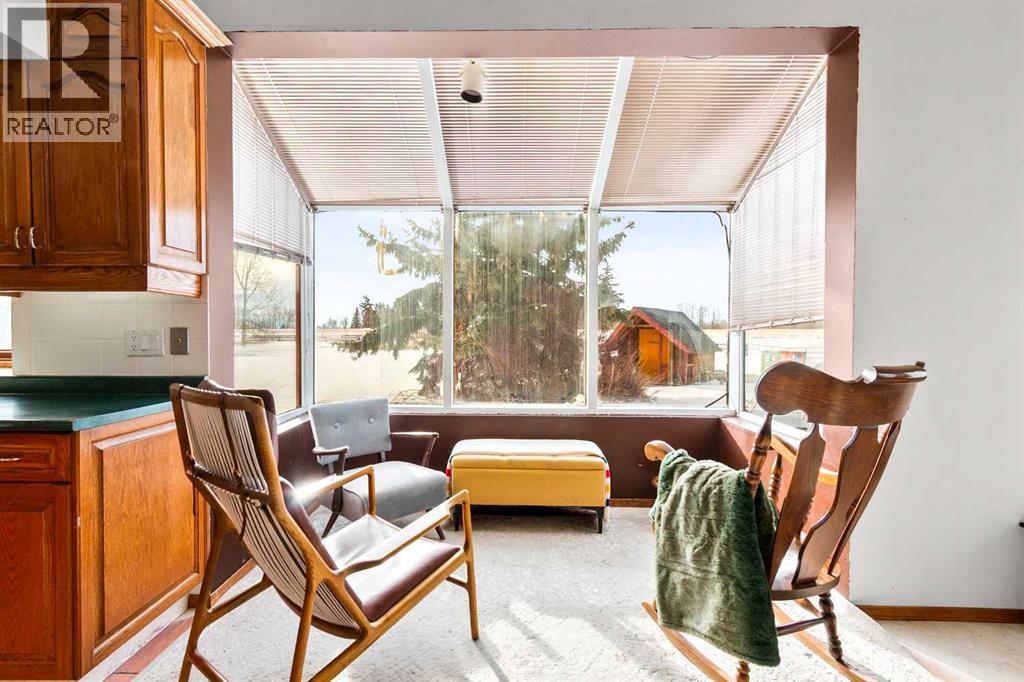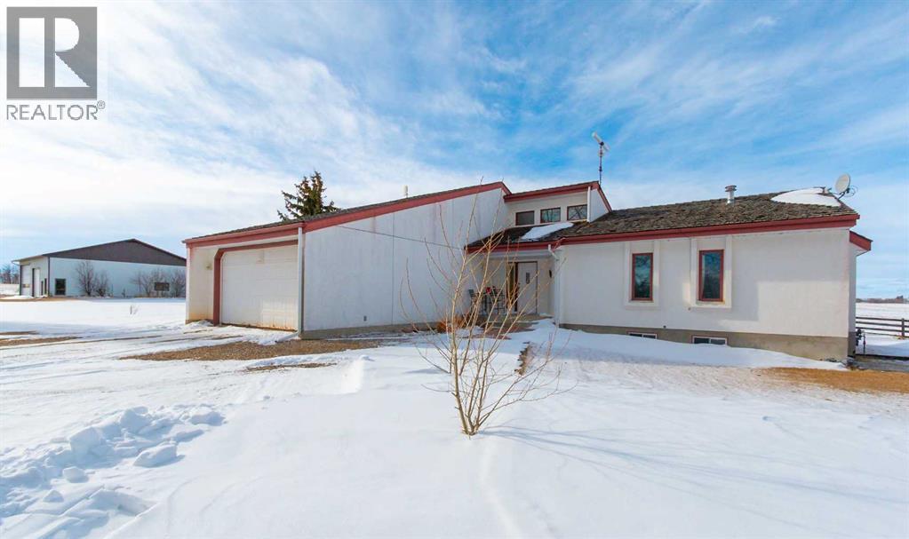 A rare opportunity to own a truly stunning and unique rural property nestled on 148.29 ACRES of picturesque Alberta countryside. This WALKOUT BUNGALOW offers space for everyone with 3 bedrooms and 2.5 bathrooms up and 1 bedroom and a 3-piece bathroom down. The original owner, CUSTOM BUILT HOME is complete with tons of Natural Light throughout the unique vaulted ceiling Great Room- tying together a large Living Room, Country Kitchen complete with a PANTRY & ISLAND and 2 Dining area Options. Patio doors lead you to the partially covered west facing DECK with gas for a BBQ overlooking the yard. Downstairs find large rooms including an office, cold room & family/hobby room. This exceptional offering is located just outside the charming town of DIDSBURY, combining the serenity of rural living with convenient access to major centres such as Calgary, Red Deer. Located adjacent to the Town limits of Didsbury, this property offers opportunity for potential future development & is an ideal setting for families, hobby farmers, or agri-business. Didsbury boasts: Three schools, a hospital, RCMP detachment, indoor swimming pool, curling rink, two surface ice arena, golf course, ball diamonds, skate park, and walking trails. Outside, enjoy unobstructed west-facing ROCKY MOUNTAIN VIEWS and wide open spaces, a perfect blend of functionality, beauty, and lifestyle. 2 Gravel driveway options with an island turnaround, a shelter belt of mature and ornamental TREES, built-in firepit area, playset, RV parking with water and power hookups and various parking opportunities. Features: 50x50 SHOP (1990): Metal clad, insulated & drywalled with concrete floor, radiant heat, water access and a 10x50 mezzanine. BARN (1995): Post & Beam construction Mixed use land offering 8+/- acres of yard, 55 +/- acres of CROPLAND & 85 +/- acres of PASTURE, native trees and wetland. Whether you're looking to expand your AG operations, start a rural lifestyle or invest in Alberta land, this property is the perf ect fit. (id:63190)