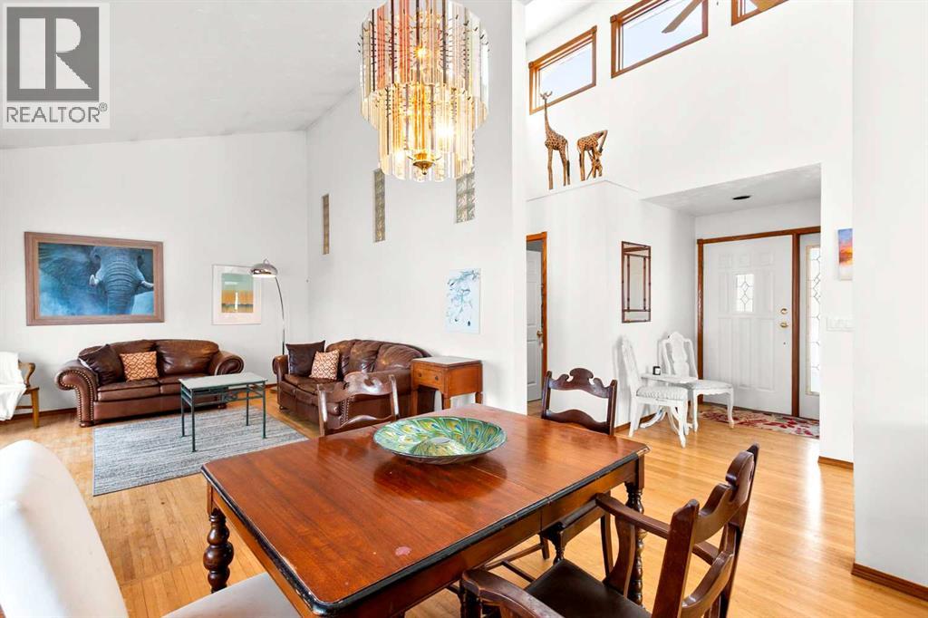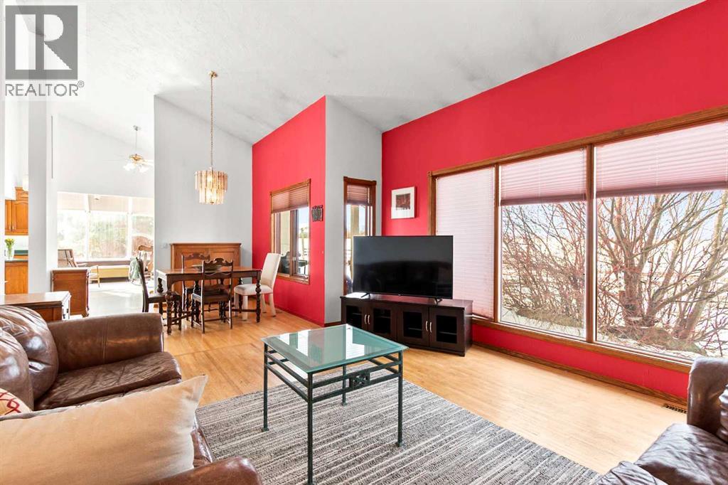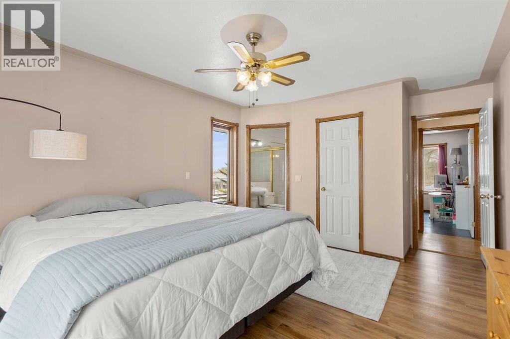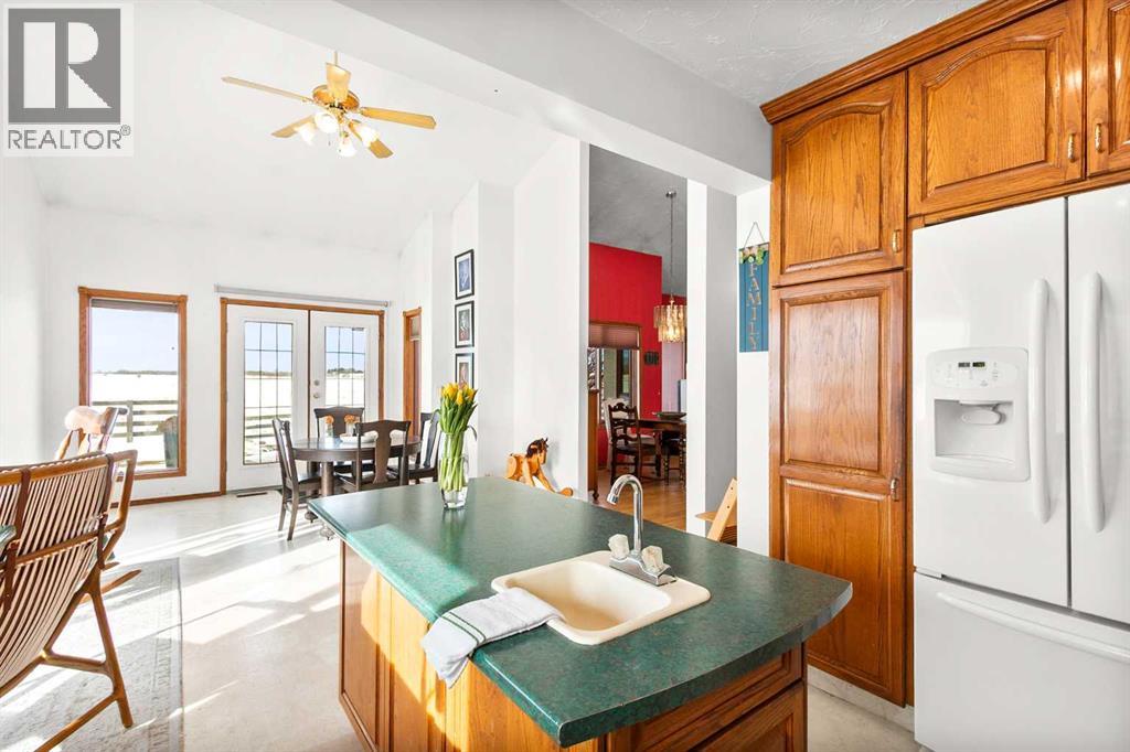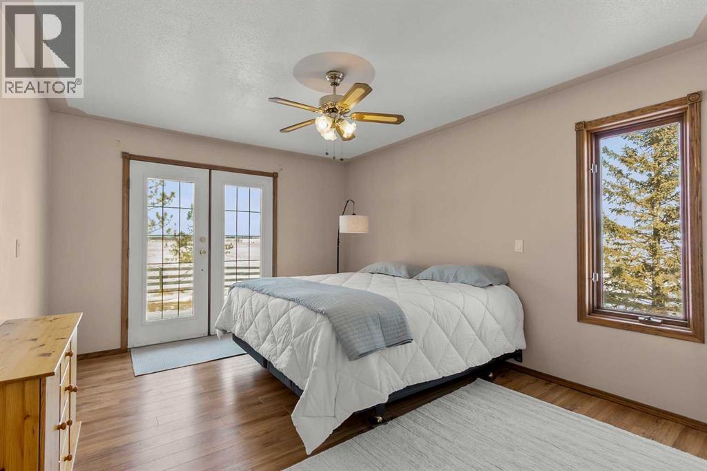 A rare opportunity to own a truly stunning and unique rural property nestled on 148.29 ACRES of picturesque Alberta countryside. This WALKOUT BUNGALOW offers space for everyone with 3 bedrooms and 2.5 bathrooms up and 1 bedroom and a 3-piece bathroom down. The original owner, CUSTOM BUILT HOME is complete with tons of Natural Light throughout the unique vaulted ceiling Great Room- tying together a large Living Room, Country Kitchen complete with a PANTRY & ISLAND and 2 Dining area Options. Patio doors lead you to the partially covered west facing DECK with gas for a BBQ overlooking the yard. Downstairs find large rooms including an office, cold room & family/hobby room. This exceptional offering is located just outside the charming town of DIDSBURY, combining the serenity of rural living with convenient access to major centres such as Calgary, Red Deer. Located adjacent to the Town limits of Didsbury, this property offers opportunity for potential future development & is an ideal setting for families, hobby farmers, or agri-business. Didsbury boasts: Three schools, a hospital, RCMP detachment, indoor swimming pool, curling rink, two surface ice arena, golf course, ball diamonds, skate park, and walking trails. Outside, enjoy unobstructed west-facing ROCKY MOUNTAIN VIEWS and wide open spaces, a perfect blend of functionality, beauty, and lifestyle. 2 Gravel driveway options with an island turnaround, a shelter belt of mature and ornamental TREES, built-in firepit area, playset, RV parking with water and power hookups and various parking opportunities. Features: 50x50 SHOP (1990): Metal clad, insulated & drywalled with concrete floor, radiant heat, water access and a 10x50 mezzanine. BARN (1995): Post & Beam construction Mixed use land offering 8+/- acres of yard, 55 +/- acres of CROPLAND & 85 +/- acres of PASTURE, native trees and wetland. Whether you're looking to expand your AG operations, start a rural lifestyle or invest in Alberta land, this property is the perf ect fit. (id:63190)