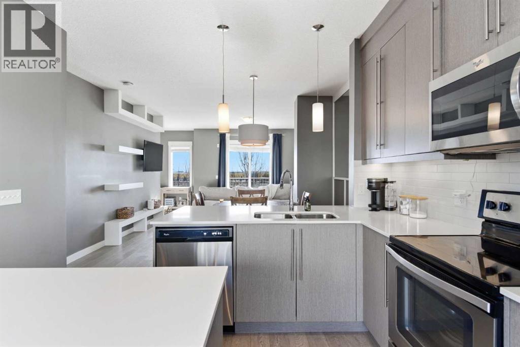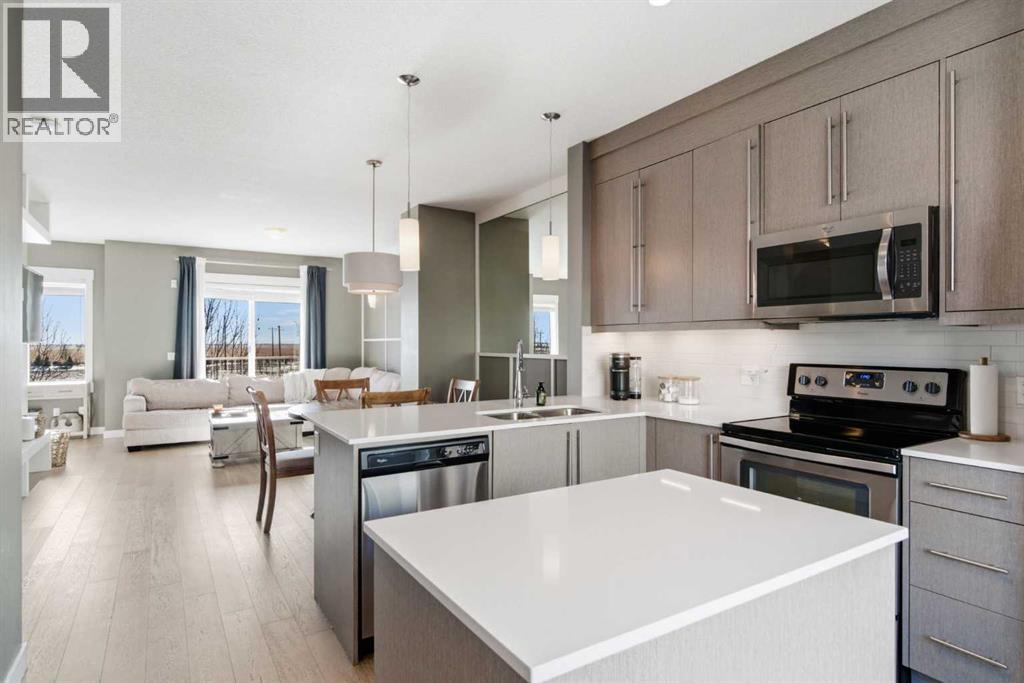 Like new townhouse condo with a smart, functional layout and high ceilings throughout. This unit offers 2 primary suites, each with its own 4-piece ensuite — ideal for roommates, guests, or shared living. The main level features a flex room that works well as a home office, gym, or additional bedroom. The second level has an open floor plan with a large centre island, quartz countertops, and plenty of cabinet and counter space. Bright and practical for everyday living and entertaining. Double attached garage provides secure parking and extra storage. Excellent location backing directly onto the canal with immediate access to the walking paths that run along the water and wrap around the south end of Chestermere Lake. Enjoy everything Chestermere has to offer plus the amazing access to all quadrants of YYC! (id:63190)