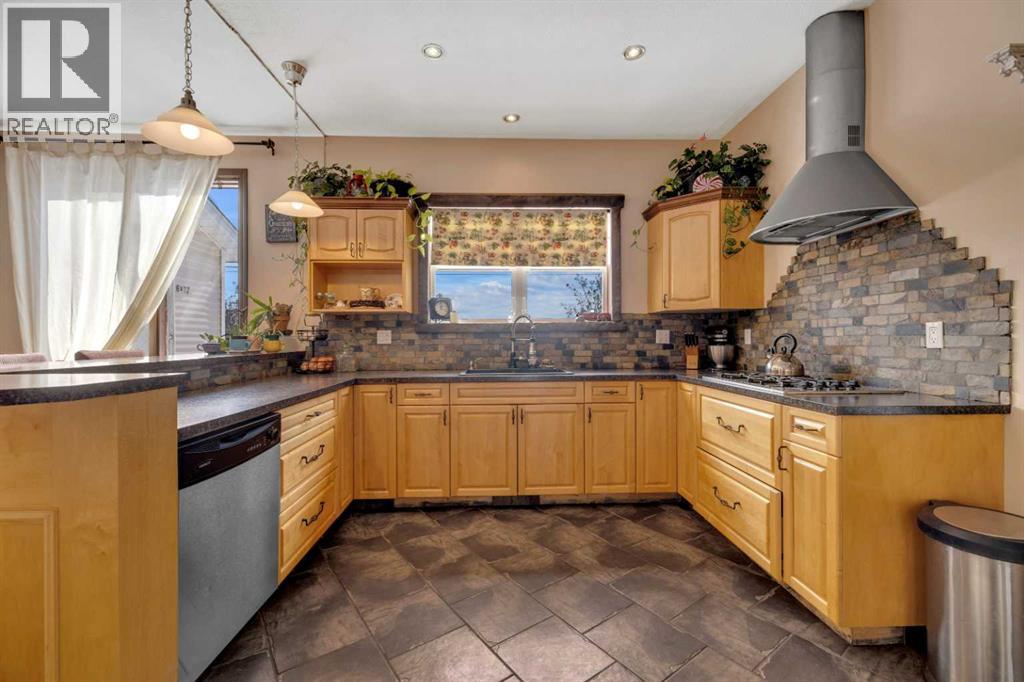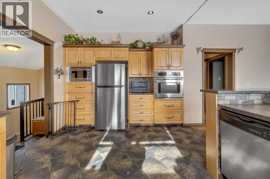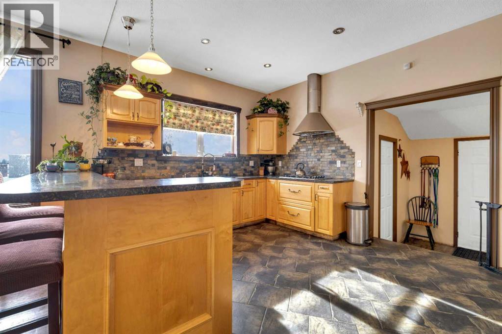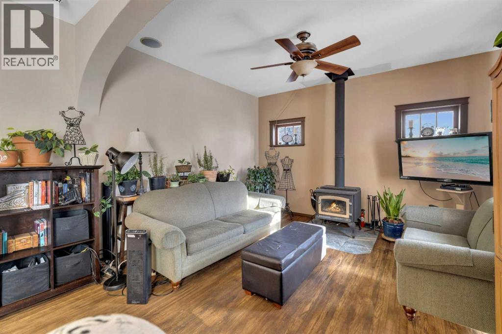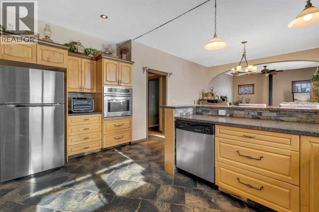 Country Charm meets Cozy comfort on this updated 0.82 Acre Mini-acreage. This 2 bedroom, 1 bathroom character home features and inviting open-concept layout, a stunning kitchen and a warm wood stove that anchors the living space. Outside you’ll find a MASSIVE detached garage – insulated, and boasting 10ft interior walls – perfect for a workshop, storage or all the toys. The fully fenced yard (7.5ft tall page wire) offers exceptional space and privacy, ideal for pets, kids or just space to relax. The paved front drive extends over 100ft, providing ample parking for trucks, RVs, trailers and more. Connected to town water with its own septic system, this property offers convenience with no neighbours behind – you truly get the best of both worlds. (id:63190)