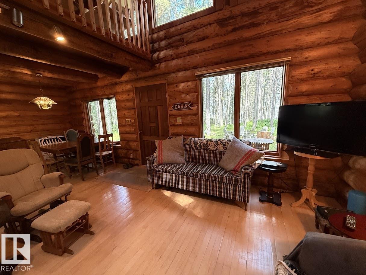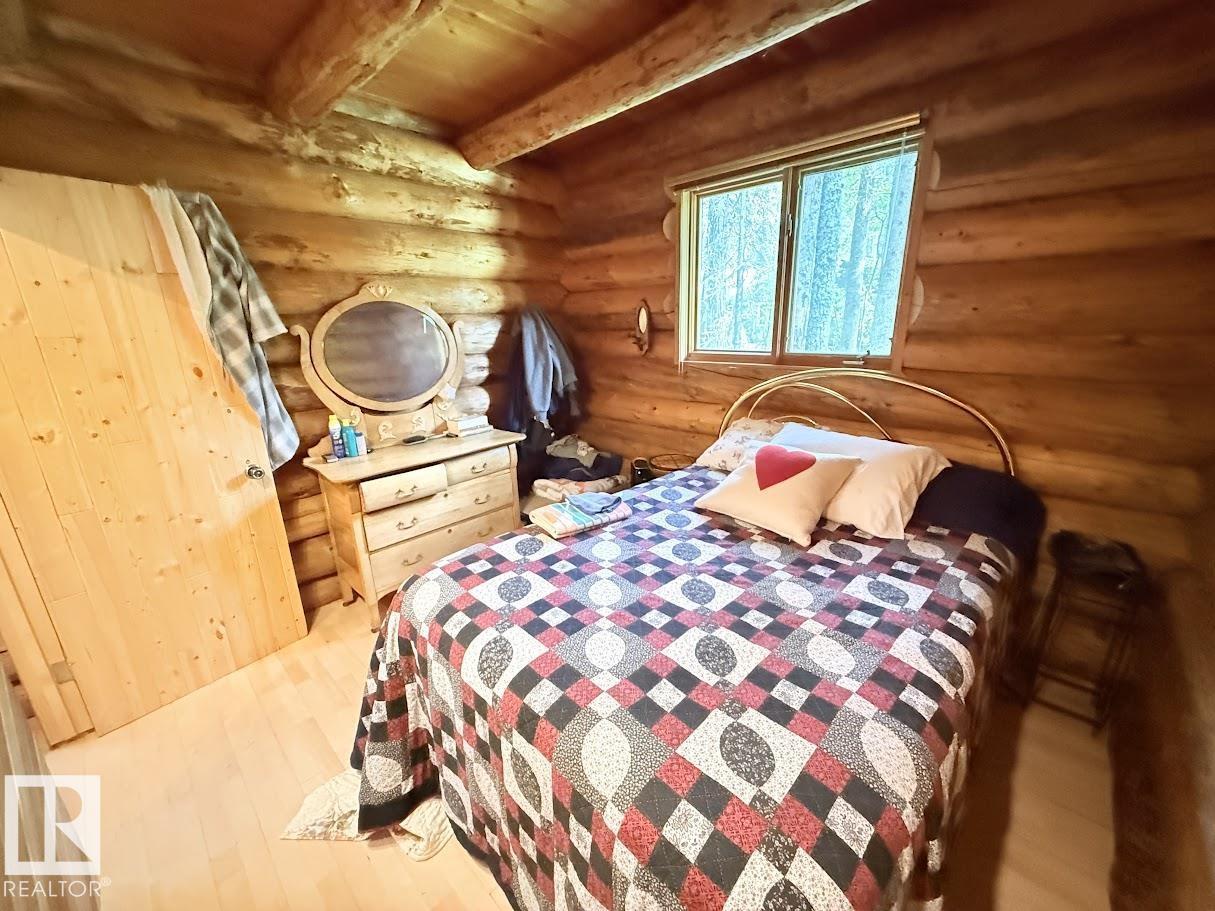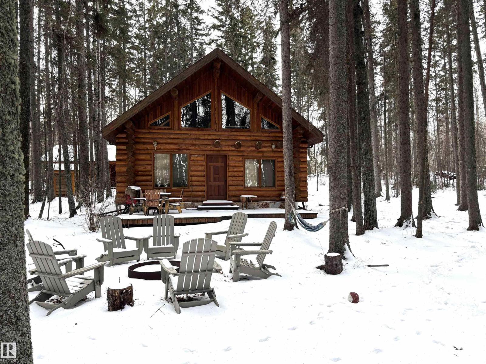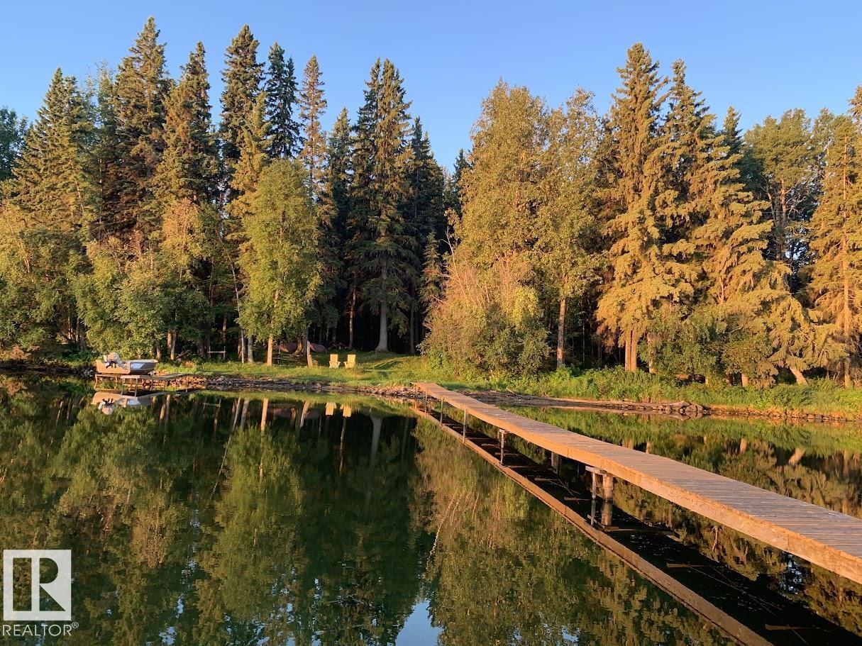 Tucked among the towering spruce on a scenic half-acre lot, this lakefront log cabin offers the perfect blend of rustic charm and peaceful privacy. The inviting cabin features a stone-faced wood-burning fireplace that provides natural warmth, complemented by two wall-mounted gravity furnaces. The kitchen, highlighted by a classic “Happy Thought” wood cook stove, is perfect for preparing meals the old-fashioned way or choose the microwave and countertop stove for modern ease. Inside, you’ll appreciate beech flooring, pine cabinetry, and generous lakeside windows that flood the home with natural light. The primary bedroom and 3-piece bath, are on the main floor with the loft offering two additional bedrooms plus an open bonus area, ideal for extra sleeping space or a games area. Furniture, household goods, shed, boat lift and 112 ft. dock are included. Adjacent lot #21, MLS#E4475321, is also available for sale providing a rare opportunity to own over 1 acre of lakefront property in Buck Lake Estates. (id:63190)