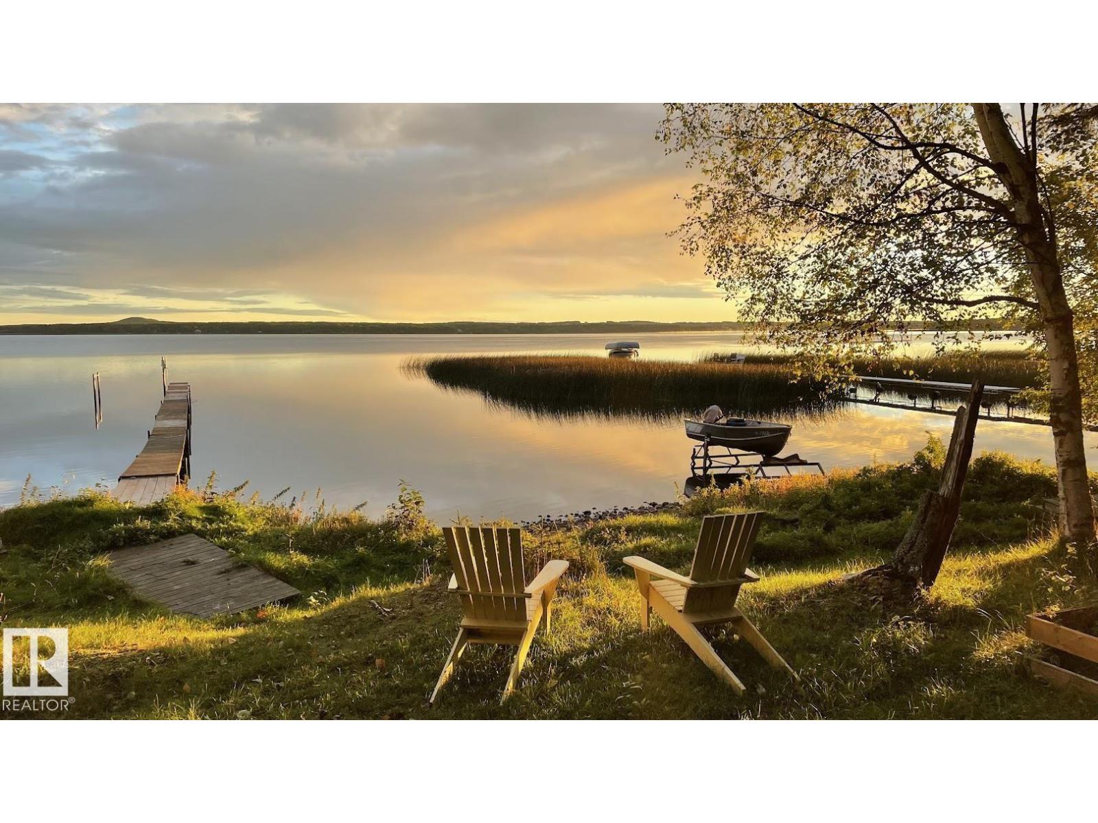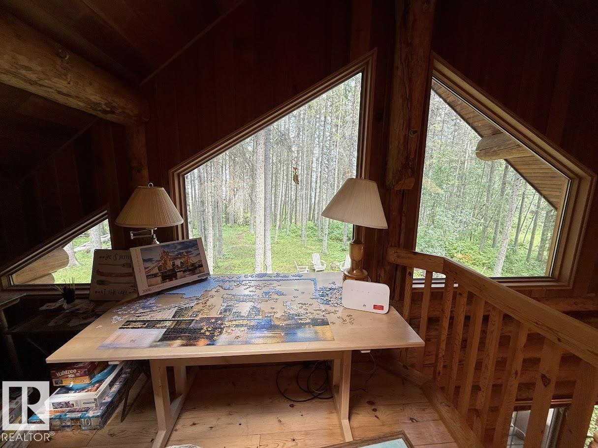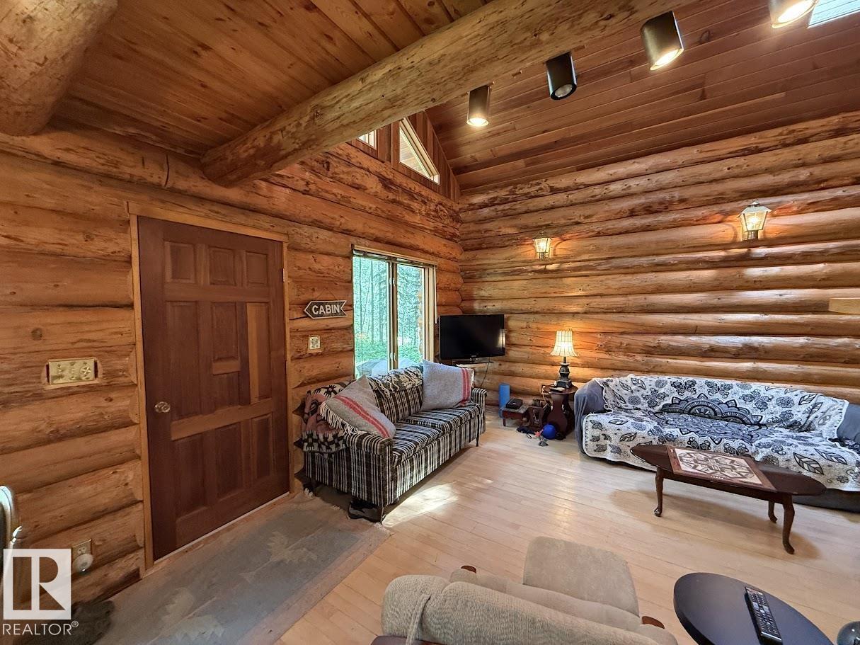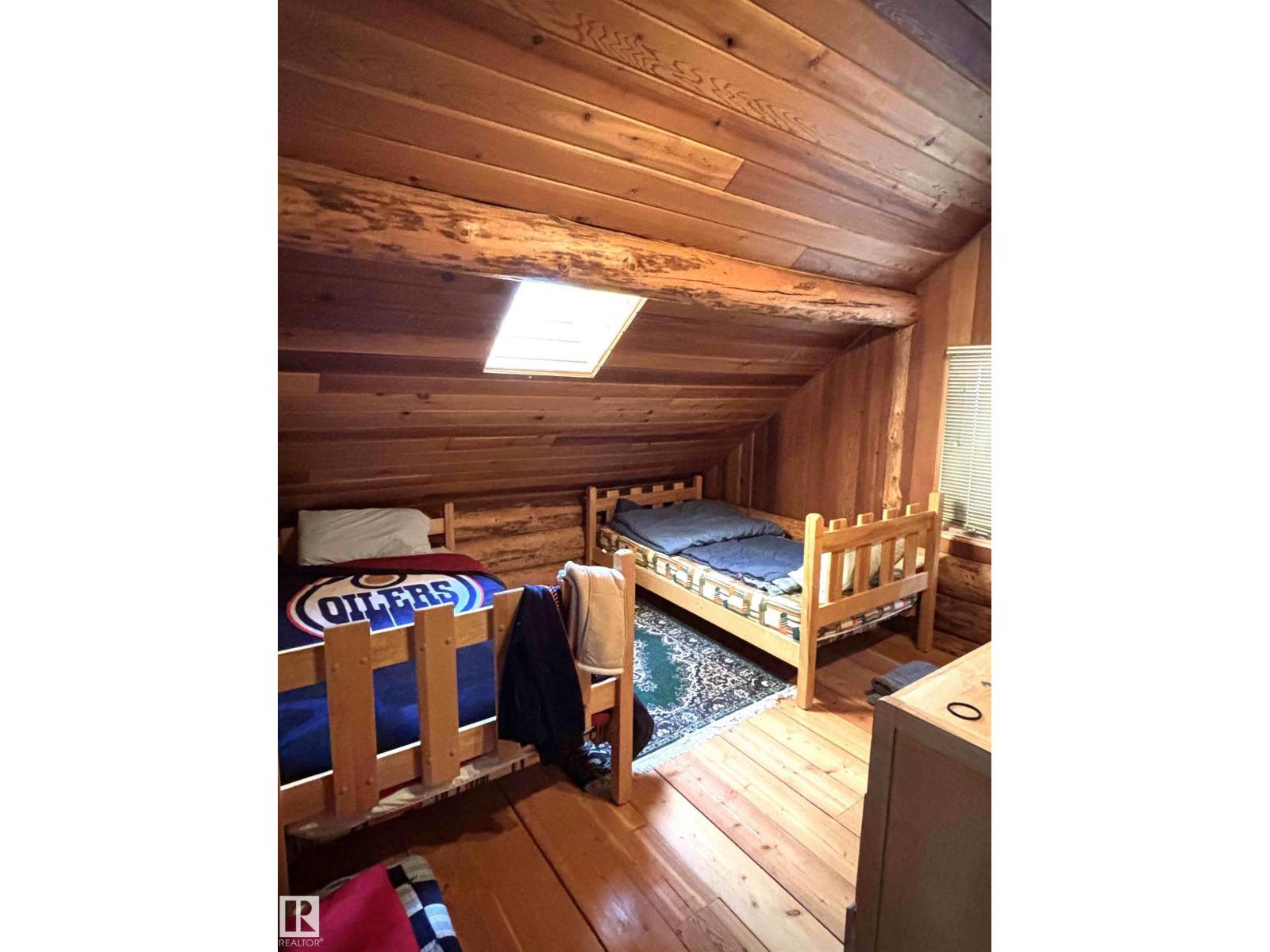 Tucked among the towering spruce on a scenic half-acre lot, this lakefront log cabin offers the perfect blend of rustic charm and peaceful privacy. The inviting cabin features a stone-faced wood-burning fireplace that provides natural warmth, complemented by two wall-mounted gravity furnaces. The kitchen, highlighted by a classic “Happy Thought” wood cook stove, is perfect for preparing meals the old-fashioned way or choose the microwave and countertop stove for modern ease. Inside, you’ll appreciate beech flooring, pine cabinetry, and generous lakeside windows that flood the home with natural light. The primary bedroom and 3-piece bath, are on the main floor with the loft offering two additional bedrooms plus an open bonus area, ideal for extra sleeping space or a games area. Furniture, household goods, shed, boat lift and 112 ft. dock are included. Adjacent lot #21, MLS#E4475321, is also available for sale providing a rare opportunity to own over 1 acre of lakefront property in Buck Lake Estates. (id:63190)
