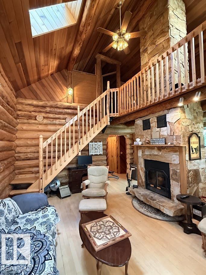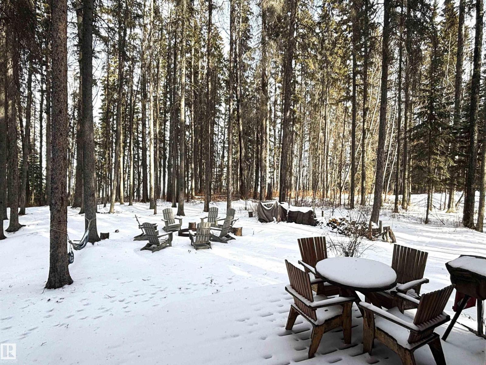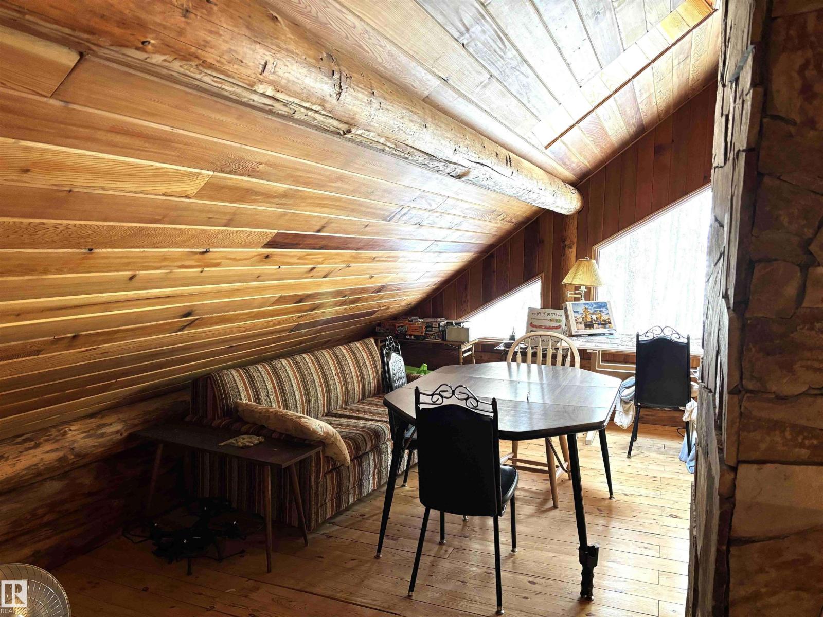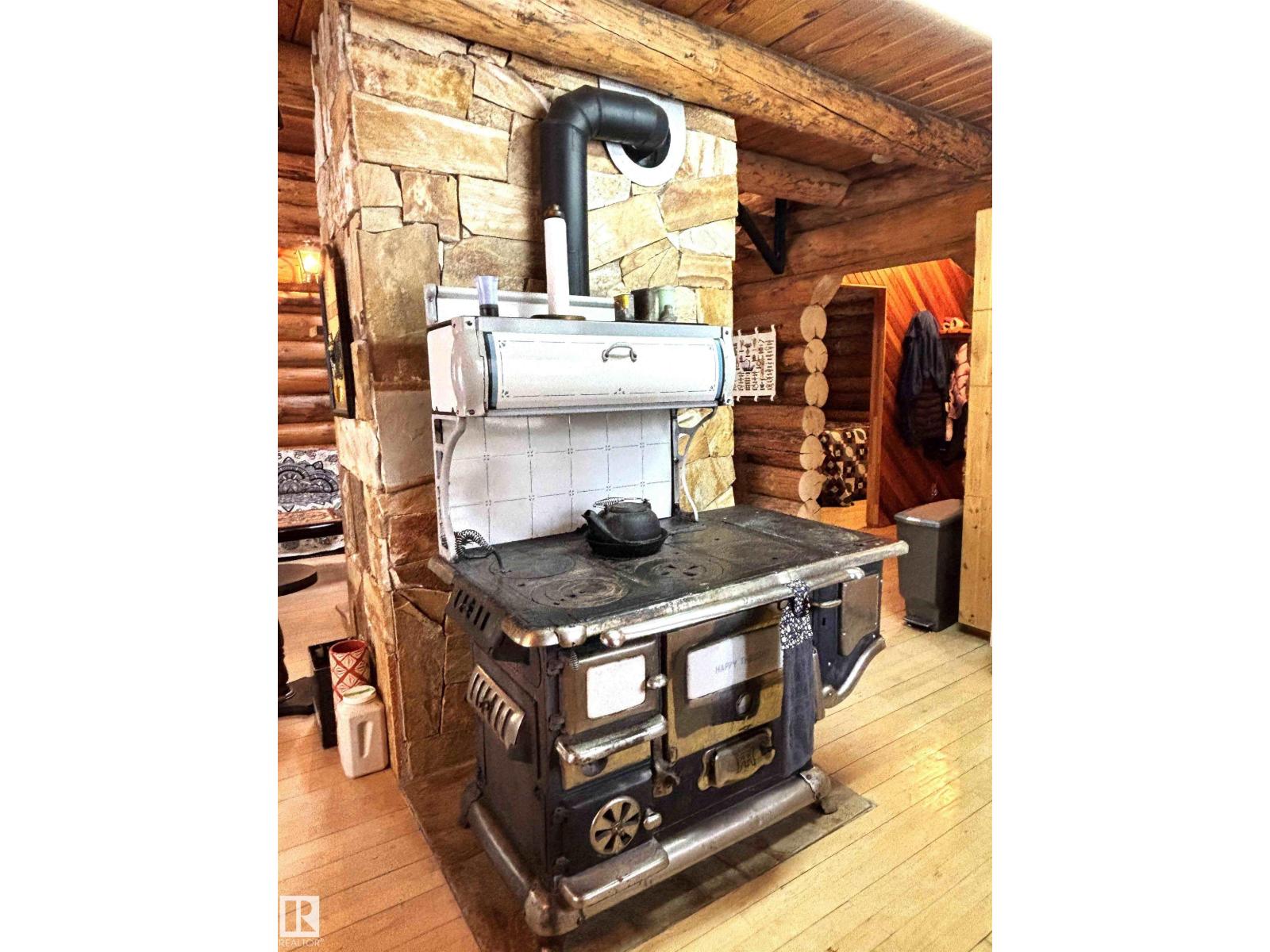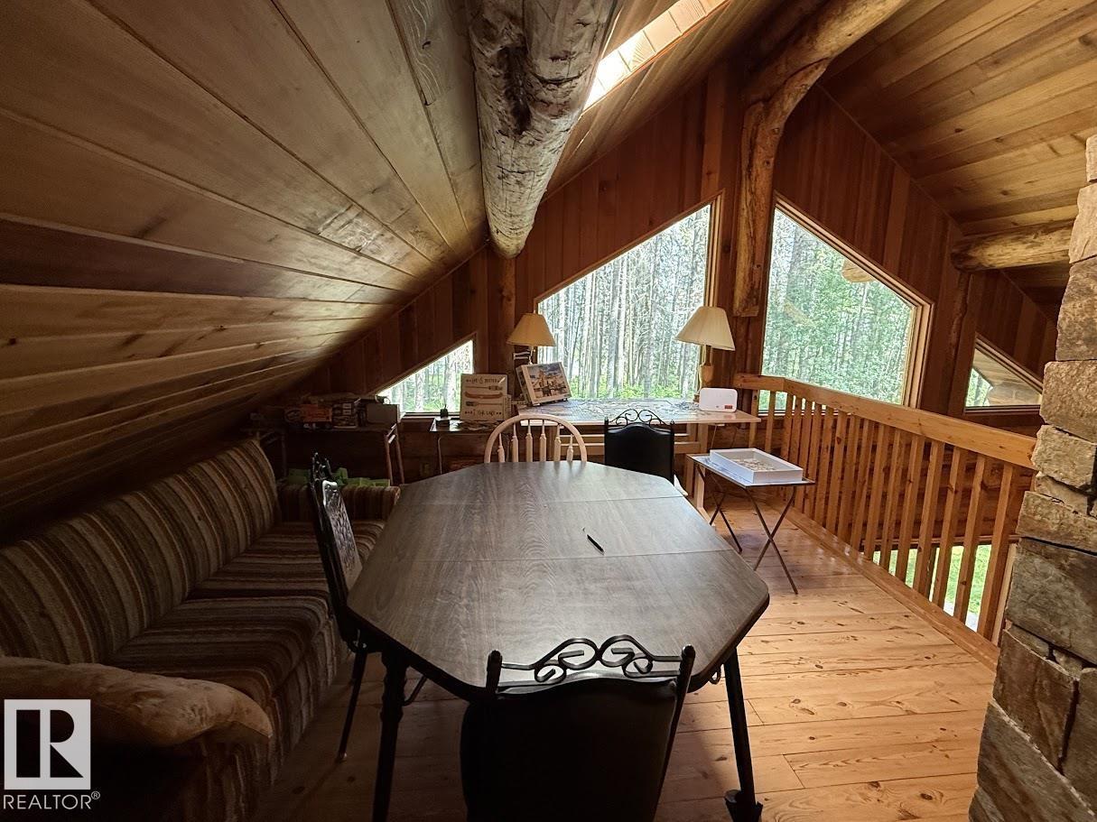 Tucked among the towering spruce on a scenic half-acre lot, this lakefront log cabin offers the perfect blend of rustic charm and peaceful privacy. The inviting cabin features a stone-faced wood-burning fireplace that provides natural warmth, complemented by two wall-mounted gravity furnaces. The kitchen, highlighted by a classic “Happy Thought” wood cook stove, is perfect for preparing meals the old-fashioned way or choose the microwave and countertop stove for modern ease. Inside, you’ll appreciate beech flooring, pine cabinetry, and generous lakeside windows that flood the home with natural light. The primary bedroom and 3-piece bath, are on the main floor with the loft offering two additional bedrooms plus an open bonus area, ideal for extra sleeping space or a games area. Furniture, household goods, shed, boat lift and 112 ft. dock are included. Adjacent lot #21, MLS#E4475321, is also available for sale providing a rare opportunity to own over 1 acre of lakefront property in Buck Lake Estates. (id:63190)
