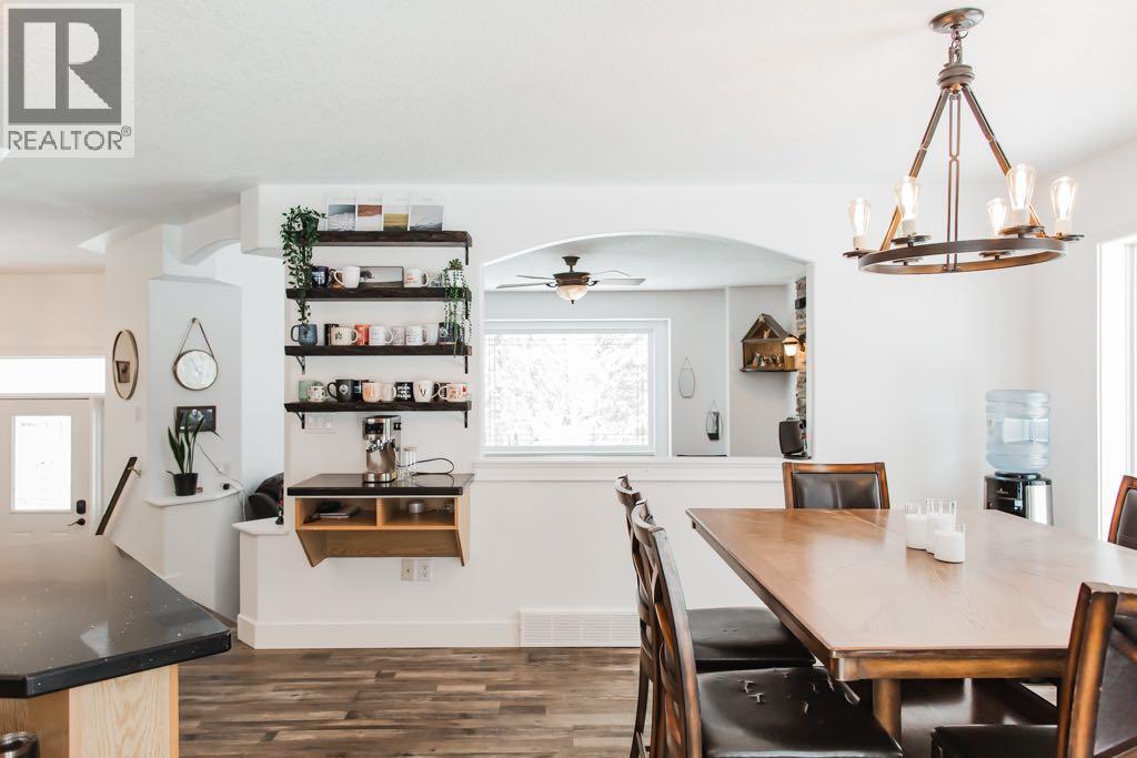 Welcome to this beautiful acreage in Spruce Villa Estates, located on the same road as Spruce Meadows Golf Course and offering peaceful country living just minutes from town. Situated on 3 private, treed acres with pavement right to the driveway, this property offers the space, privacy, and lifestyle acreage buyers are looking for. This 4 bedroom plus den home features a bright and functional layout with open concept living and dining that is semi open to the living room, creating a welcoming space for both everyday living and entertaining. The main floor primary bedroom includes a large walk in closet, shared ensuite with the main bathroom, and a sliding door leading directly to the back deck, perfect for enjoying quiet mornings or evening sunsets. A den on the main floor offers flexibility for a home office or additional living space. Downstairs you will find three additional bedrooms, a full bathroom, a spacious family room, and laundry, providing plenty of room for family or guests. Step outside to enjoy the partially covered back deck overlooking the beautifully treed yard, complete with a large hot tub for year round relaxation. The property also features a heated attached garage, along with two additional sheds for extra storage. Several important updates have already been completed including new flooring in 2023, fresh paint in 2024, new shingles in 2021, and a well installed in 2014. Located in a quiet acreage community with great neighbours, this property offers the perfect blend of privacy, space, and convenience. (id:63190)