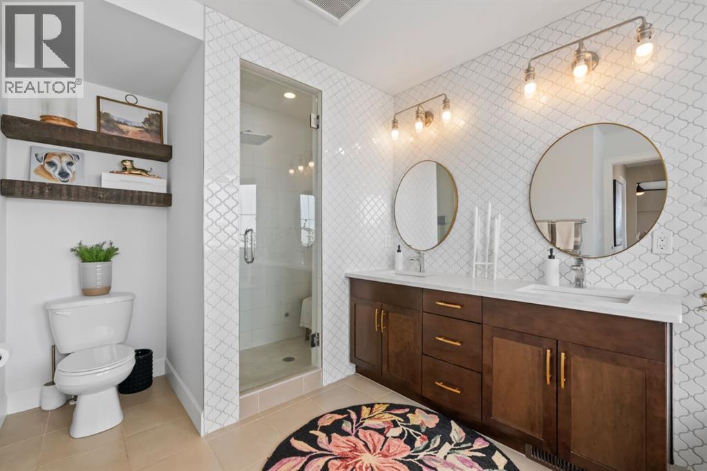 This exceptional executive two-storey walkout home offers over 3,000 sq. ft. of fully developed living space and backs onto a beautiful green space and a scenic pond which provides peaceful views and breathtaking sunsets. A spacious entryway welcomes you inside, where a bright flex room behind French doors creates the perfect home office or reading space. The main level features a sun-filled living room with west-facing windows, a cozy gas fireplace, and custom built-ins.The open-concept kitchen is designed for both everyday living and entertaining, showcasing a large granite island, ceiling-height cabinetry, stainless steel appliances, and recessed lighting. Step onto the oversized upper deck with a gas line for BBQ, perfect for enjoying the tranquil pond views. Upstairs you’ll find a spacious bonus room, upper-level laundry with a linen closet, and three generous bedrooms. The primary suite offers a walk-in closet and a spa-inspired ensuite with double vanities, a soaker tub, and a steam shower. Two additional bedrooms and a full bathroom complete the upper floor. The fully developed walkout basement adds incredible living space with a large recreation area and wet bar, an additional bedroom, full bathroom, and a bright sunroom with hot tub. There is direct access to walking paths along the pond and green space.Additional highlights include solar panels, air conditioning, a heated garage, irrigation system, permanent Govee exterior lighting, and concrete side stairs for convenient access. Ideally located close to parks, walking paths, a skate park, and pickleball courts. This home offers the perfect blend of space, comfort, and lifestyle. (id:63190)