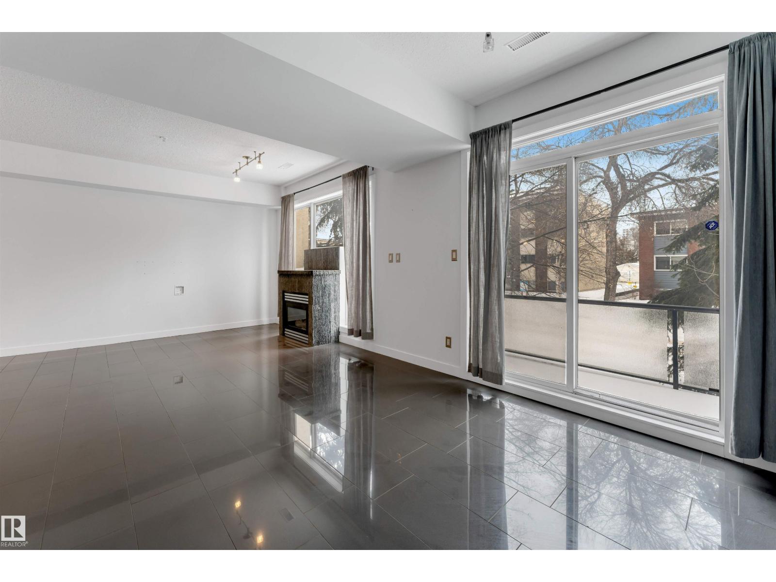 ? Stunning Executive Condo in Prime Location! ? Steps from Whyte Ave and walking distance to the U of A! ?? Special levy covered by the bank — no extra cost to buyer! Features include high-gloss porcelain tile floors, a chef-style kitchen with custom cabinetry, stainless steel appliances, and a stunning 2.5” granite island. Enjoy an open-concept living area with a cozy gas fireplace. ??? 2 spacious bedrooms + modern 3-piece bath. ?? Perfect for professionals, students, or investors! (id:63190)