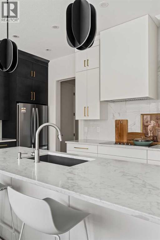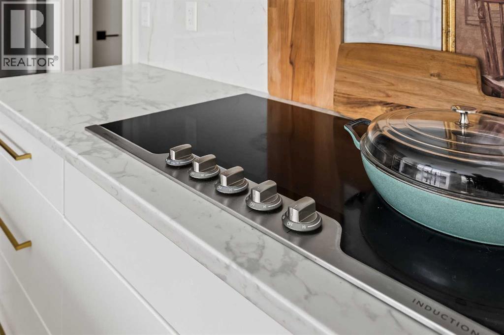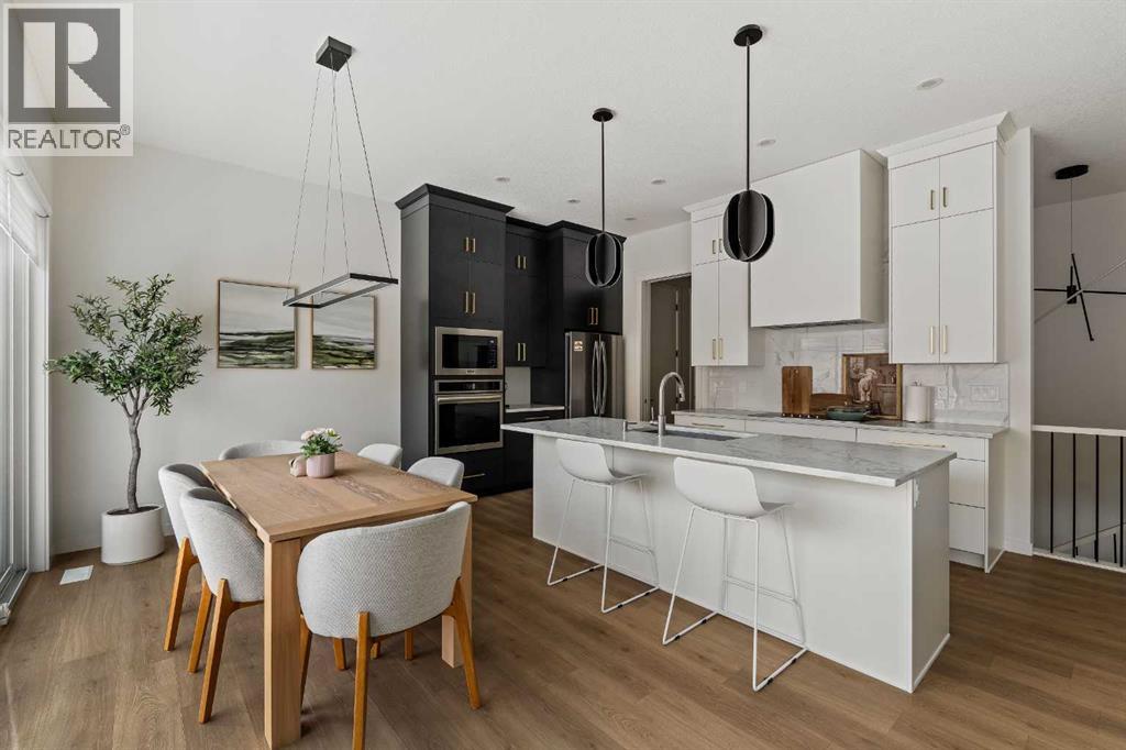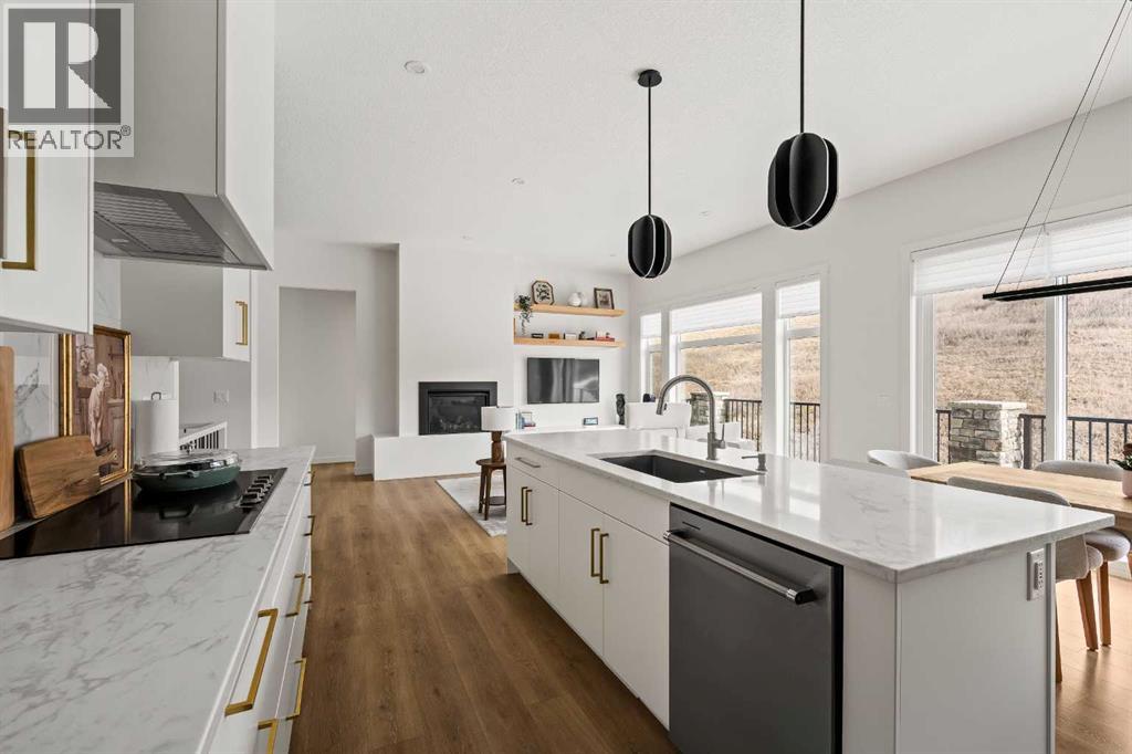 AMAZING PRICE. An Exceptional Luxury Residence offering unobstructed views of the picturesque escarpment hills in Cranston’s prominent community of Riverstone. Nestled on a quiet cul-de-sac pie lot in the Bow River Valley & surrounded by the natural scenery of Fish Creek Park this like-new custom bungalow is the perfect balance of relaxed sophistication, contemporary design & thoughtful functionality.The inspired interior delivers over 2700 SF of curated living space where the main floor’s open kitchen, dining & living areas showcase high calibre finishes. Two-toned extended cabinets, stunning quartz, & stainless-steel appliances bring style & function to the luxe kitchen boasting a wealth of storage, induction stove-top, quartz counters, oversized pantry & an island with seating for 3.The dining & living areas sit across a backdrop of expansive glass with viewpoints to the escarpment & provides access to the rear deck. A custom credenza & floating shelves elevate the inviting fireplace bringing an air of casual elegance to the sunlit living room. The spacious owner’s suite features a large primary bedroom with beautiful views & gorgeous floor-to-ceiling window coverings, an indulgent spa-like ensuite with dramatic vanity & tiling, luxurious stand-alone tub, separate oversized shower & heated floors! Built-in shelving provides organization to the walk-in closet while a folding table & extra storage bring added convenience to the laundry room. Completing the main floor is a charming powder room detailed with designer wallpaper & a spacious mudroom offering ample room for storage & a small workstation. The warm vinyl plank flooring extends down the staircase & throughout the fully developed walk-out lower level. Finished to the same exacting standards this floor likewise enjoys uninterrupted views while providing direct access to the lovely patio.Two generous bedrooms offer flexibility for a variety of lifestyle needs — one capturing the escarpment views & boasting cu stom drapery & the other featuring its own walk-in closet making them equally well-suited as a guest room, home office, or a gym. A 2nd full bathroom with heated floors rounds off this delightful level. Not to be outdone by the extraordinary interior, the exterior’s sleek appearance creates a sense of arrival. The private backyard is a peaceful spot to host summer barbecues or simply unwind under the stars. Other highlights of this remarkable property incl. 1) 10’ ceilings & 8’ doors, 2) ceiling speakers, 3) water softener, 4) a/c & 5) double garage with additional height & wired for EV charger. Please see a full list of features in the supplements. A short stroll to the river & scenic pathways & easy access to Deerfoot & Stoney Trails & the Cranston Resident’s Association at Century Hall offering indoor & outdoor recreational amenities, programs & events, & banquet & meeting room rentals. This exquisite gem delivers it all – a beautiful home nestled in nature, an active lifestyle & a connected community. (id:63190)