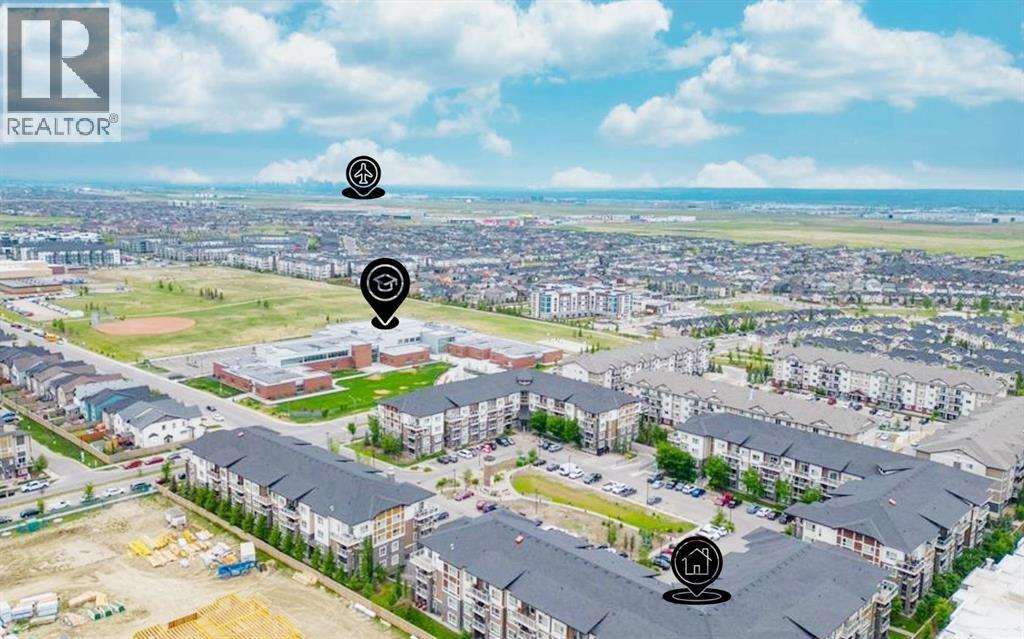 This modern ground-level, end unit offers the perfect blend of convenience and low-maintenance living, featuring 2 bedrooms, 2 full bathrooms, and a spacious walk-out covered patio. Ideally situated in a charming community, you’ll be within walking distance to Prairie Sky School, transit, and countless amenities—yet still able to come home to your quiet retreat.The ground-floor location allows for easy access while extending your living space outdoors, perfect for summer barbecues or relaxing evenings. Inside, the open-concept design is flooded with natural light from the extra windows only an end unit can offer.The contemporary kitchen is a chef’s delight with quartz countertops, full-height cabinetry, stainless steel appliances, and a peninsula island with breakfast bar, all overlooking the dining and living areas for seamless entertaining. The sunlit living room with large patio doors creates a warm, inviting atmosphere.Unwind in the spacious primary suite with a private 4-piece ensuite, while a second bedroom, another full bathroom, and in-suite laundry add comfort and practicality. Additional perks include heated underground parking and a storage locker.Located in the desirable Skyview Ranch community, you’ll be surrounded by parks, schools, shopping, and endless pathways—with quick access to Deerfoot and Stoney Trail.This immaculate home is truly move-in ready—just unpack and enjoy! (id:63190)