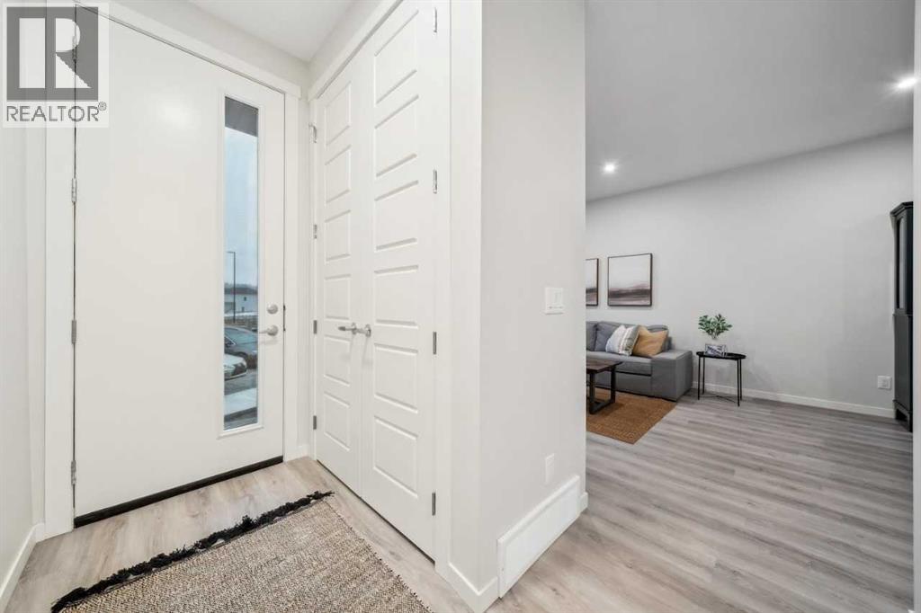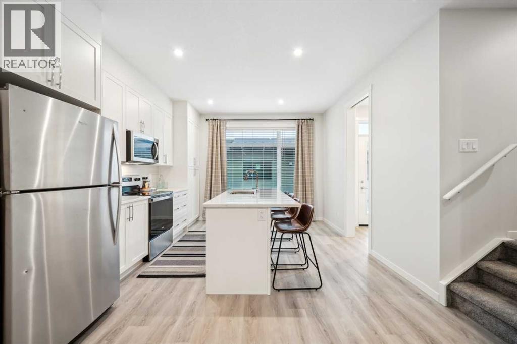 Welcome to ZEN Greystone, a vibrant and walkable community in the heart of Cochrane. This beautifully designed 3-bedroom, 2.5-bath townhome offers 1,434 sq. ft. of modern living space. The open-concept main floor features a spacious kitchen with stainless steel appliances, quartz countertops, and a large island that flows into the dining and living areas — perfect for entertaining. Upstairs, the primary bedroom includes a walk-in closet and an ensuite with a double vanity, while two additional bedrooms, a full bath, and upper-floor laundry provide everyday convenience. Additional highlights include a fenced backyard, double detached garage, and potential basement development. Enjoy a walkable lifestyle close to pathways, parks, tennis courts, Cochrane Pickleball Club, SLS Centre, off-leash dog park, Co-op, Bow RiversEdge Campground, and Downtown Cochrane. Experience the perfect blend of modern living and small-town charm at ZEN Greystone! Photos are representative. (id:63190)