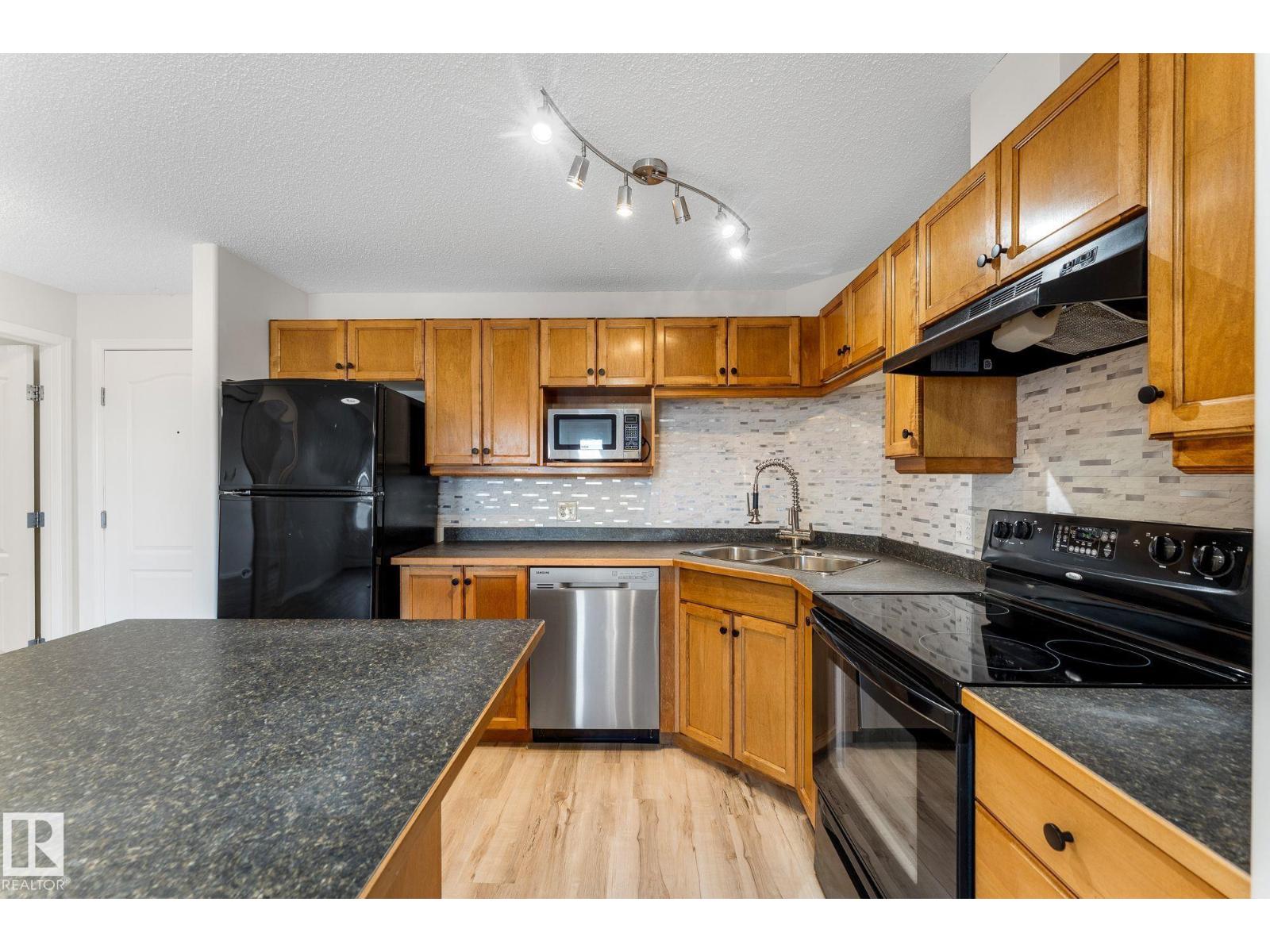 Immaculate and move-in ready, this upgraded two-bedroom, two-bathroom condo is located in a well-managed complex in Park Place in The Hamptons. The functional open-concept layout features two full 4-piece bathrooms, including a spacious primary suite with a walk-through closet and private ensuite. The home has been thoughtfully updated with newer vinyl plank flooring (June 2021), professional paint throughout (January 2026), upgraded maple kitchen cabinetry, upgraded shower heads, and three ceiling fans with integrated lighting. A rare and valuable bonus - two titled parking stalls, including one heated underground stall and one energized surface stall. The self-cleaning stove adds everyday convenience. Ideally situated just minutes from the Anthony Henday, with shops, services, and amenities all within a short walk. Immediate possession available. A must-see! (id:63190)
