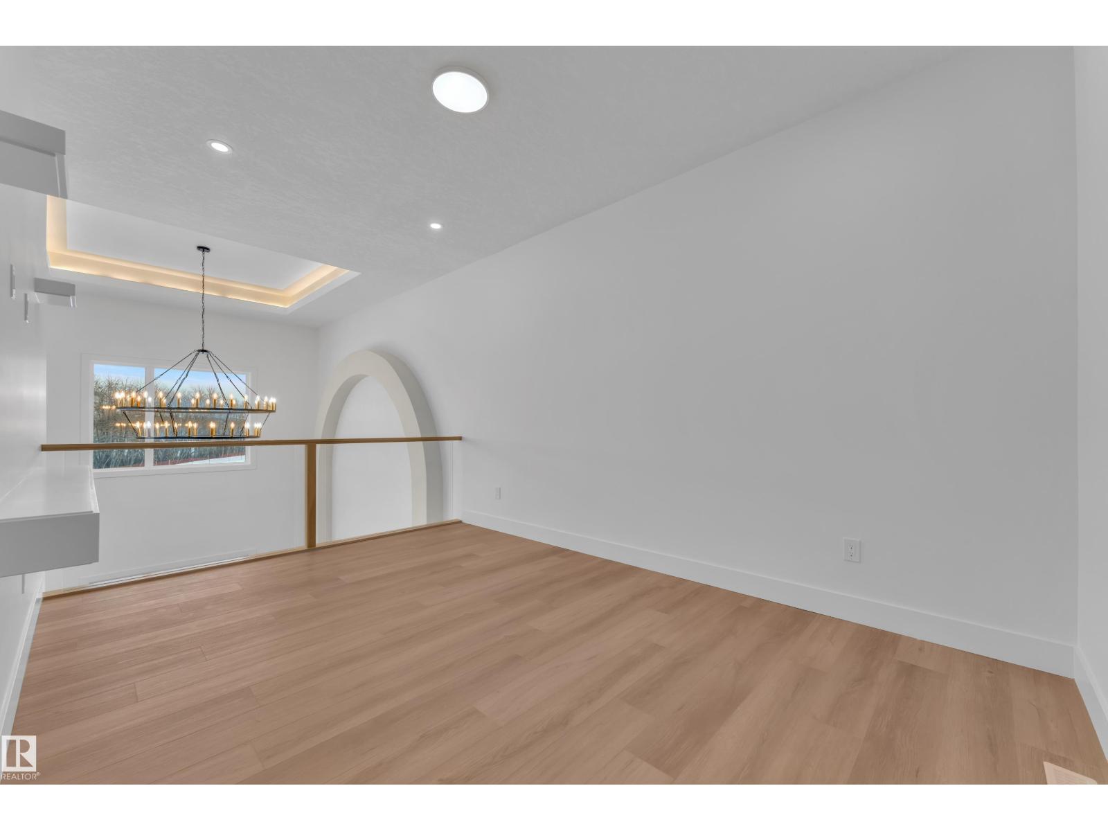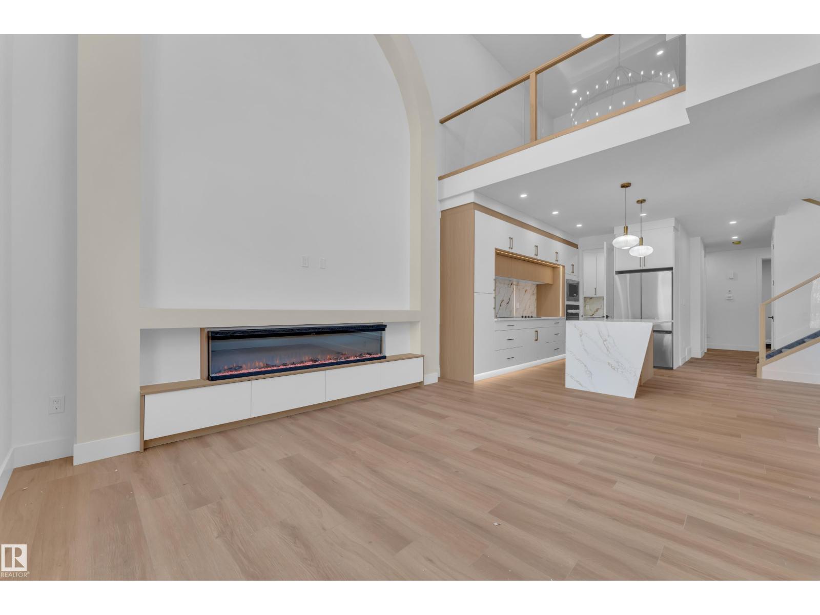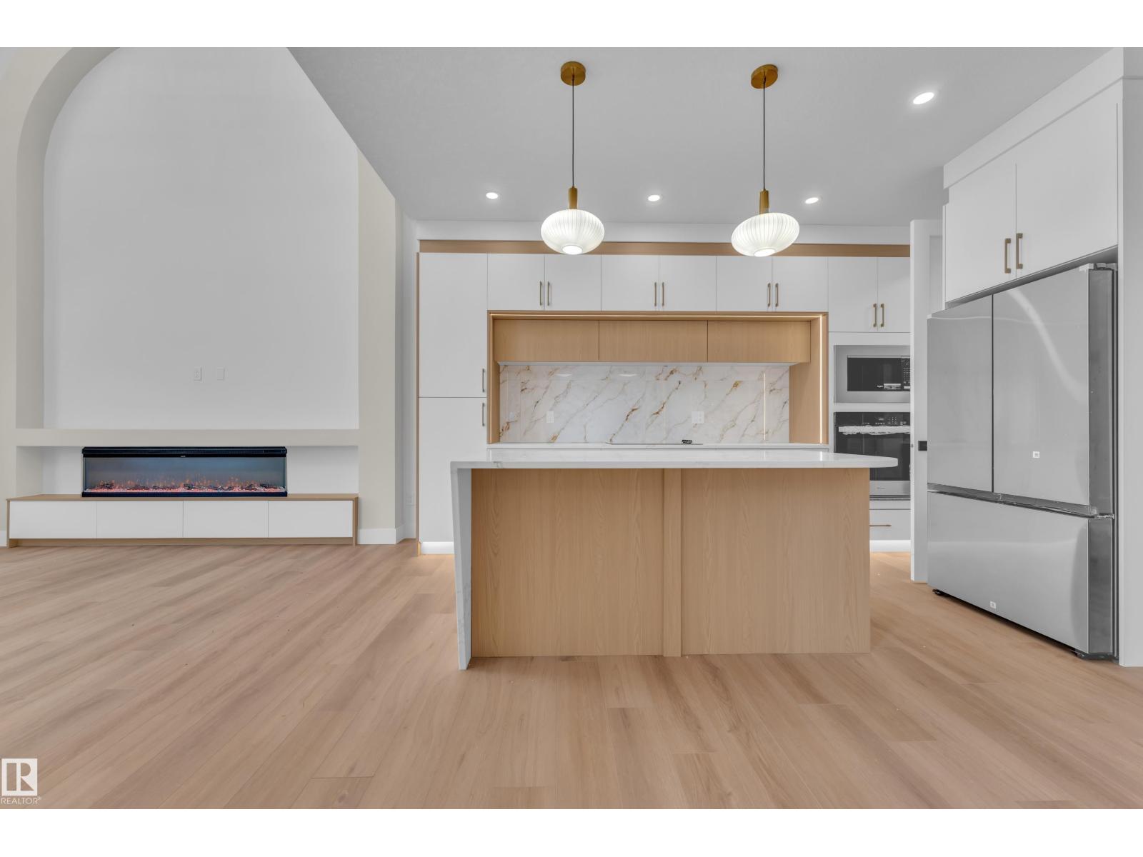 Stunning custom-built home located in the sought-after community of Alces. This beautiful 2 storey home features an open-concept layout with modern finishings throughout. The main floor offers a FULL BED/DEN and a 3 PC bathroom, along with an elegantly finished MODULAR KITCHEN with APPLIANCES , a separate SPICE KITCHEN, and an EXTENDED KITCHEN in the dining area. The OPEN TO BELOW living area features a stunning arc-designed feature wall with a 3-sided fireplace, complemented by large windows that bring in abundant natural sunlight. The second floor features a spacious Master bedroom with a Vaulted Ceiling, feature wall with ambient lighting and a 5PC Ensuite. 2 additional Bedrooms share a common 3-PC bathroom. A conveniently located upstairs Laundry Room and a Bonus Room provide the perfect space for family living and entertainment. The Basement includes 9-ft ceilings, two windows, and a Separate Entrance, offering excellent future development potential. All WINDOW BLINDS are included. (id:63190)