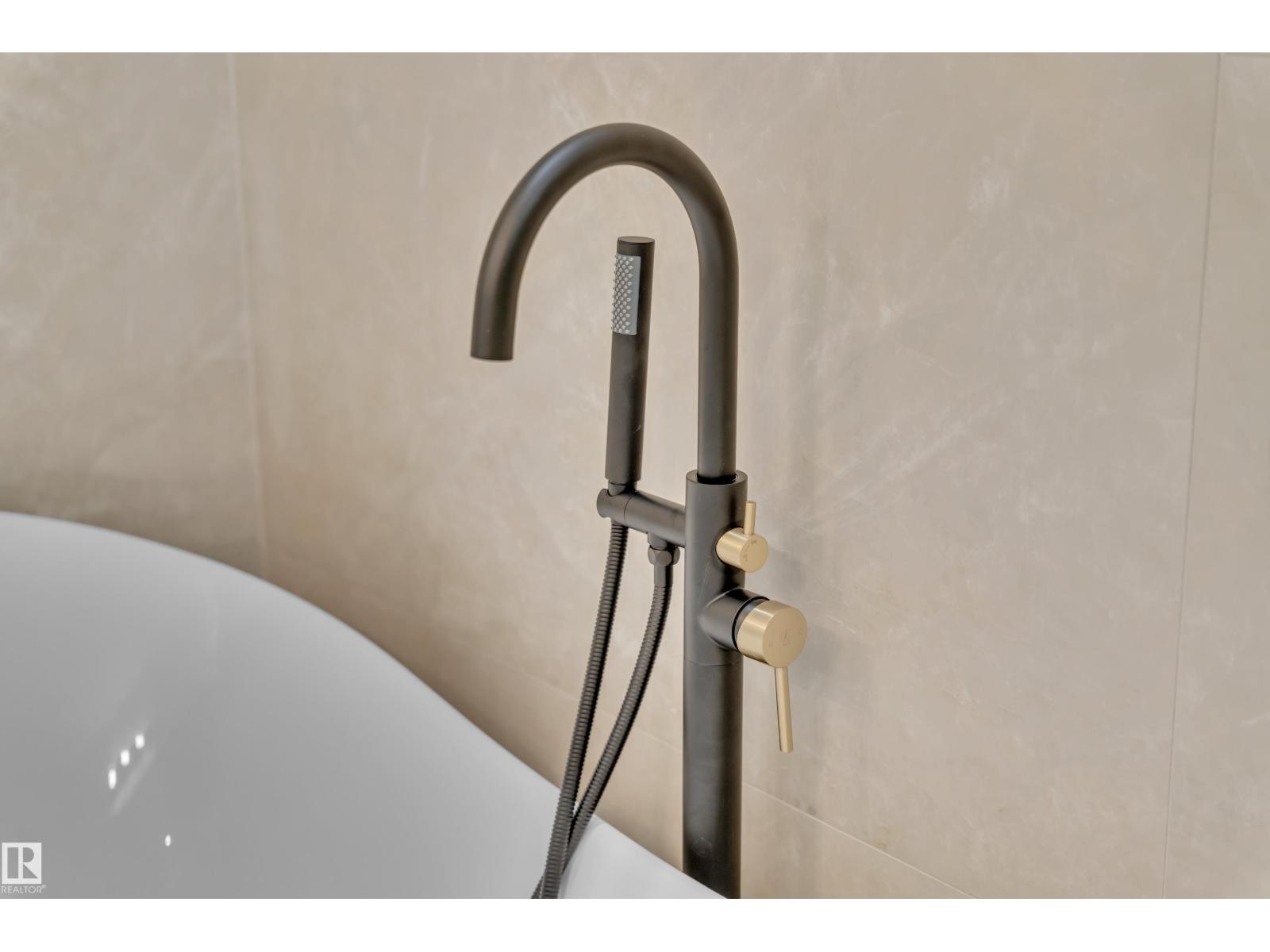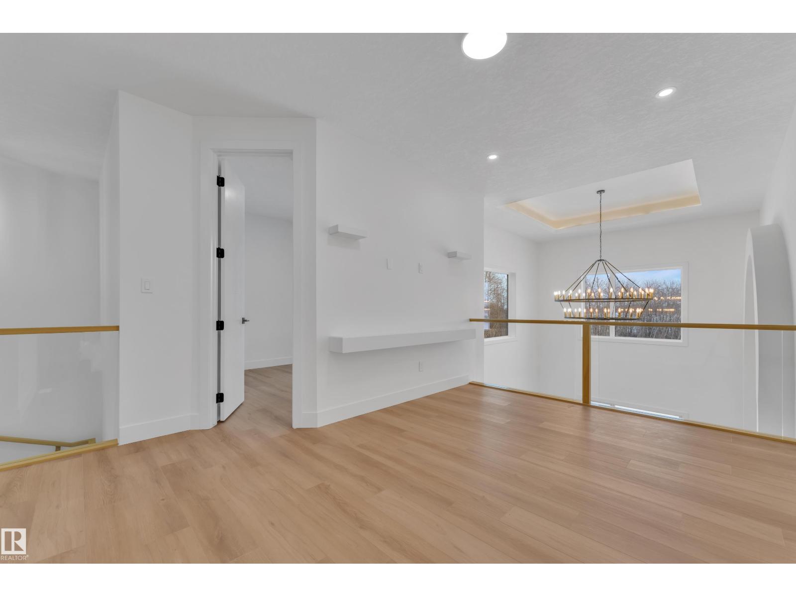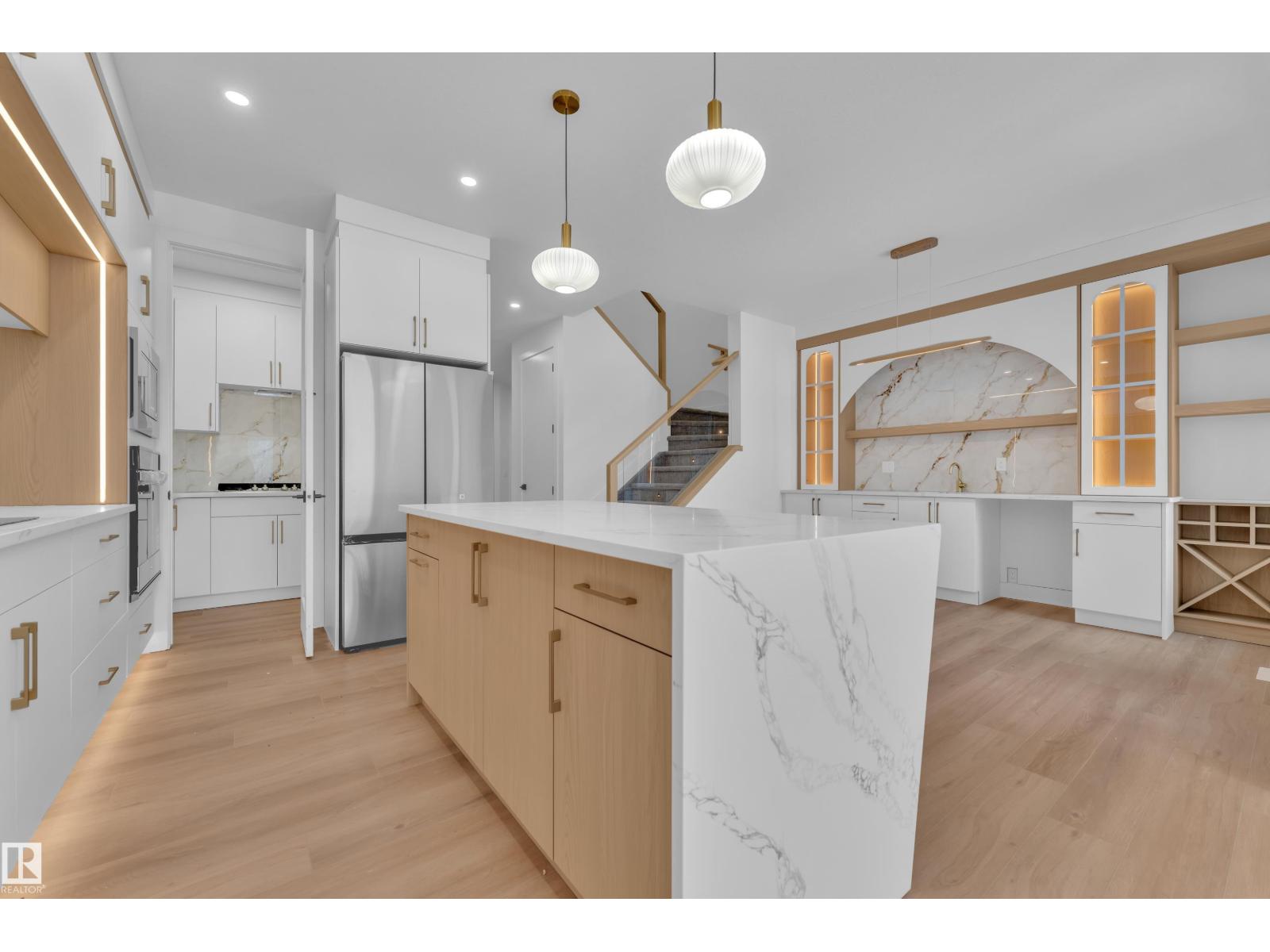 Stunning custom-built home located in the sought-after community of Alces. This beautiful 2 storey home features an open-concept layout with modern finishings throughout. The main floor offers a FULL BED/DEN and a 3 PC bathroom, along with an elegantly finished MODULAR KITCHEN with APPLIANCES , a separate SPICE KITCHEN, and an EXTENDED KITCHEN in the dining area. The OPEN TO BELOW living area features a stunning arc-designed feature wall with a 3-sided fireplace, complemented by large windows that bring in abundant natural sunlight. The second floor features a spacious Master bedroom with a Vaulted Ceiling, feature wall with ambient lighting and a 5PC Ensuite. 2 additional Bedrooms share a common 3-PC bathroom. A conveniently located upstairs Laundry Room and a Bonus Room provide the perfect space for family living and entertainment. The Basement includes 9-ft ceilings, two windows, and a Separate Entrance, offering excellent future development potential. All WINDOW BLINDS are included. (id:63190)