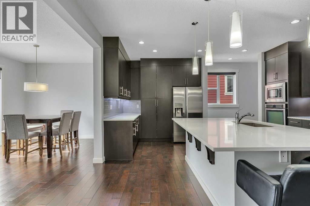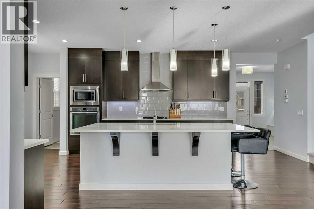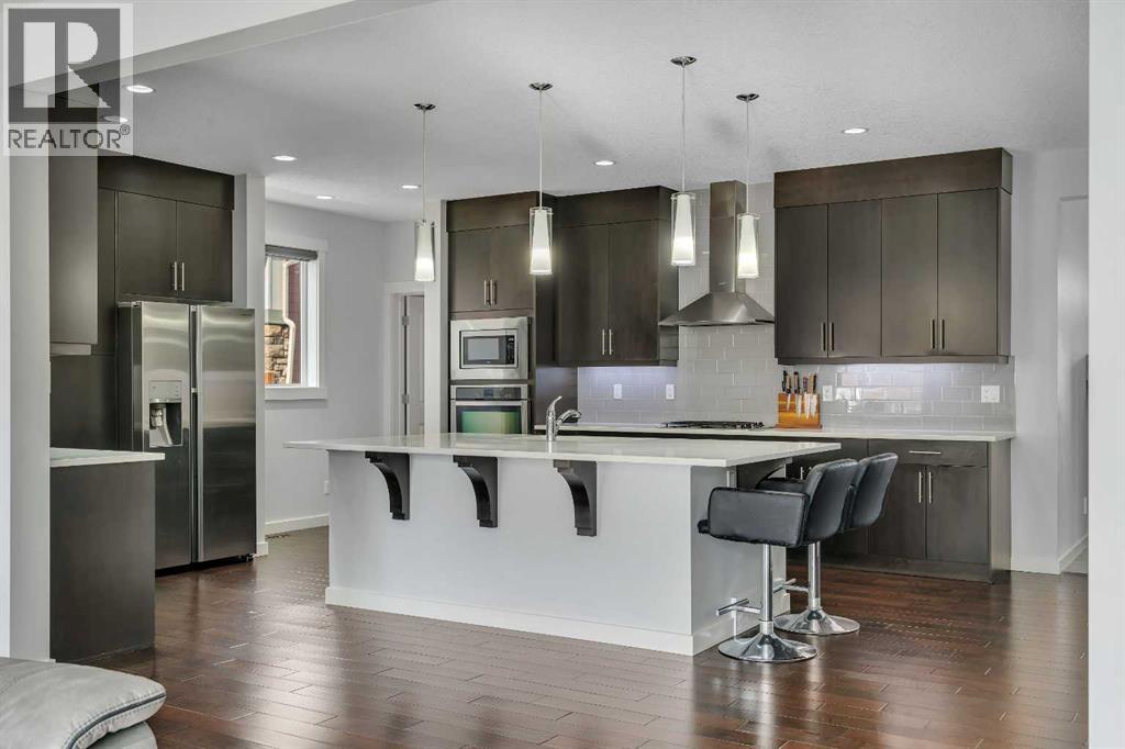 **CHECK OUT THE VIDEO TOUR** Welcome to an EXCEPTIONAL family home where refined design, thoughtful upgrades & an unbeatable location come together to create a truly elevated living experience. Situated on a quiet, family-friendly street in the sought-after community of Westmere in Chestermere, just steps from the shores of Lake Chestermere, this immaculate residence offers over 3,500 sq ft of beautifully developed living space, 5 bedrooms, 3.5 bathrooms, central air conditioning, and a RARE heated quad attached garage. From the moment you step inside, you’ll appreciate the pride of ownership & attention to detail showcased throughout. Rich hardwood floors, high ceilings, and an abundance of NATURAL LIGHT set the stage for the home’s inviting open-concept layout. Designed with both everyday comfort and entertaining in mind, the main floor seamlessly connects the living room, kitchen, and dining area to create a warm and welcoming gathering space. At the heart of the home is a STUNNING chef-inspired custom kitchen, featuring ceiling-height cabinetry, premium stainless steel appliances, and a large centre island with breakfast bar seating — perfect for morning coffee, casual dining, or hosting friends & family. The adjoining dining area overlooks the beautifully landscaped backyard and EXPANSIVE composite deck, creating a seamless transition between indoor and outdoor living. A stylish powder room, spacious mudroom, and welcoming front foyer complete the main level. Upstairs, the home continues to IMPRESS with a thoughtfully designed upper level highlighted by a spacious bonus room — ideal for movie nights, a kids’ retreat, or a home gym. The LUXURIOUS primary retreat offers a private SANTUARY complete with a generous walk-in closet and a beautifully appointed 5-piece ensuite featuring dual vanities, a spa-inspired soaker tub, and an elegant glass shower. Two additional bedrooms and a well-appointed full bathroom provide plenty of space for a growing family. The fully finished basement expands your living space even further, offering an expansive recreation room, two additional bedrooms, and a modern full bathroom — perfect for guests, teenagers, or extended family. Step outside to your SUNNY south-facing backyard, thoughtfully designed for low-maintenance living and effortless entertaining. The MASSIVE composite deck provides the ideal setting for summer barbecues, outdoor dining, or simply relaxing in the sun, while artificial turf ensures a lush green space without the upkeep. A large storage shed adds additional functionality. Car enthusiasts and hobbyists will appreciate the fully insulated and HEATED quad attached garage, complemented by a spacious concrete driveway offering ample additional parking. Located just a short stroll from Lake Chestermere, parks, schools, shopping, and local dining, this exceptional & rare property offers the perfect balance of lifestyle, luxury, and convenience. Book your PRIVATE TOUR TODAY!! (id:63190)