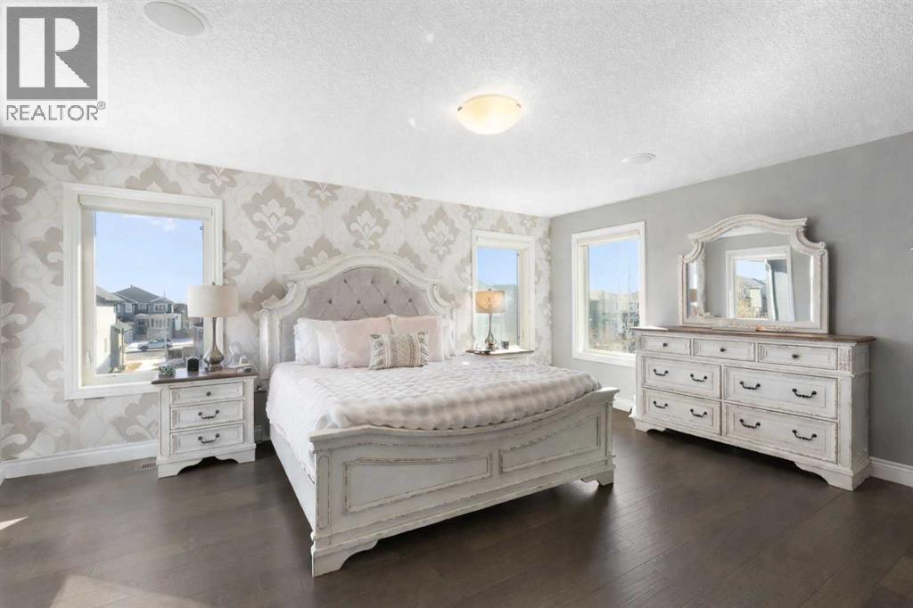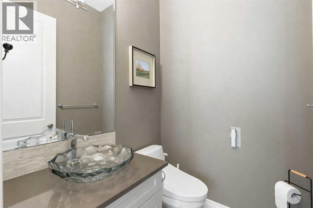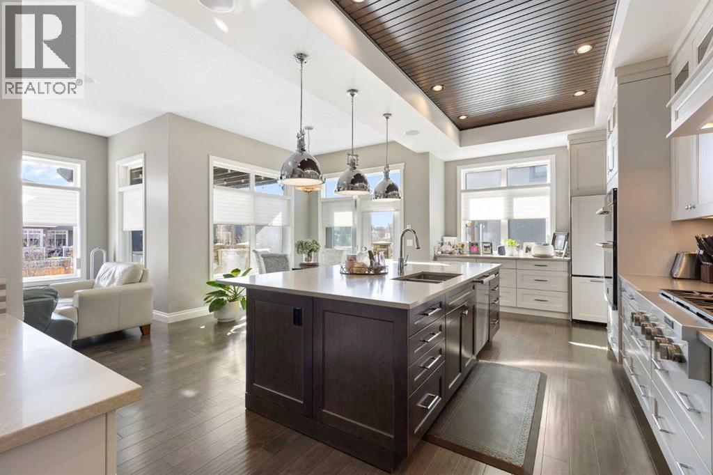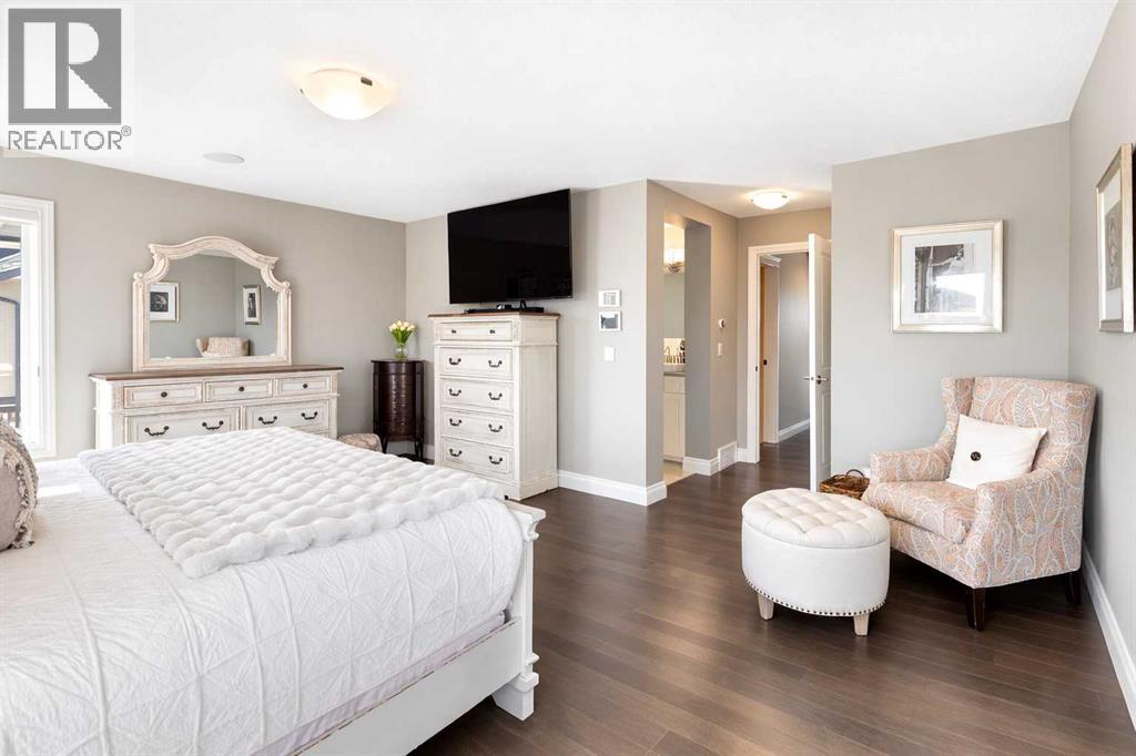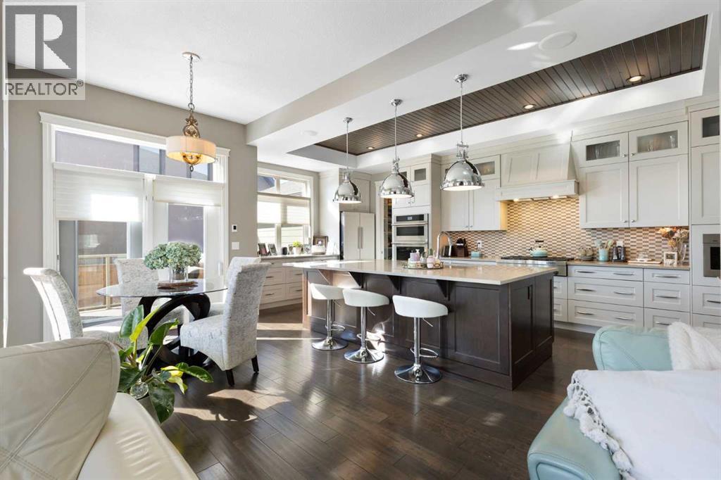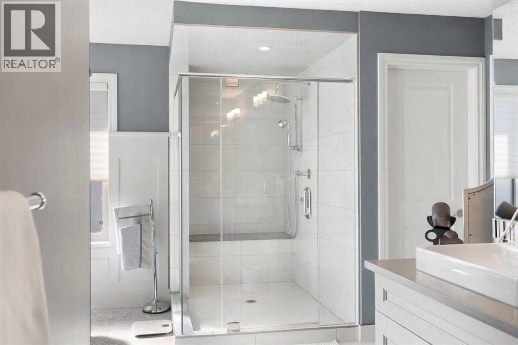Welcome to this exceptional custom-built residence where timeless architecture, elevated craftsmanship, and advanced technology come together to create a truly remarkable home. Offering 4,343 sq ft of developed living space, this property delivers an outstanding blend of luxury, comfort, and thoughtful design. From the moment you arrive, the striking curb appeal sets the tone with rich timber accents and elegant stone detailing. Inside, soaring 10-foot ceilings, expansive windows, and rich hardwood flooring create a bright, open atmosphere filled with natural light. The heart of the home is the stunning chef-inspired kitchen, designed for both entertaining and everyday living. Anchored by an oversized quartz island, this impressive space features extended pantry storage, custom cabinetry, and high-end appliances. The kitchen flows effortlessly into the dining nook and living room, where a gas fireplace creates a warm focal point. Step outside to one of two decks and enjoy seamless indoor-outdoor living. The formal dining room showcases custom coffered ceilings and direct access to the second deck, offering a refined setting for hosting family and guests. A private home office and a stylish powder room featuring a heated bidet complete the main level. Upstairs, 9-foot ceilings and a thoughtfully designed layout provide both comfort and privacy. A spacious bonus room offers the perfect space for relaxing or movie nights. The luxurious primary suite is a true retreat, featuring large windows, a generous walk-in closet, and a spa-inspired ensuite complete with a freestanding soaker tub, dual sinks, oversized walk-in shower, and heated bidet toilet. Two additional bedrooms, a beautifully finished full bathroom with dual sinks and separate shower and toilet space, along with convenient upper-level laundry, complete this floor. The fully developed basement expands the home’s entertaining potential with a large recreation room featuring a second gas fireplace and a custom bar highlighted by a striking stone wine feature wall—perfect for displaying your collection. This level also includes an additional bedroom, a full bathroom, and a hidden secure safe room. Modern comfort is seamlessly integrated throughout with Control4 smart home automation, built-in speakers throughout, fully automated window coverings, and Nest thermostats, allowing effortless control of lighting, sound, climate, security and privacy. The oversized 2.5-car garage features three garage doors (two front and one side) and includes a workshop area, ideal for hobbies or additional storage. Also, set up for two charging stations. Outside, the beautifully landscaped and fully fenced yard offers the perfect balance of relaxation and entertaining. The fence was custom -built with stone corner pillars to match the house. Also complete with underground sprinklers, a custom-built shed, two decks, and a pergola. Upgrades include two furnaces, tankless hot water, and a water softener all 4 years old. (id:63190)