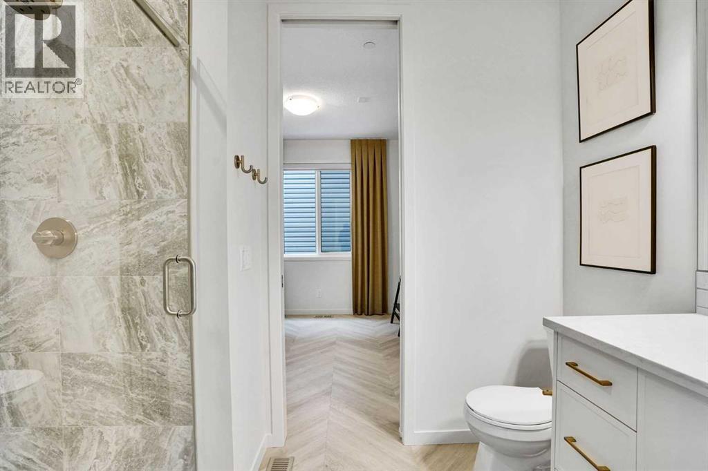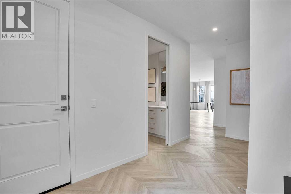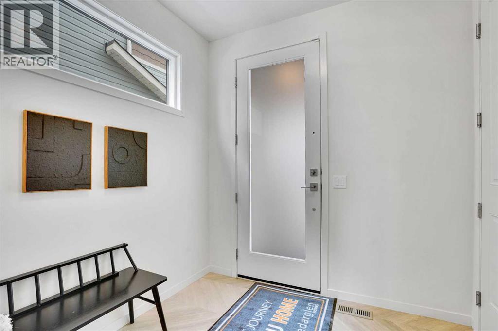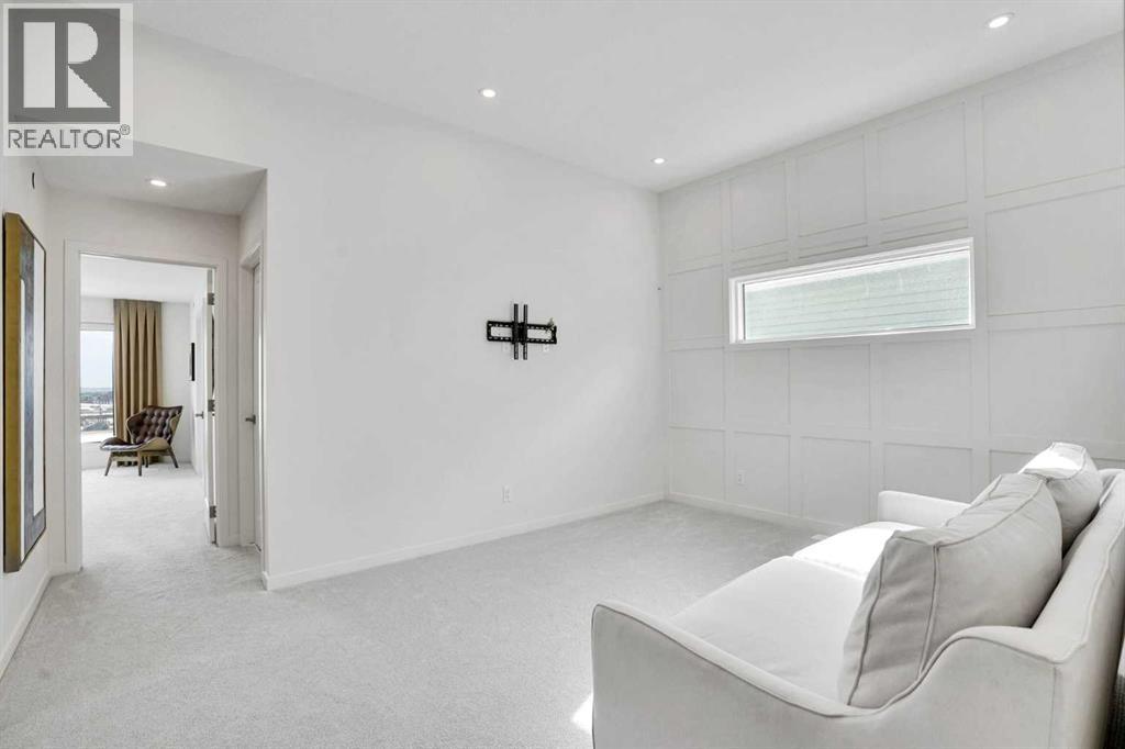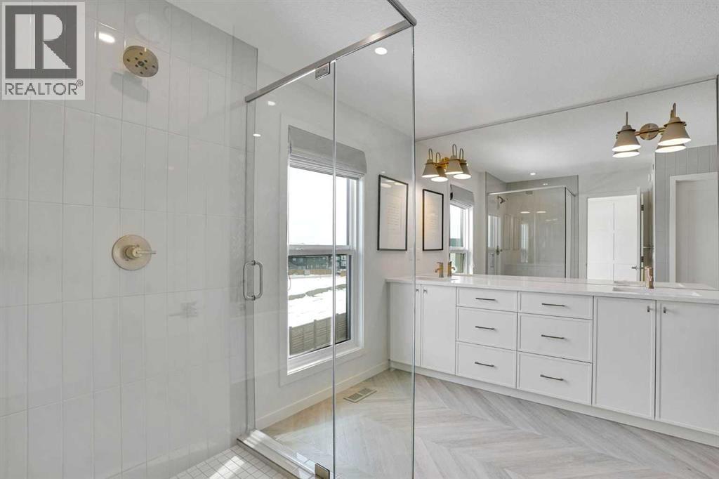 Nestled in the vibrant and family-friendly community of Livingston, this stunning former show home has never been lived in and showcases exceptional craftsmanship, high-end upgrades, and thoughtful design throughout. Step inside to discover a bright open-concept main floor featuring soaring 8’ interior doors, luxury vinyl plank flooring, and elegant finishes that create a warm yet sophisticated atmosphere. Huge windows throughout the open-concept living space bring in an abundance of natural sunlight, creating a bright and welcoming environment. The inviting living room features a beautiful vertical shiplap feature wall with a tiled electric fireplace, blending modern style with cozy comfort. The chef-inspired kitchen is both functional and impressive with quartz countertops, two-tone cabinetry, a large central island, and in addition to the main kitchen, there is a separate spice kitchen that provides extra prep and cooking space. The dining nook opens onto an oversized deck, perfect for summer BBQs, entertaining guests, or relaxing outdoors. A main floor bedroom and full bathroom provide flexibility for guests, a home office, or multi-generational living. Upstairs, the primary retreat offers a spa-inspired ensuite with a custom tiled shower, soaker tub with tile ledges, dual sinks, quartz countertops, and a spacious walk-in closet, while three additional generously sized bedrooms provide plenty of space for family or guests. The upper level also includes a convenient laundry room and a beautiful, cozy bonus room ideal for relaxing or spending time with family. Every detail of this home reflects quality and thoughtful upgrades, including upgraded lighting, designer hardware, and an installed security system. Outside, enjoy the completed oversized deck while taking in the peaceful surroundings of Livingston. Residents also enjoy access to the impressive Livingston Hub, a state-of-the-art facility featuring a skating rink, splash park, gymnasium, tennis courts, and event spaces, along with numerous parks, playgrounds, and pathways throughout the neighbourhood, with convenient access to Stoney Trail and Deerfoot Trail for easy commuting. Move-in ready and never lived in, this exceptional show home offers the perfect combination of designer elegance, everyday functionality, and outstanding value. (id:63190)