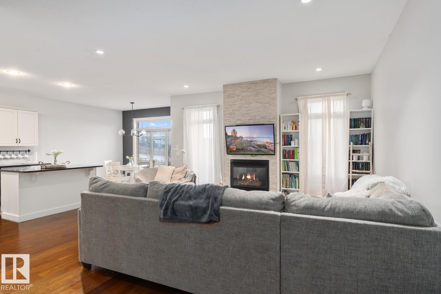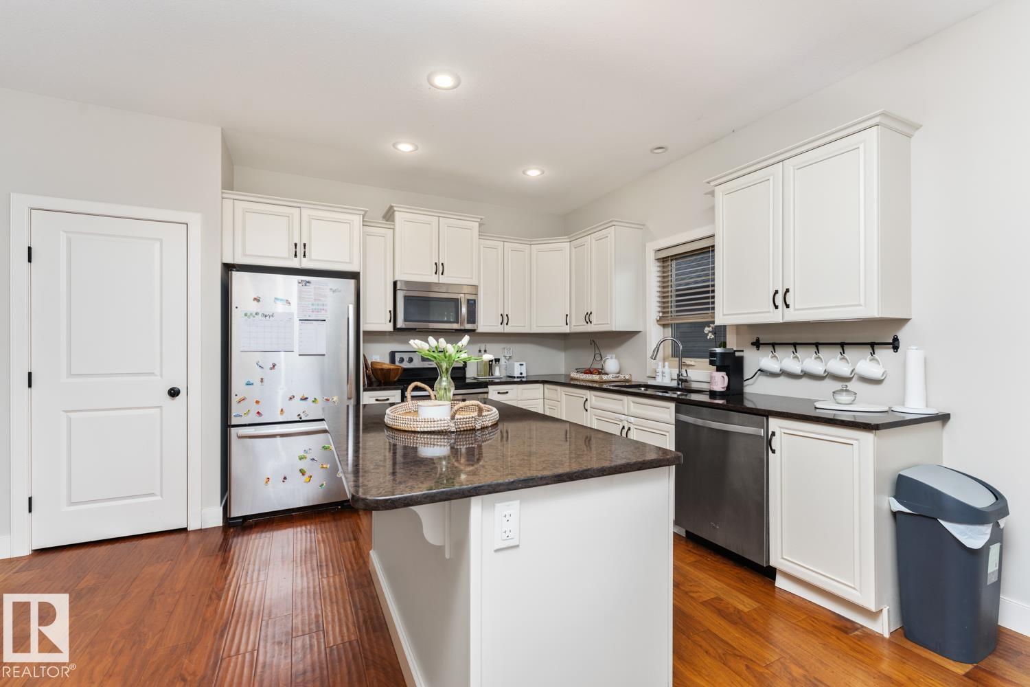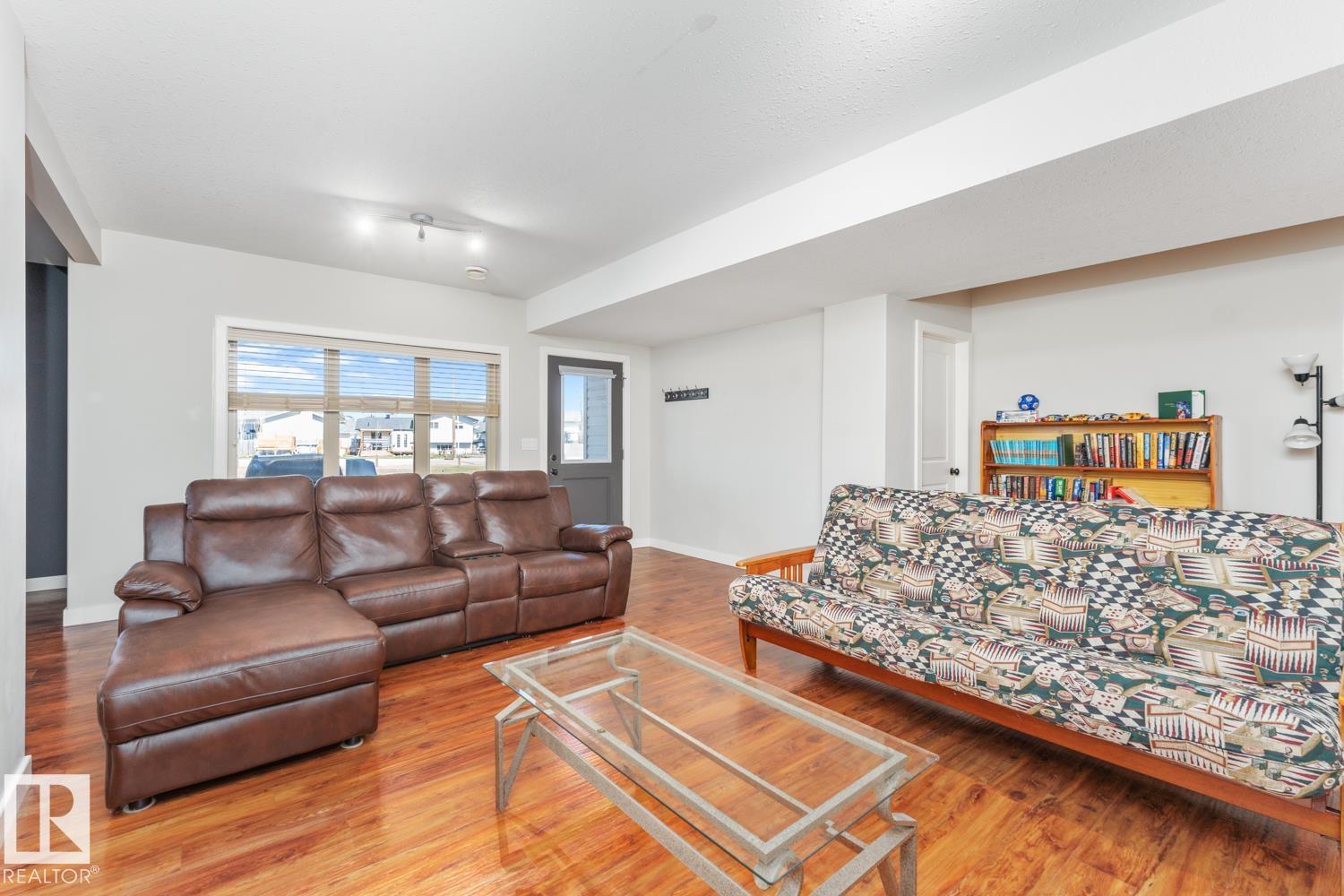 BEAUTIFUL WALKOUT BUNGALOW in Cold Lake North! The upper floor has 2 bedrooms, 2 bathrooms, main floor laundry and full living space including custom kitchen, gas fireplace with slate accent wall, engineered hardwood and direct deck access. The primary has a 3 piece ensuite bathroom. The LOWER level has heated floors with open concept second kitchen, dining & living room space. Modern finishings, eat up middle island, 2 full bedrooms, 4 piece bathroom & in-suite laundry. Big HUGE windows in this space with 9' ceilings and a walkout entry. All appliances included up and down. Located in a cul de sac in a great neighbourhood. (id:63190)