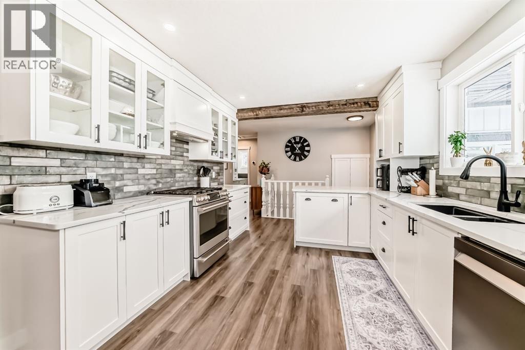 This is a HOUSE 7 MINUTES TO STRATHMORE, PRIVATE AND LOTS OF TREES!! This home has been completely renovated! Driving up you will notice the tasteful metal gates and paved driveway. The outside has new roof, hardy board, vinyl and metal siding as well as deck all within the last 3 to 4 years. The inside has all been redone in the last 3-4 years as well. Walking in you are welcomed by the most amazing entry way with built in coat and boot closets. There is a sink to scrub off before entering your beautiful country home. The kitchen is complete with tasteful cupboards and granite counters, gas stove, stainless appliances and a large dining area for the whole family. the living room has many windows with views and is spacious. There is main floor laundry, a fully updated 4 piece bath for the 2 junior bedrooms. The primary room was reconstructed and has a beautiful walk in shower with sink and toilet as well it will fit a king bed and has a door to your back yard currently a dog run. The lower is fully finished with another bedroom, large flex (family room), massive games room, another modern 4 piece bath, 2 storage rooms and more. This home also has hot water on demand, central air conditioning, a 30x40 shop waiting for your choice of over head door, the floor is newer concrete, insulation is done and most of the boarding. There is also a green house, a chicken coop and more. You will also enjoy your coffee on the east facing front deck. This home is not a mobile home it is a house. (id:63190)