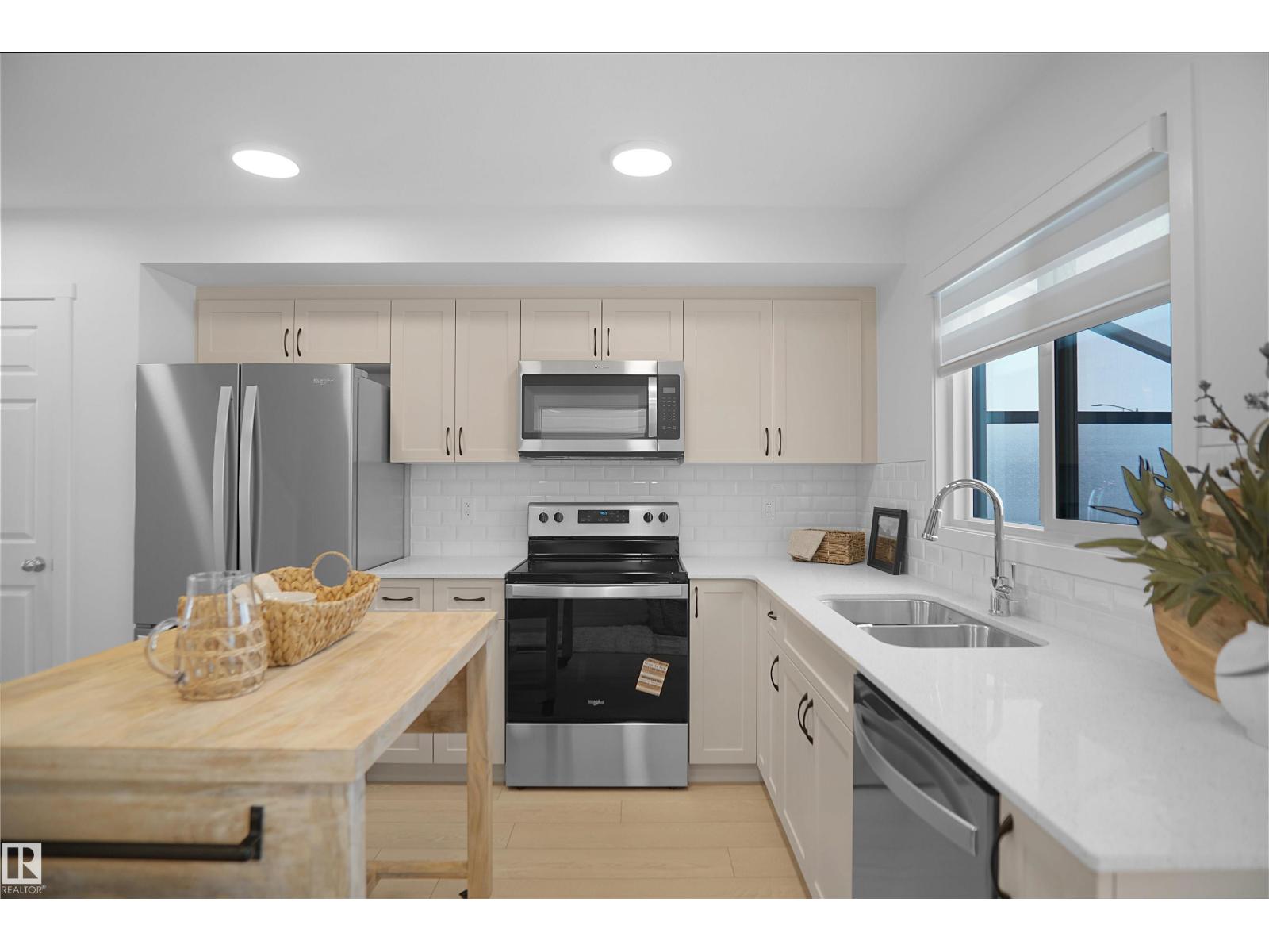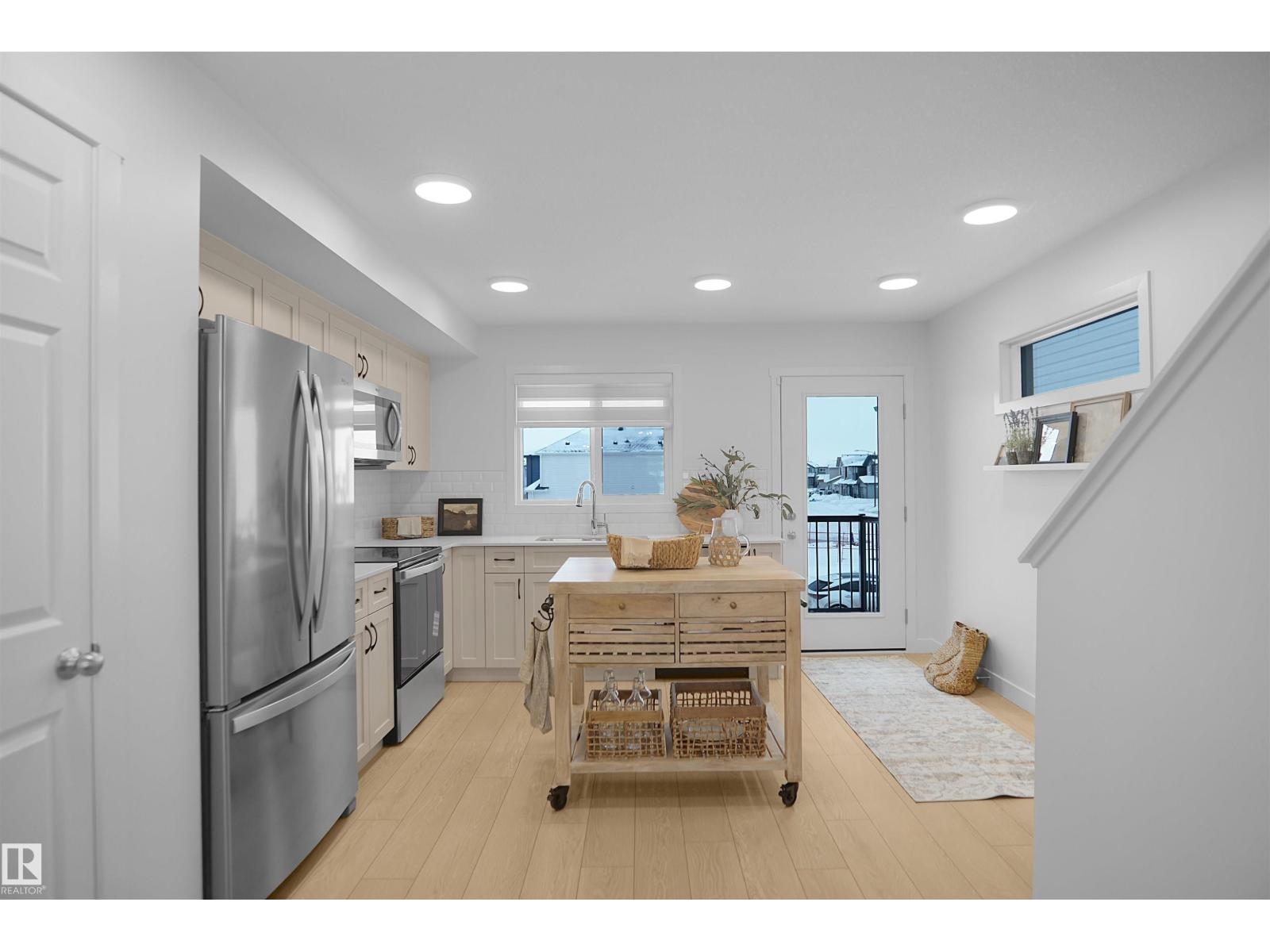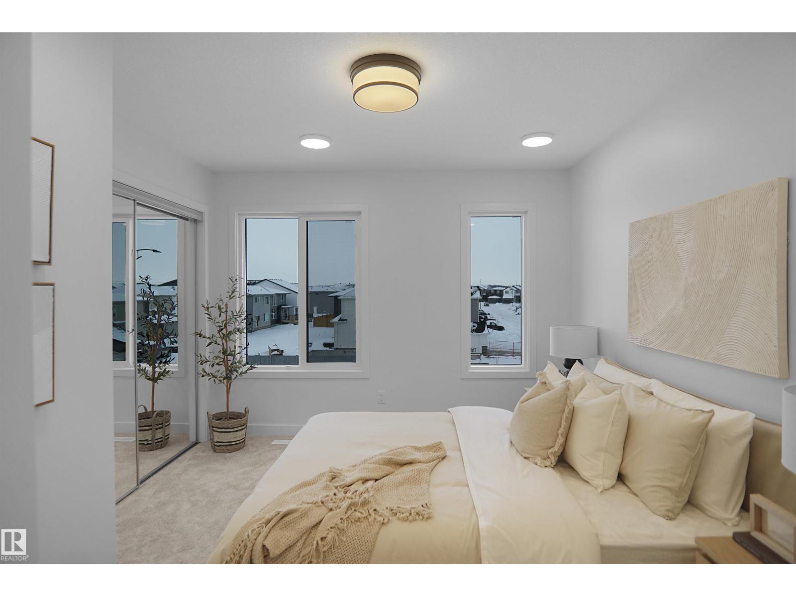 Welcome to this brand new half duplex the “Reimer II” Built by the award winning builder Pacesetter homes and is located in one of Edmonton's nicest north west communities of Trumpeter. With over 1280+ square Feet, this opportunity is perfect for a young family or young couple. Your main floor as you enter has a flex room/ Bedroom that is next to the entrance from the garage with a 3 piece bath. The second level has a beautiful kitchen with upgraded cabinets, upgraded counter tops and a tile back splash with upgraded luxury Vinyl plank flooring throughout the great room. The upper level has 2 bedrooms and 2 bathrooms. This home also comes completed with a single over sized attached garage. *** Photo used are of the show home so colors and finishings may vary, home is under construction and will be complete by end of the month photos will be updated then *** (id:63190)