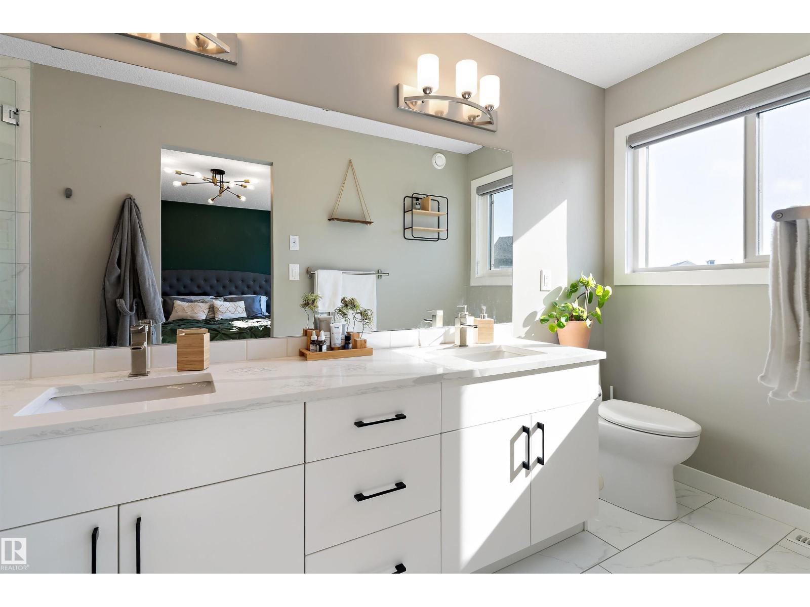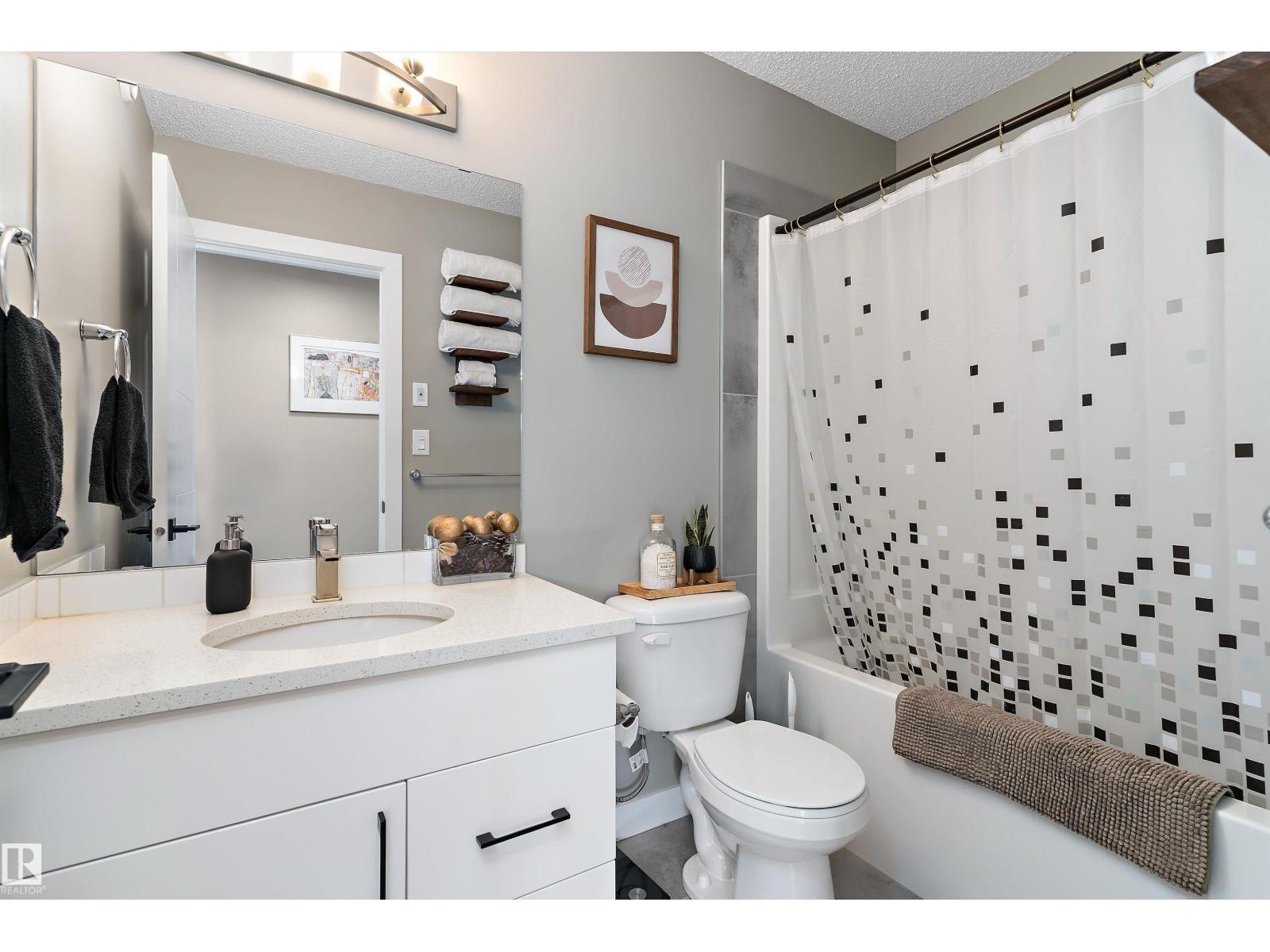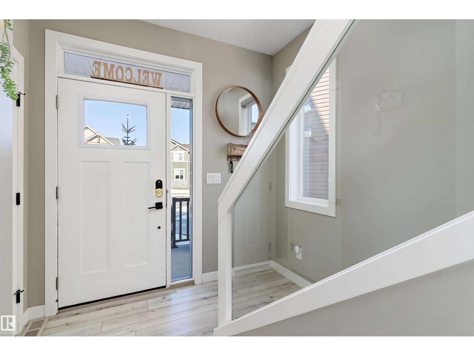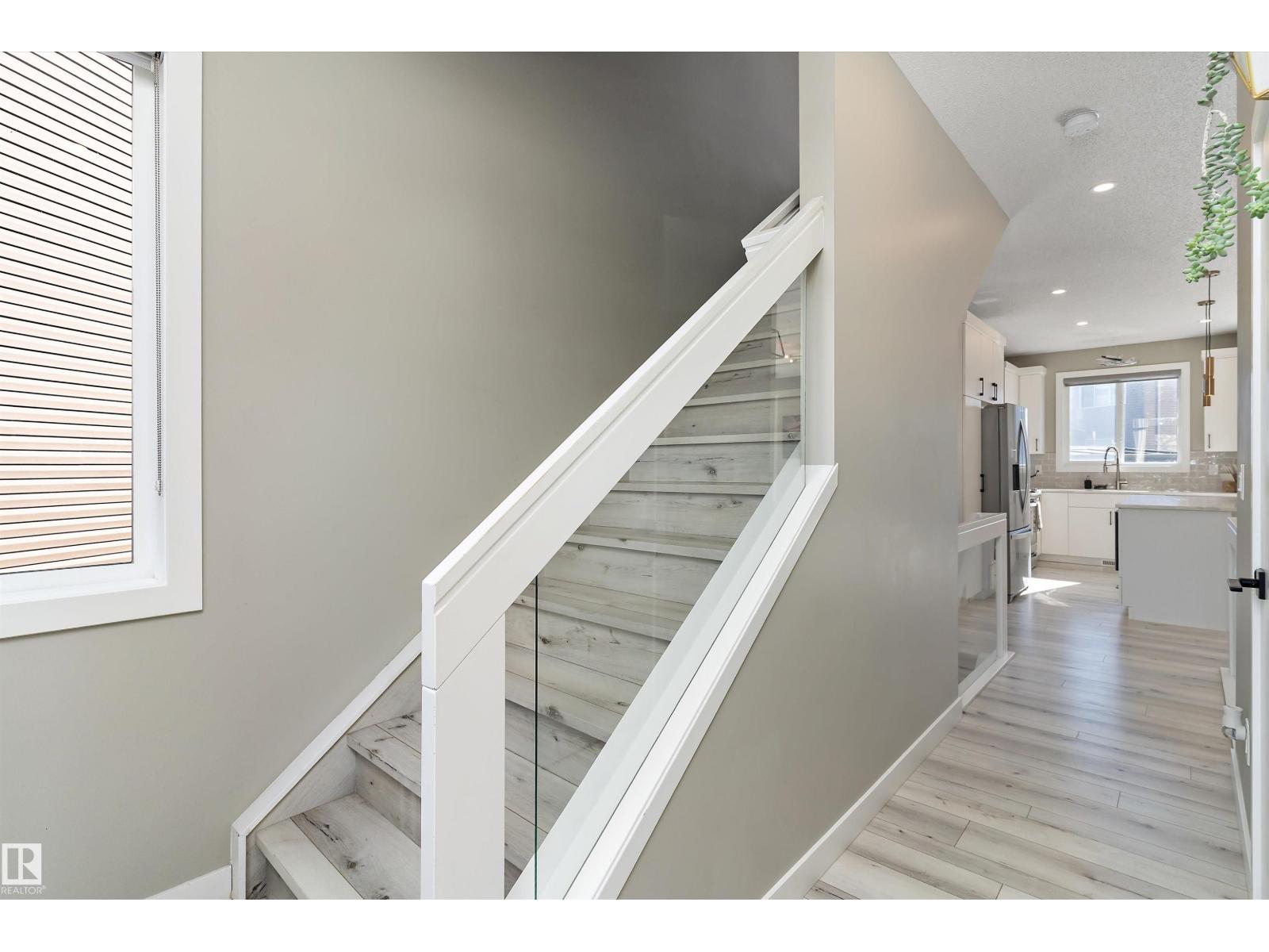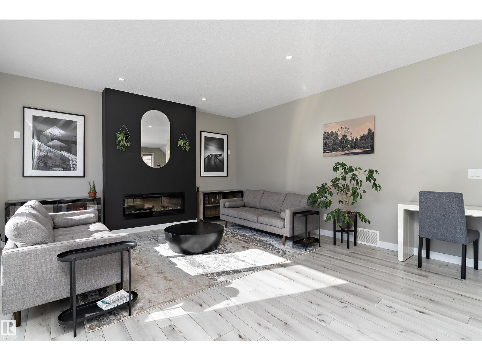 Welcome to this beautifully upgraded home in the family-friendly community of Stillwater! Located on a quiet cul-de-sac and situated on a desirable pie lot, this home offers the feel of a brand-new build with all the post move-in upgrades already complete. The bright, modern main floor features stylish vinyl plank flooring, pot lights, and an open-concept layout filled with natural light. The stunning white kitchen offers upgraded cabinetry, a modern sink, and plenty of space for entertaining, flowing into the dining and living area with a cozy electric fireplace. A convenient half bath and garage access complete the main level. Upstairs you’ll find a spacious bonus room, laundry, a full bath, and 3 bedrooms including a generous primary retreat with a walk-in closet and a luxurious ensuite featuring a full glass shower with dual shower heads and tile surround. Located just minutes from shopping, amenities, and Anthony Henday access, this move-in-ready home is perfect for families. (id:63190)