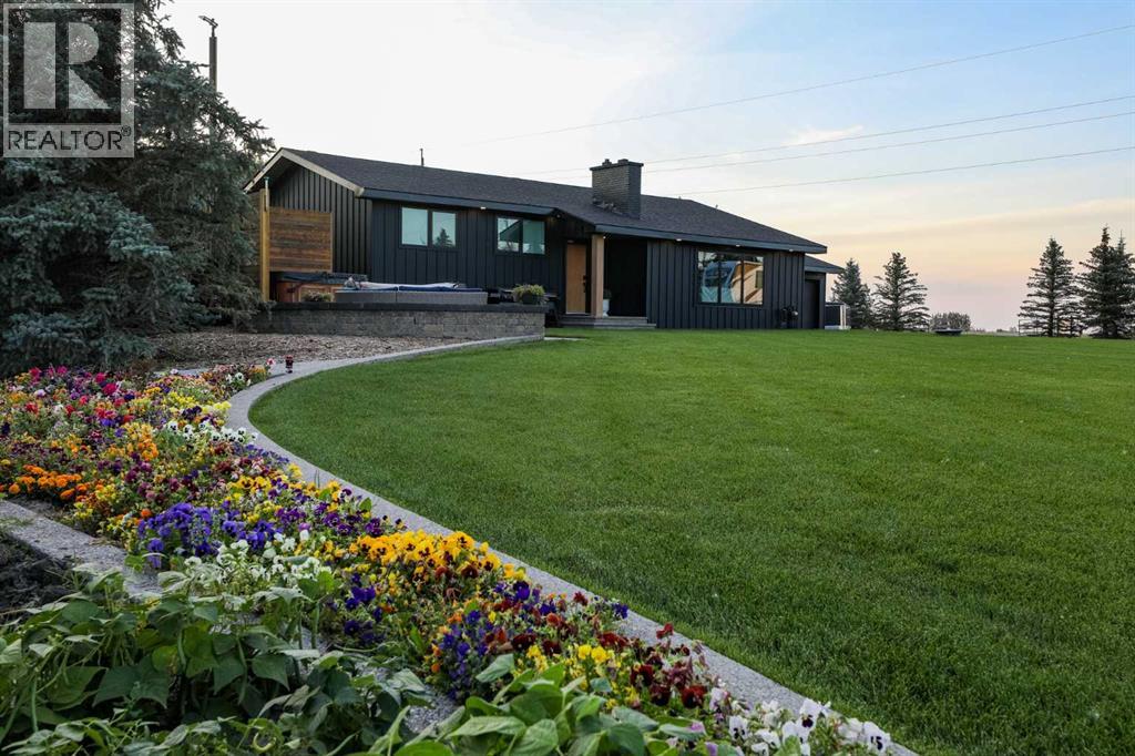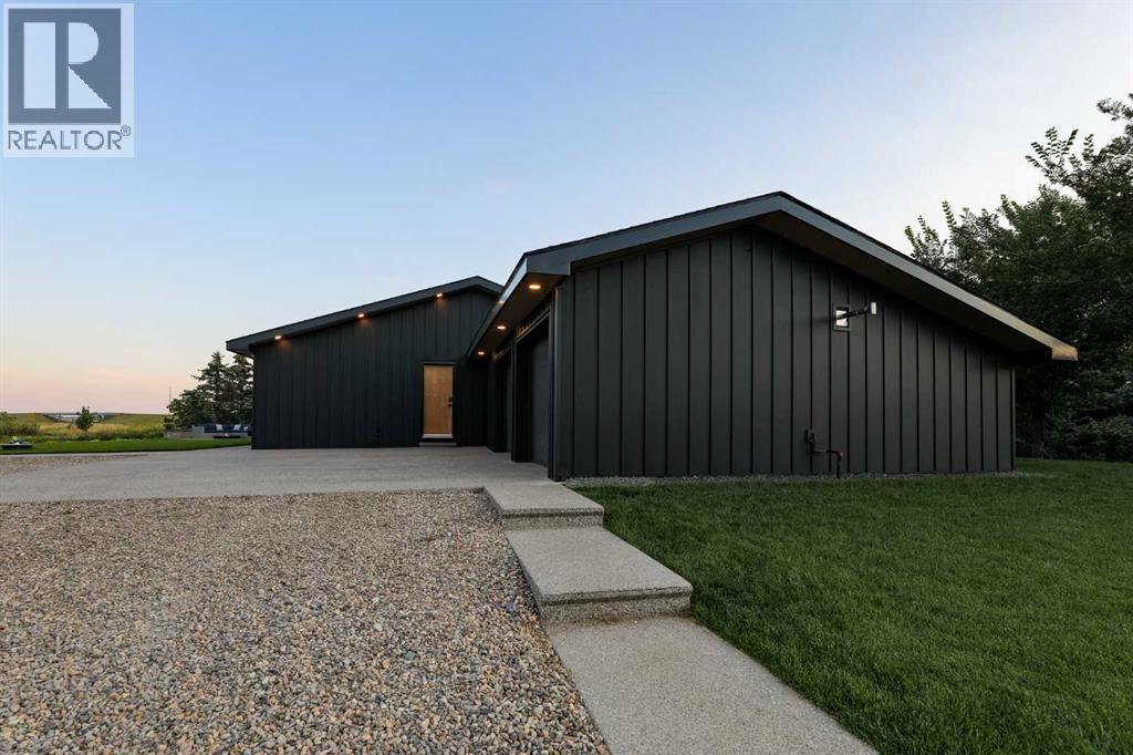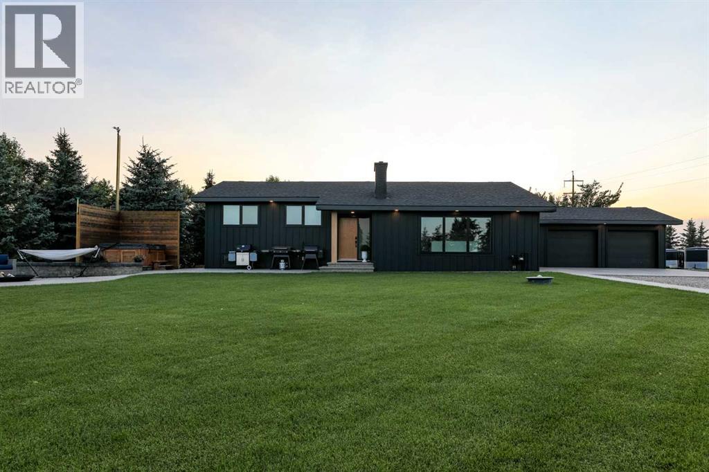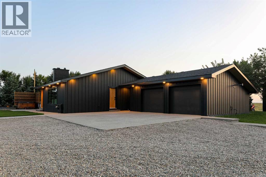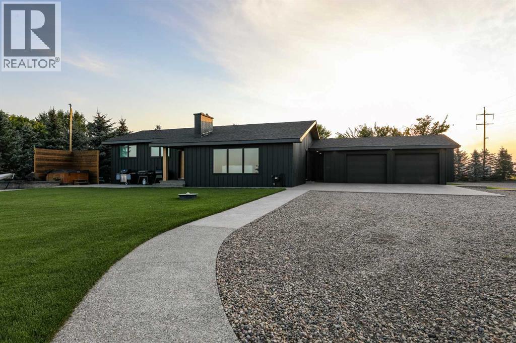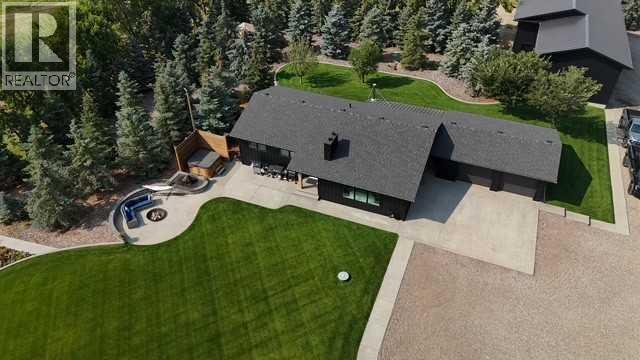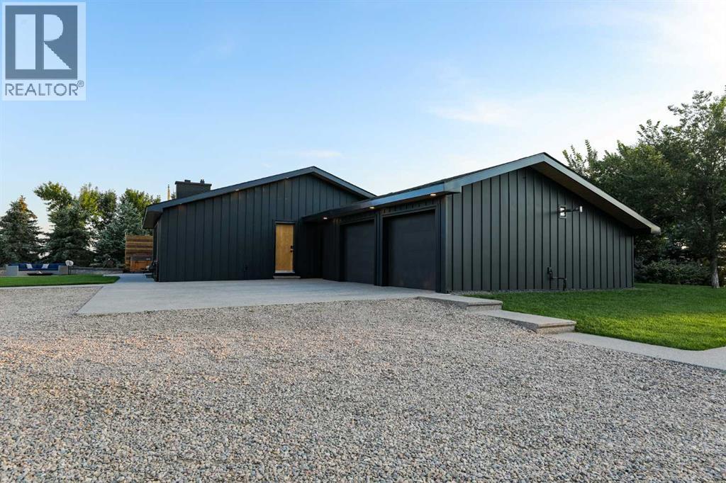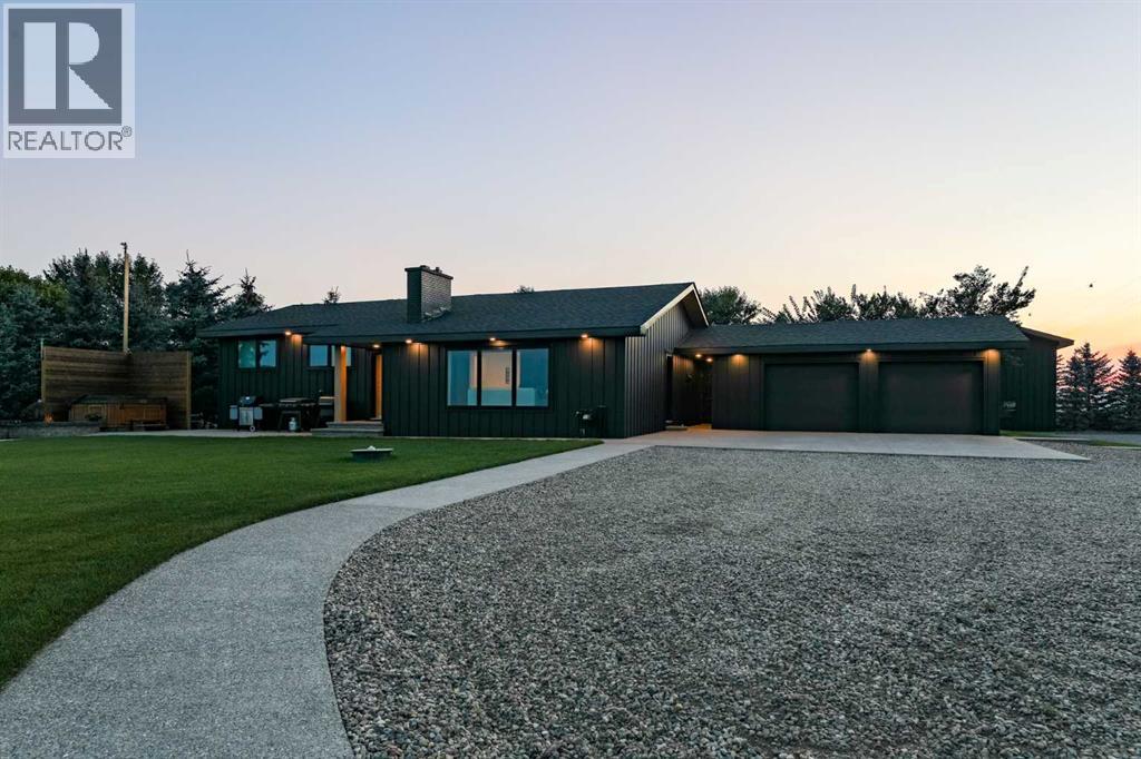 Beautifully renovated bungalow offering over 2,900 sq. ft. of developed living space** with 5 bedrooms and 2.5 bathrooms**, showcasing exceptional upgrades inside and out. This home has been meticulously updated to create a modern, comfortable space that truly feels brand new.The fully renovated interior features fresh paint, new trim, updated windows, and new doors throughout. The bathrooms have been tastefully upgraded, including a custom tile walk-in shower with modern fixtures, adding a touch of luxury to everyday living. Energy efficiency was a priority in the renovation, highlighted by staggered stud walls and new triple-pane windows.The exterior is equally impressive with an elegant board-and-batten finish complemented by light pine soffits, offering both style and low-maintenance durability. Additional upgrades include new eavestroughs, new garage doors, and a roof that is approximately four years old.The heated double attached garage with floor drain comfortably accommodates two full-sized trucks.Major mechanical upgrades provide peace of mind, including:* High-efficiency furnace with humidifier and new ducting* High-efficiency tankless hot water system* Central air conditioning* Thermostat-controlled gas fireplace plus two wood-burning options (fireplace and stove)* All new plumbing, venting, filtration, and water systems* Updated septic systemThe professionally landscaped yard has been designed for both relaxation and entertaining, featuring:* Exposed aggregate patios, curbing, and sidewalks* A beautiful stone firepit area with retaining wall and water feature* Mature trees with mulch beds and newer sod* Fully automated underground irrigation with 2” risers and drip irrigation for trees* A 750,000-gallon trout-stocked dugout* Arctic Spa saltwater hot tubFor those needing space to work, build, or create, the outbuildings add incredible functionality:* Brand new 1,850 sq. ft. shop with drains and a standing seam metal roof — ideal for small business or hobby use* 20' x 30' tarp building on a concrete pad for additional storage* Custom-built chicken coop* Vegetable garden and established flower bedsLocated just minutes from the city and zoned Urban Fringe, this exceptional acreage offers flexibility, privacy, and long-term potential.*A rare opportunity to enjoy acreage living with modern upgrades and incredible amenities, call your REALTOR® today to book your private showing. (id:63190)
