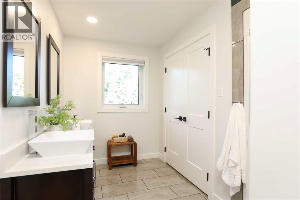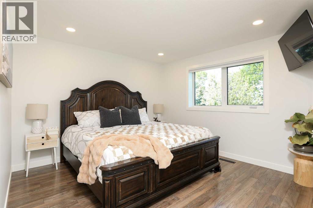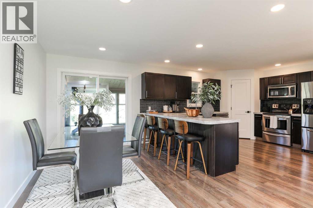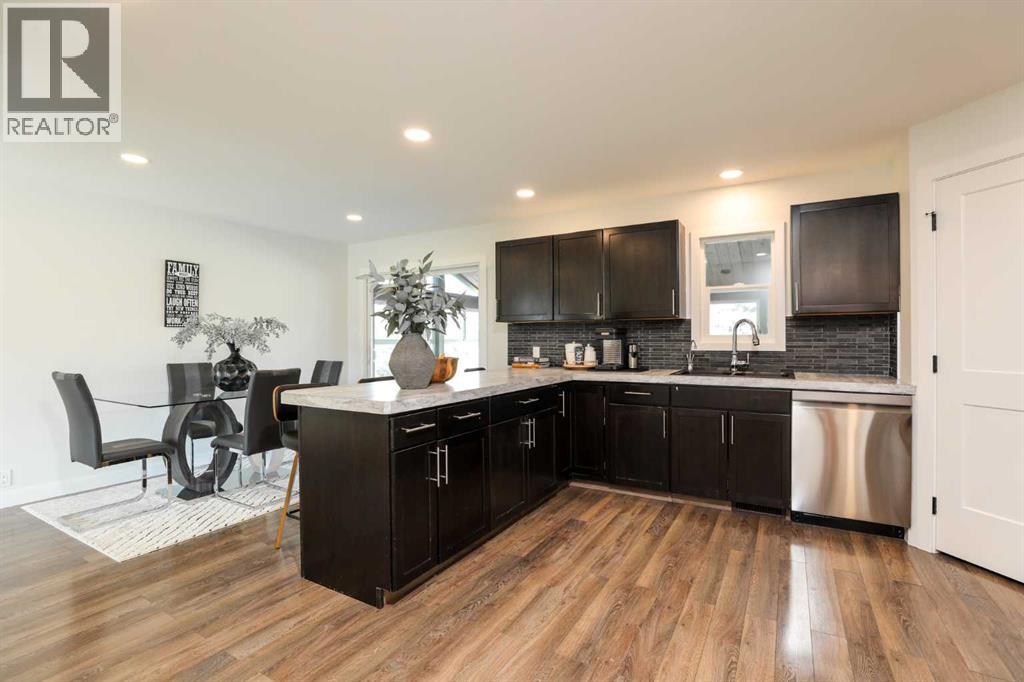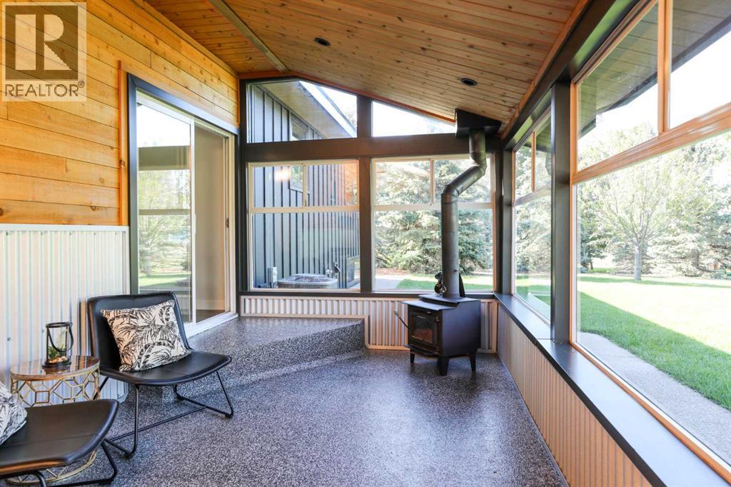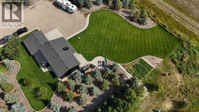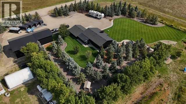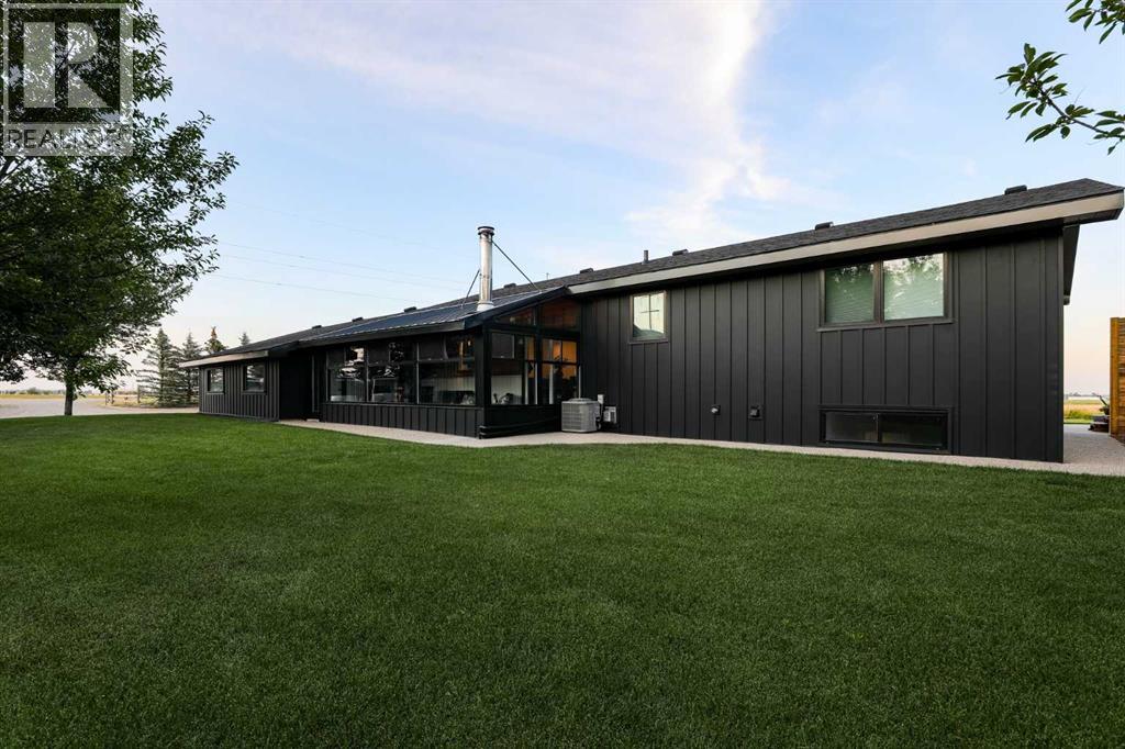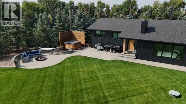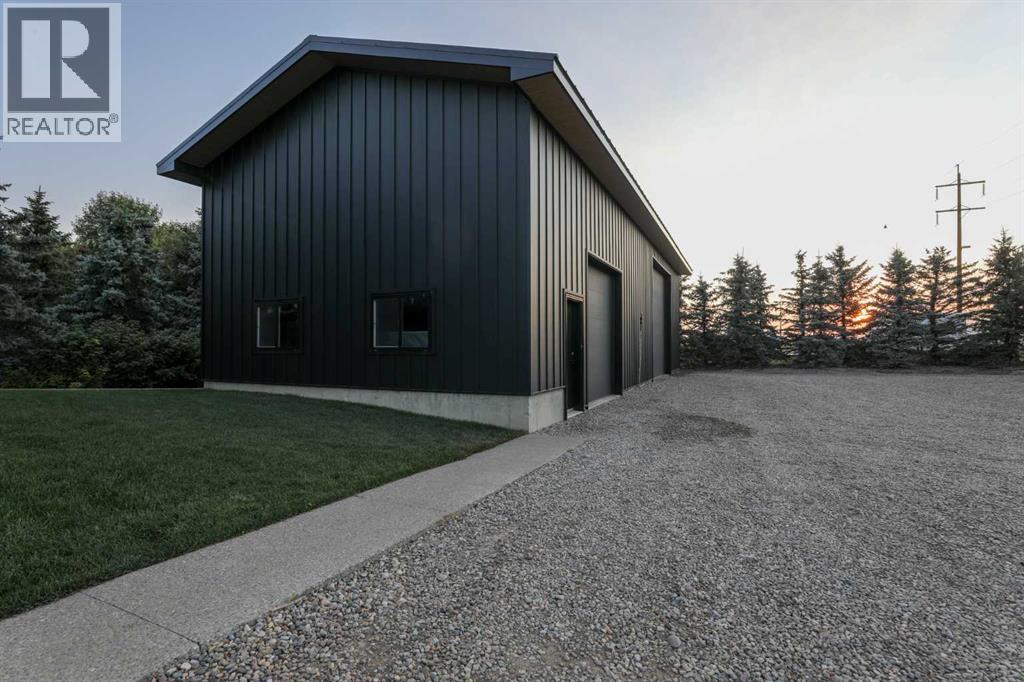Beautifully renovated bungalow offering over 2,900 sq. ft. of developed living space** with 5 bedrooms and 2.5 bathrooms**, showcasing exceptional upgrades inside and out. This home has been meticulously updated to create a modern, comfortable space that truly feels brand new.The fully renovated interior features fresh paint, new trim, updated windows, and new doors throughout. The bathrooms have been tastefully upgraded, including a custom tile walk-in shower with modern fixtures, adding a touch of luxury to everyday living. Energy efficiency was a priority in the renovation, highlighted by staggered stud walls and new triple-pane windows.The exterior is equally impressive with an elegant board-and-batten finish complemented by light pine soffits, offering both style and low-maintenance durability. Additional upgrades include new eavestroughs, new garage doors, and a roof that is approximately four years old.The heated double attached garage with floor drain comfortably accommodates two full-sized trucks.Major mechanical upgrades provide peace of mind, including:* High-efficiency furnace with humidifier and new ducting* High-efficiency tankless hot water system* Central air conditioning* Thermostat-controlled gas fireplace plus two wood-burning options (fireplace and stove)* All new plumbing, venting, filtration, and water systems* Updated septic systemThe professionally landscaped yard has been designed for both relaxation and entertaining, featuring:* Exposed aggregate patios, curbing, and sidewalks* A beautiful stone firepit area with retaining wall and water feature* Mature trees with mulch beds and newer sod* Fully automated underground irrigation with 2” risers and drip irrigation for trees* A 750,000-gallon trout-stocked dugout* Arctic Spa saltwater hot tubFor those needing space to work, build, or create, the outbuildings add incredible functionality:* Brand new 1,850 sq. ft. shop with drains and a standing seam metal roof — ideal for small business or hobby use* 20' x 30' tarp building on a concrete pad for additional storage* Custom-built chicken coop* Vegetable garden and established flower bedsLocated just minutes from the city and zoned Urban Fringe, this exceptional acreage offers flexibility, privacy, and long-term potential.*A rare opportunity to enjoy acreage living with modern upgrades and incredible amenities, call your REALTOR® today to book your private showing. (id:63190)