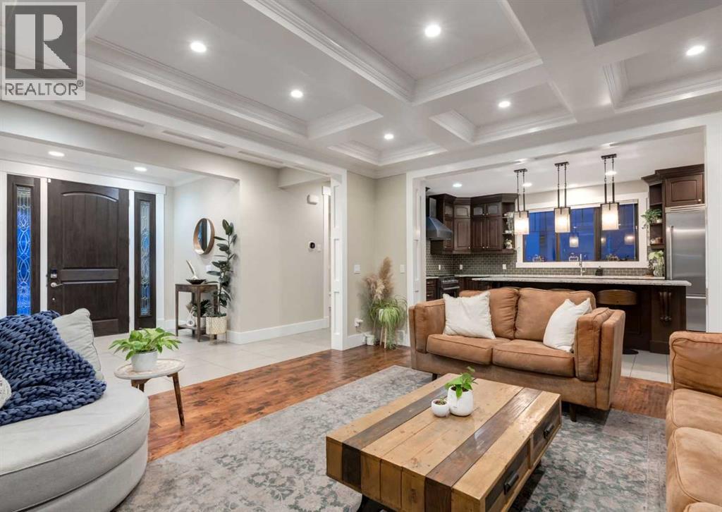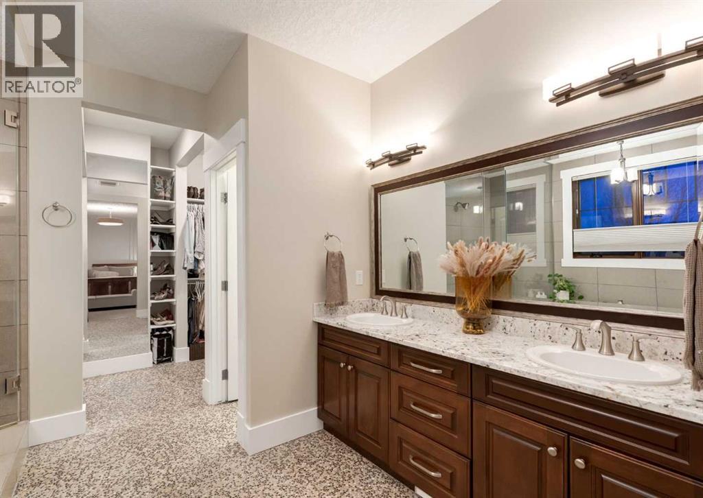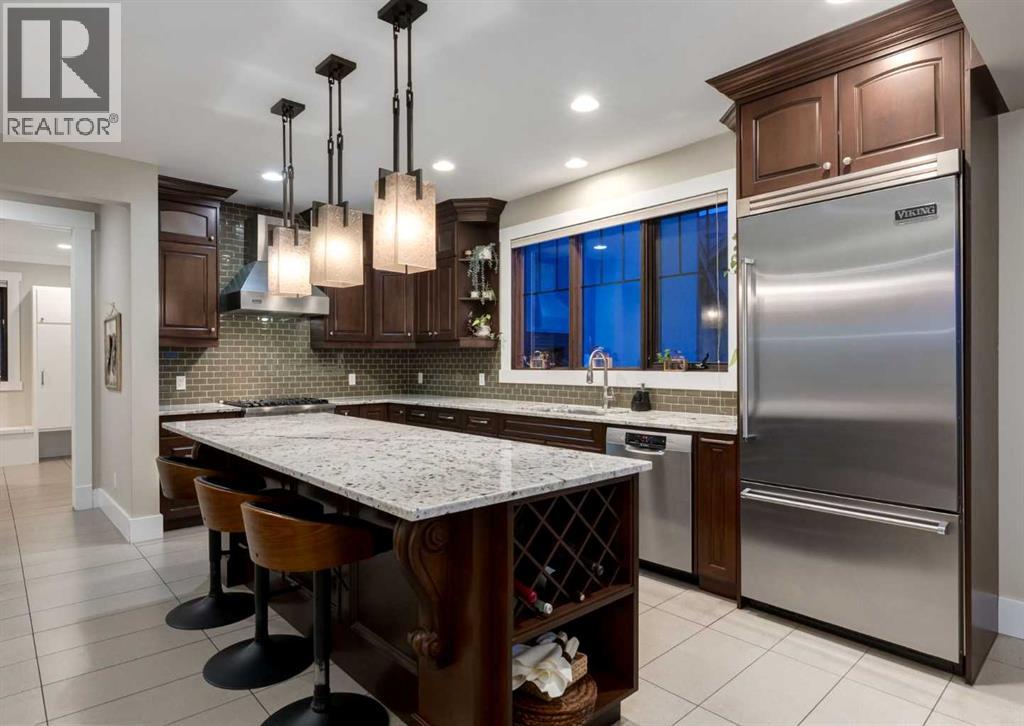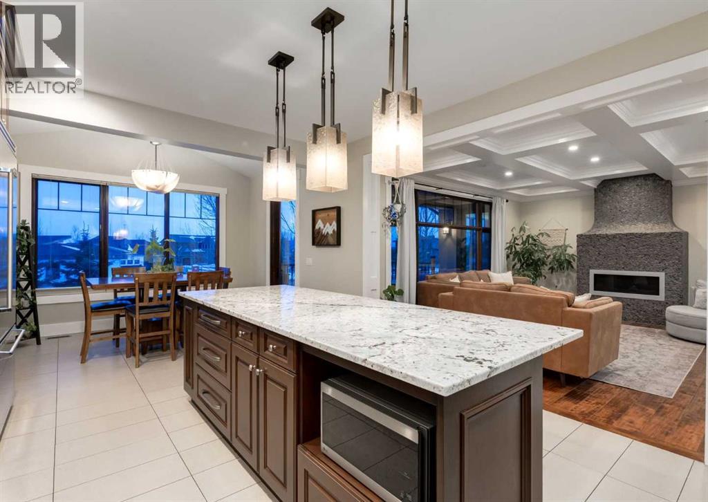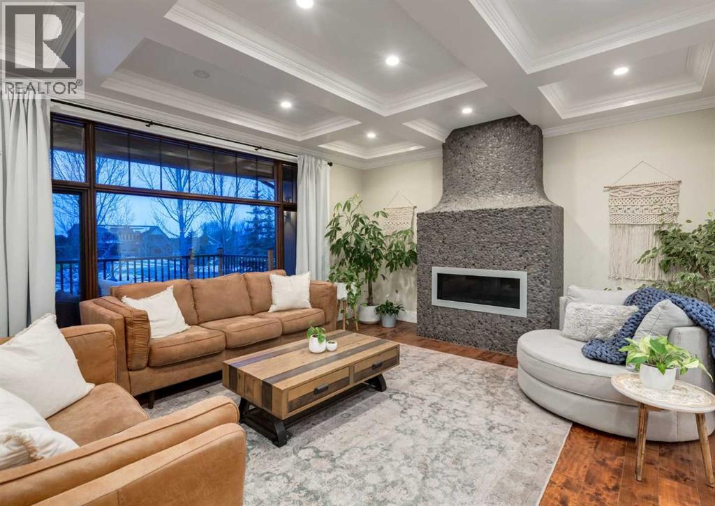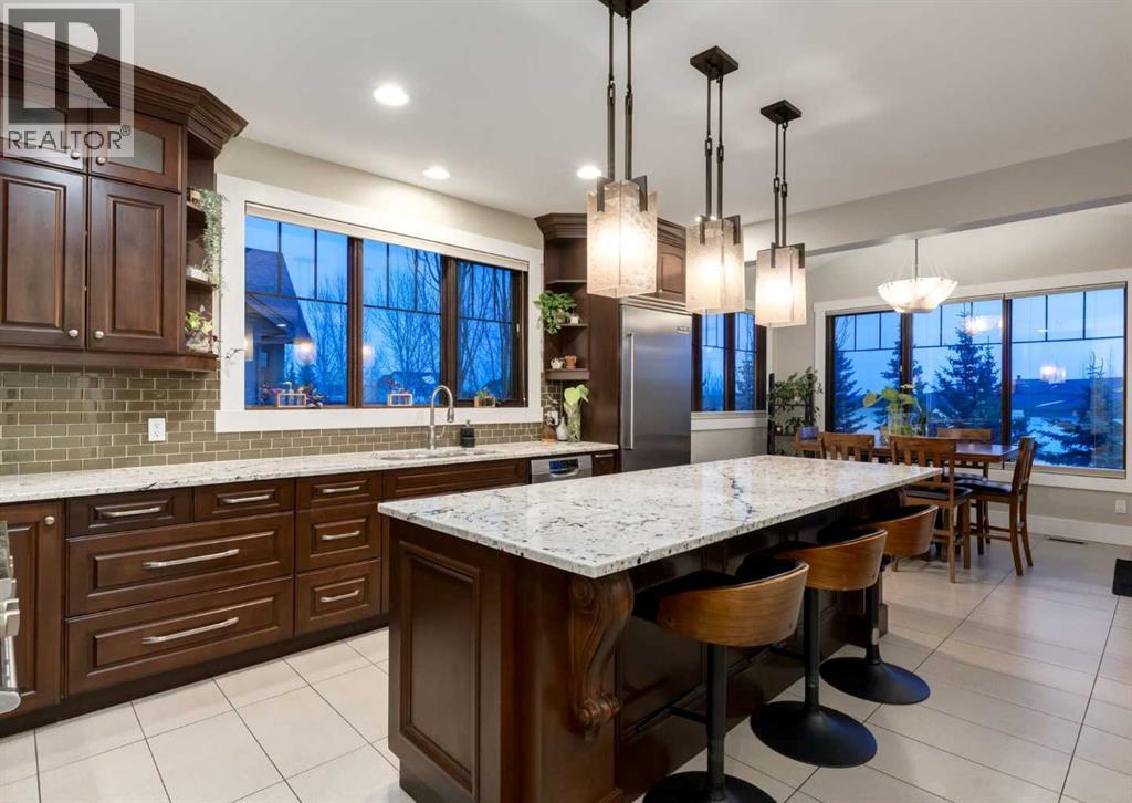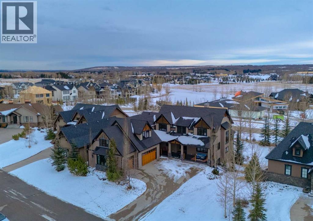 WELCOME TO 130 OCTOBER GOLD WAY ...Estate living unfolds across more than 5,475 sq ft of beautifully developed space on a .36 acre lot backing directly onto in prestigious Elbow Valley West. Timeless architecture, a welcoming front veranda and a heated OVERSIZED QUAD garage create a striking first impression while the surrounding natural landscape establishes privacy and a peaceful setting. Grand 9’ ceilings and an open floor plan define the main level where oversized windows stream natural light throughout the interior. Coffered ceilings elevate the living room while a dramatic stone encased fireplace forms a warm focal point designed for relaxed evenings and comfortable gatherings. Culinary creativity is inspired in the chef’s dream kitchen showcasing granite countertops, full height cabinetry, a Viking gas range and an oversized centre island that naturally becomes the hub for conversation and casual meals. Windows wrap the breakfast nook and frame views of the greenspace beyond while providing direct access to the upper deck for effortless indoor and outdoor living. Elegant dinners and celebrations find their place in the formal dining room where tray ceilings, designer lighting and corner windows enhance the atmosphere. Organization is simplified by a mudroom with built in storage while a fully enclosed den with wainscotting, built ins and corner windows establishes a refined home office. Upper level spaces continue the thoughtful design with a comfortable loft for reading or relaxing and a large bonus room that adapts easily for media, study or play. Rest and recharge within the private primary retreat where a two-sided fireplace brings warmth to both the bedroom and the spa inspired ensuite while soaking in the deep tub. Dual sinks, an oversized shower and a custom walk in closet support daily comfort. Two additional bedrooms each include built in desk areas and walk in closets while sharing a 5-piece Jack and Jill ensuite. Laundry is also conveniently locate d on this level. The fully finished walkout basement expands the living space with a generous recreation area centred around a full height stone fireplace with built ins creating an inviting setting for movies and games. Entertaining is effortless thanks to a wet bar while a versatile flex room offers space for hobbies, fitness or creative pursuits. Two additional bedrooms and a 3 piece bathroom provide excellent accommodation for family or guests. Outdoor living continues with an upper deck overlooking the green space and a covered patio below that extends the usable space into every season. Pathways, parks and a nearby pickleball court support an active lifestyle while proximity to several premier golf courses, Aspen amenities and Bragg Creek delivers exceptional convenience within an extraordinary natural setting. Estate scale, refined finishes and an extraordinary natural backdrop combine to deliver a private retreat just minutes from Calgary. (id:63190)