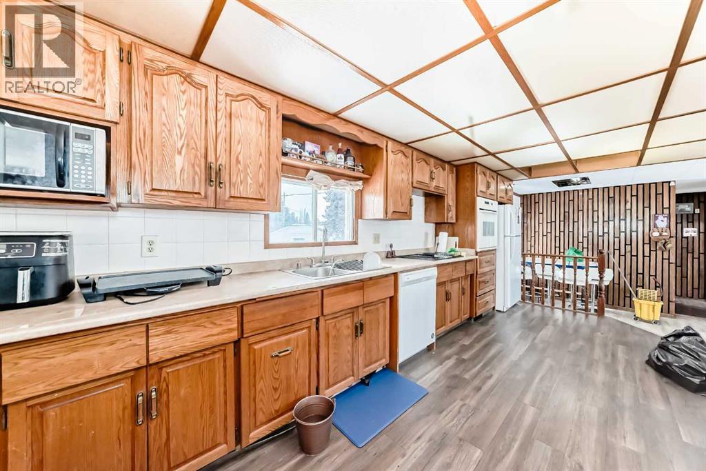 Spacious double lot with huge Bungalow featuring an incredible amount of living space and flexibility. It is ideal for large families or those looking for a great revenue property. With a thoughtful layout and generous square footage on both levels, this home provides comfort, function, and versatility. The upper level features a spacious primary bedroom along with two additional bedrooms. Two convenient bathrooms serve this level, while the bright living room provides a welcoming space to relax or entertain. The kitchen offers plenty of workspace and cabinetry and flows nicely into the dining area, creating a practical setting for everyday meals and gatherings. The lower level expands the possibilities even further with its own full living area. This level includes a second kitchen and dining space, a comfortable living room, and a large flex area that could be used as a recreation room, home office, gym, or additional family space depending on your needs. Two more bedrooms are located on this level, along with both a 3-piece bathroom with laundry and a 4-piece bathroom with laundry, adding convenience and functionality. Recent updates add further value and peace of mind, including a durable metal roof installed in 2025, a hot water tank replaced within the past three years, freshly painted lower-level living areas in 2025, and a recently upgraded bathroom on the lower level. With its unique layout, abundant square footage, and numerous updates, this property presents a rare opportunity to own a spacious home that offers exceptional flexibility for a variety of living arrangements. (id:63190)