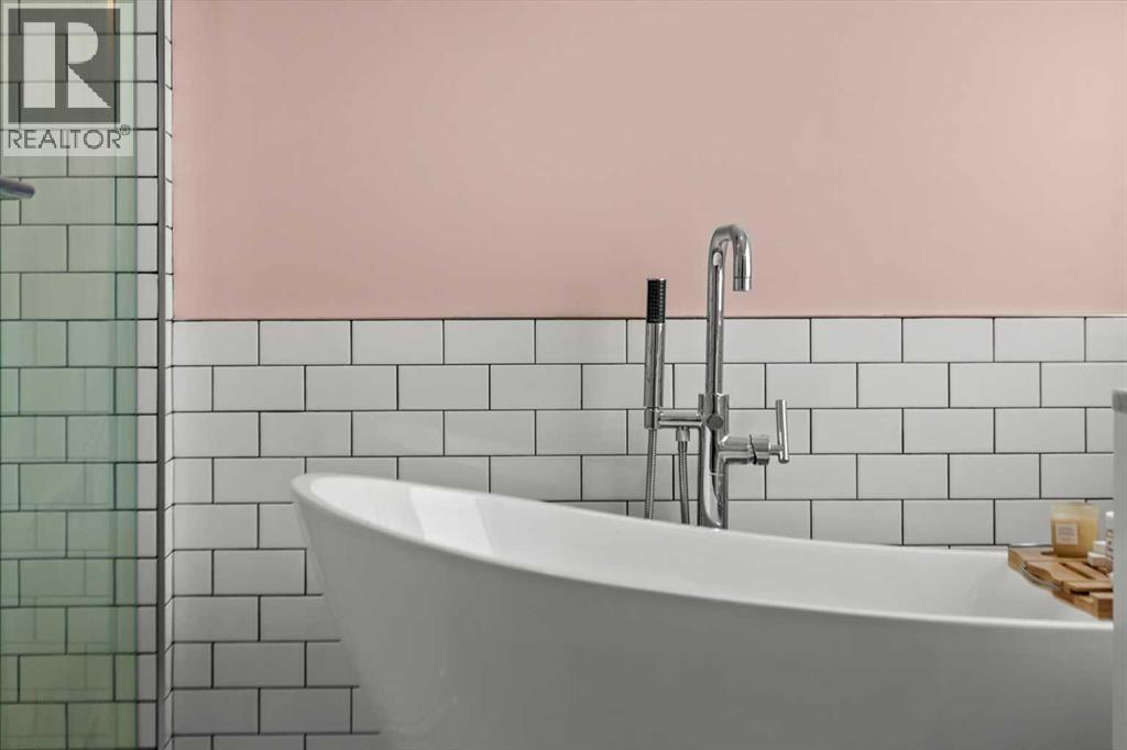 The spacious ensuite blends style and function with a double vanity, freestanding soaker tub, and glass walk-in shower, all finished with timeless tile and modern fixtures
