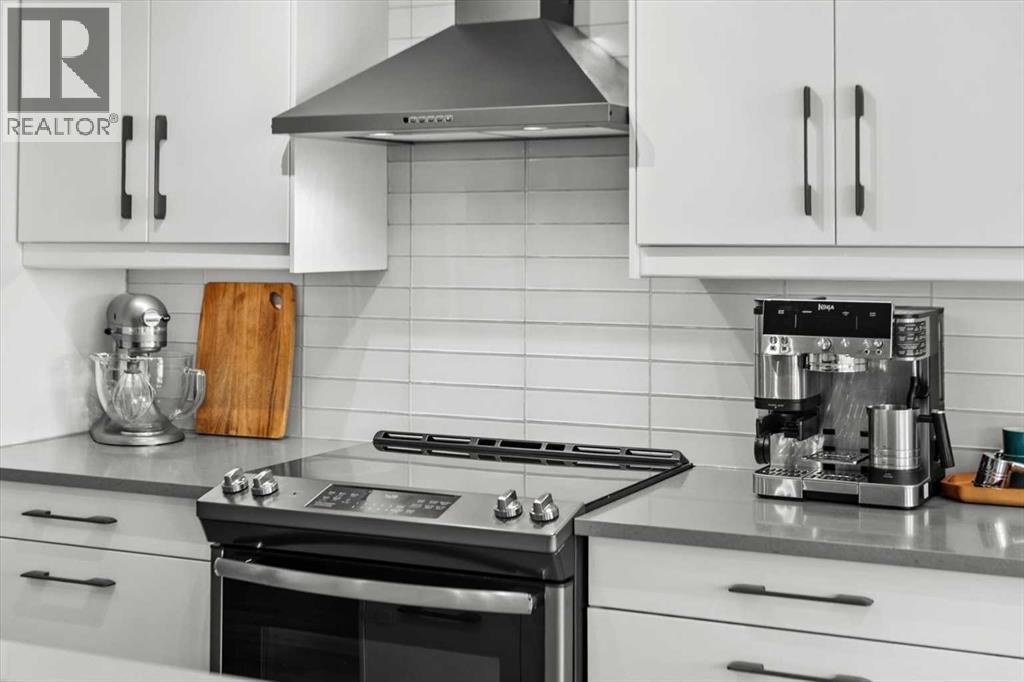 The chef in the family will appreciate the premium appliance package, complemented by a sleek stainless steel range hood, modern cooktop, and stylish white cabinetry with subway tile backsplash
