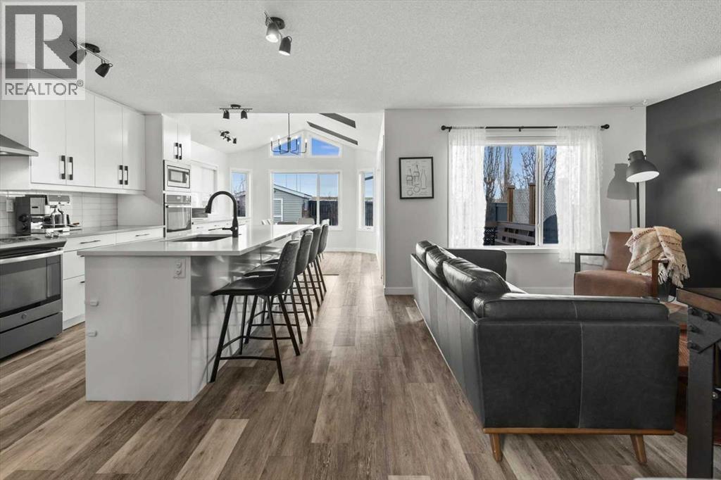 Welcome to 2,265 square feet of lovingly maintained and beautifully upgraded living space nestled in the heart of Coventry Hills, one of NE Calgary's most established and warmly welcoming communities. This exceptional home blends thoughtful renovations, carefully chosen modern finishes, and a truly private outdoor setting to deliver a lifestyle that feels both elevated and effortlessly comfortable from the moment you first arrive. Curb appeal sets the tone immediately and makes a lasting impression. Brand new shingles, fresh new siding, a striking new front door, a new back door, and stunning Gemstone lighting make this home shine with pride in every season. It is the kind of polished street presence that turns heads and sets expectations high, and the interior delivers on every single one of them. Step inside and you are welcomed by a bright, open main floor freshly painted in 2026 and filled with beautiful natural light. The heart of this home is an extraordinary kitchen renovation showcasing custom cabinetry, gleaming quartz countertops, a stunning backsplash, built-in wall oven, a built-in microwave, and a premium graphite appliance package including a brand-new fridge and a Bosch dishwasher. A massive island anchors the space perfectly, ideal for entertaining guests, enjoying casual family dinners, or hosting relaxed weekend brunches with the people who matter most. A custom built-in workstation flows seamlessly into the oversized eating area, where a dramatic vaulted ceiling soars overhead and two generous skylights pour warm natural light into the room. Upgraded lighting throughout adds warmth, sophistication, and polish to every corner of this beautiful home. Upstairs, the generous primary bedroom provides a peaceful sanctuary complete with a full ensuite and a walk-in closet featuring custom built-ins. Two additional well-sized bedrooms, each with custom closet organizers & new blackout blinds, offer a restful and cozy retreat for family members or overnigh t guests. Every detail has been considered with both comfort & lasting practicality in mind. The developed basement expands your living options with ease & flexibility, offering a spacious media area perfect for movie nights, an additional bedroom, and a full bathroom, making it ideal for teenagers, visiting guests, or a quiet home office escape. Step outside and discover your own private backyard sanctuary with no direct neighbours behind you. The large deck features a thoughtfully added privacy wall. This outdoor space is one you will truly treasure season after season and is ideal for hosting summer barbecue’s, watching the kids play, or simply unwinding in the evening quiet with a cold drink in hand. Coventry Hills offers scenic pathways, beautiful parks, top-rated schools, and every everyday amenity within easy reach. Whether you are a growing family, a young professional, or simply someone who appreciates a meticulously maintained and a move-in ready home, this is the one you have been waiting for! (id:63190)