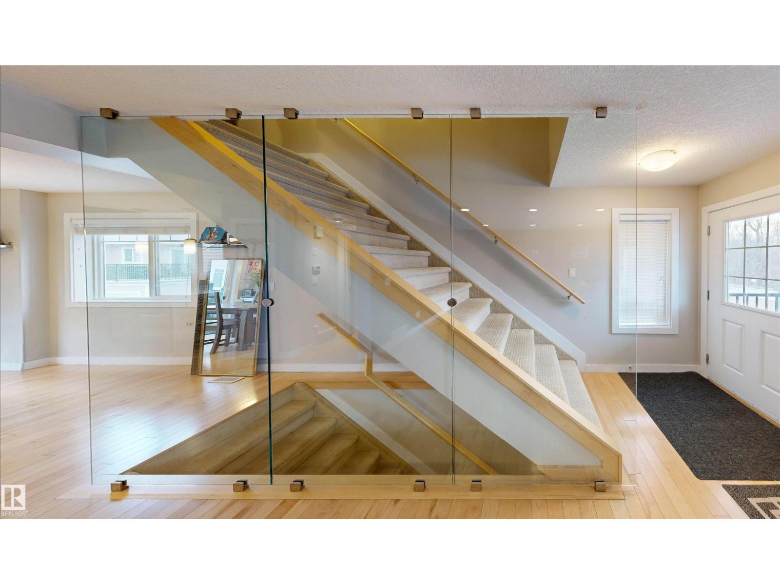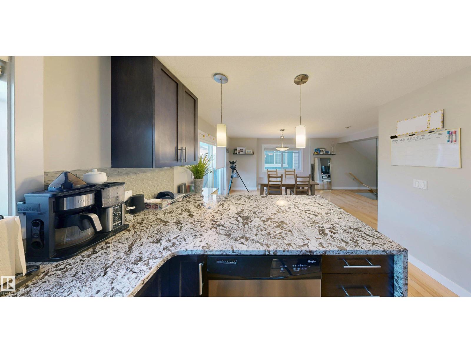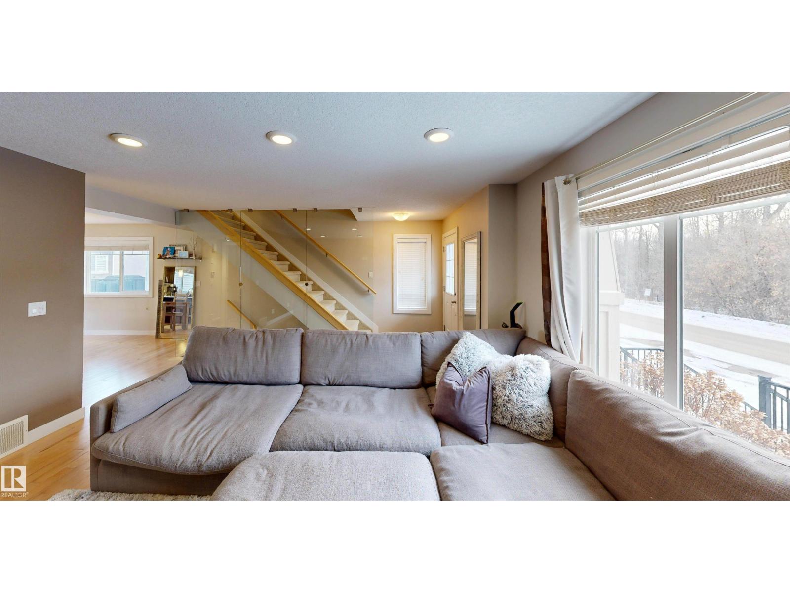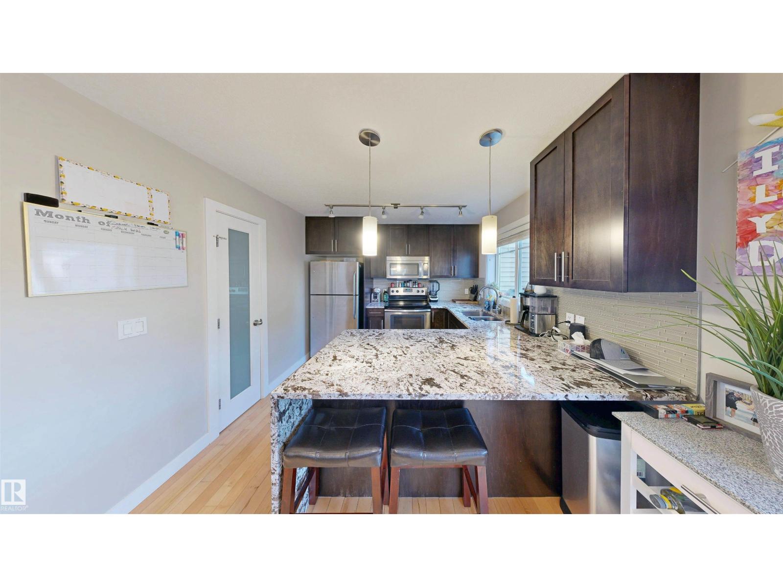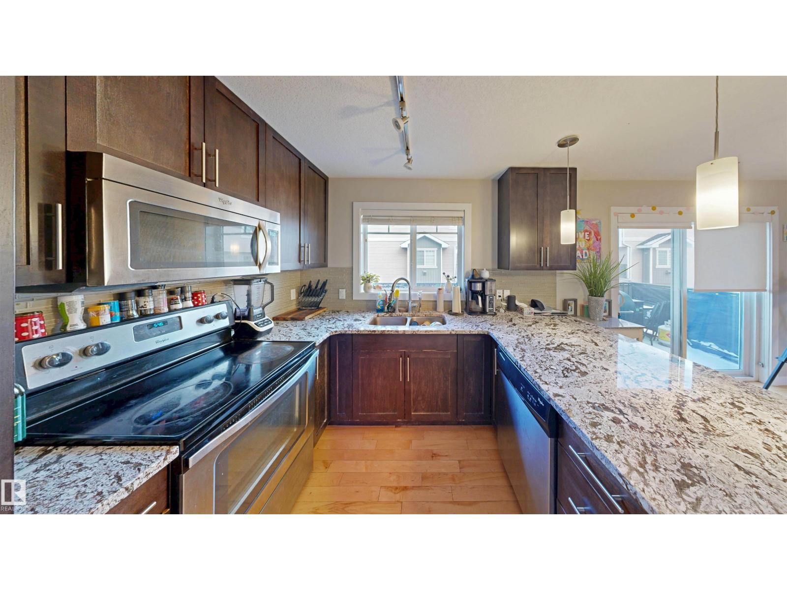 Excellent Condition 2-Storey Townhouse Condo End Unit in Secord Corners with West-facing Lake Ravine Views! Unit features: * 3 Bedrooms & 2.5 Baths * Hardwood Floors * Feature Glass Stairway Divider Wall * Nicely Carpeted Staircases * Granite Countertops * Upgraded Cabinets * Stainless Steel Appliances * Balcony Access Off Kitchen / Dining Room (With Gas BBQ Outlet) * Sizeable Primary Bedroom with Full En Suite Bathroom and Walk-in Closet * Air Conditioning * Smart Wiring * Triple-Paned Windows * Attached and Oversized Double Attached Garage with Basement Access. Secord Corners Condominium is a quality 2013-built complex by Footprint Developments & professionally managed by CORE Management. Over $480K reserve fund (Feb. 2026) with current condo documents package available for review. 45-day possession. Located in West Edmonton (Community of Secord) with easy access to Winterburn Road, Stony Plain Road, Retail, Professional Services, Ranch Golf & Country Club, Whitemud Drive, & Anthony Henday Drive. (id:63190)